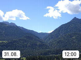 Mit diesem Code können Sie diesen Webcambaustein ganz einfach in Ihre Website einbauen. Klicken Sie dazu auf den Code, kopieren Sie diesen und fügen ihn anschließend ih Ihre Website ein. Der Baustein bietet die gleichen Funktionen, die auch auf panoramablick.com zu sehen sind: Livebild, Tagesverlauf und Archivbilder.