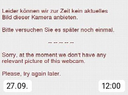 Mit diesem Code können Sie diesen Webcambaustein ganz einfach in Ihre Website einbauen. Klicken Sie dazu auf den Code, kopieren Sie diesen und fügen ihn anschließend ih Ihre Website ein. Der Baustein bietet die gleichen Funktionen, die auch auf panoramablick.com zu sehen sind: Livebild, Tagesverlauf und Archivbilder.