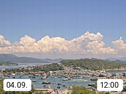 Hong Kong 2.755 km², since 1997 Hong Kong Special Administrative Region of the People Republic of China, a special administrative region of the Peoples Republic of China, located on Chinas south coast, bordering Guangdong in the North and the South China Sea in the east. Hong Kong is located on the confluence of the Pearl river to the South China Sea and reaches over a peninsula and about 260 appertaining islands. Concerning the populousness Hongkong is with about 7 millions of inhabitants the thirdlargest metropolitan area of the Peoples Republic of China. View from the southern island Cheung Chau in direction north to Hong Kong mainland. Presented by https://www.hko.gov.hk/.