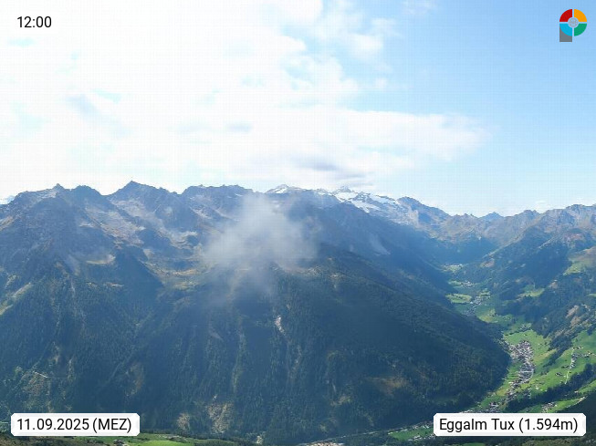 A 6293 Tux (1,281 m) lies in the upper Tux Valley and is a municipality in the Zillertal Valley in the Schwaz district. The Eggalm ski and hiking area ranges from 1,300 to 2,500 m and offers panoramic views from the mountain station near the Wanglspitze (2,425 m), looking northeast over the Horberg into the Zillertal Valley. Presented by https://www.zillertal.info/.