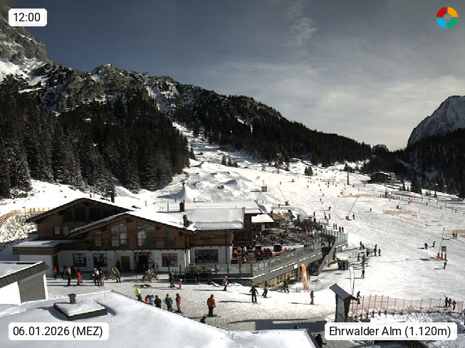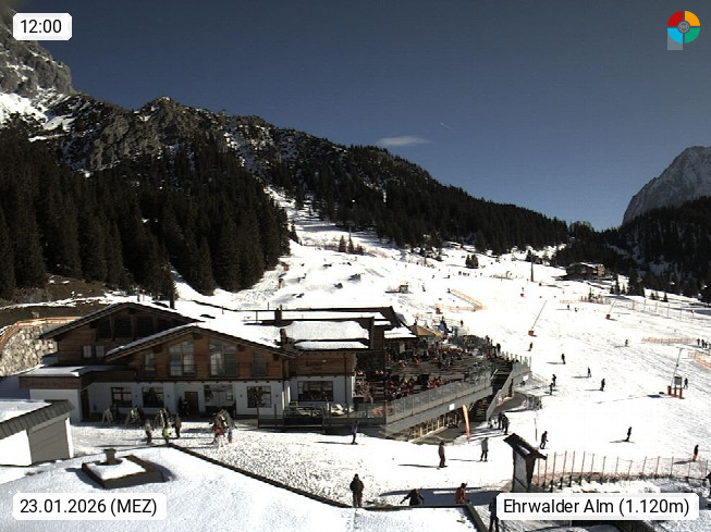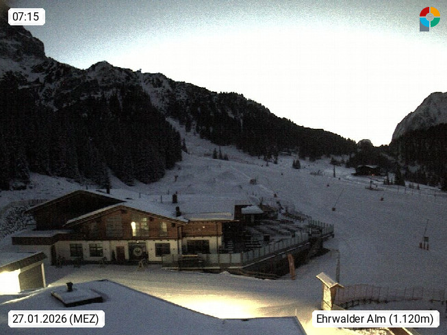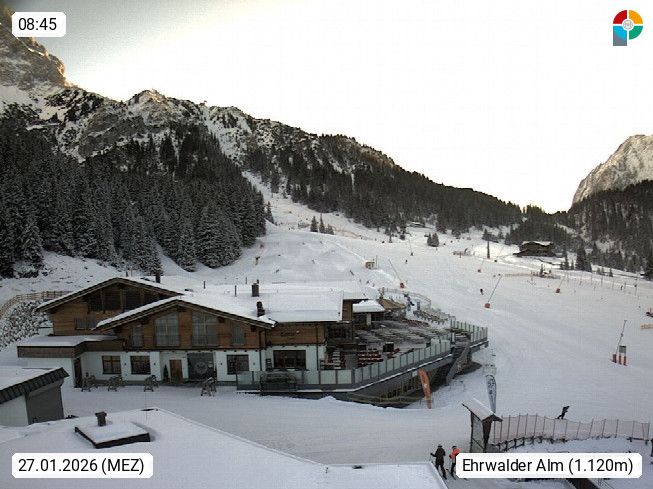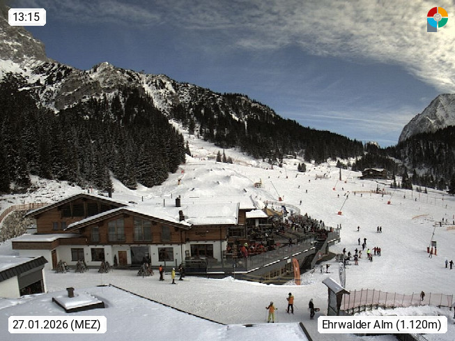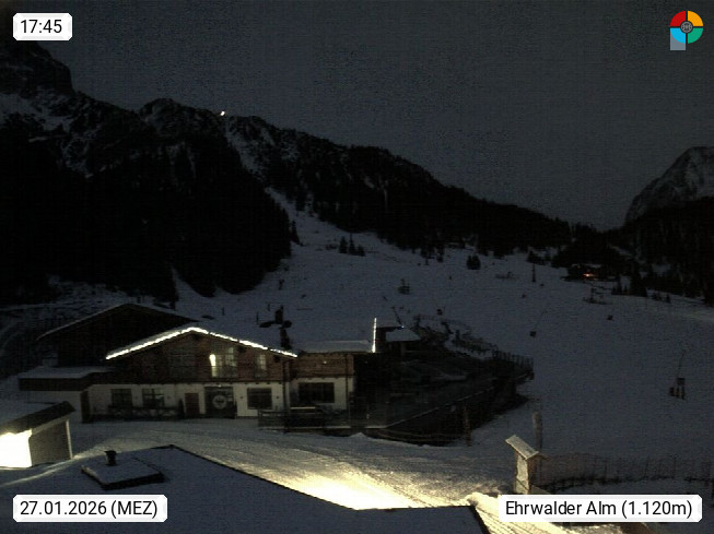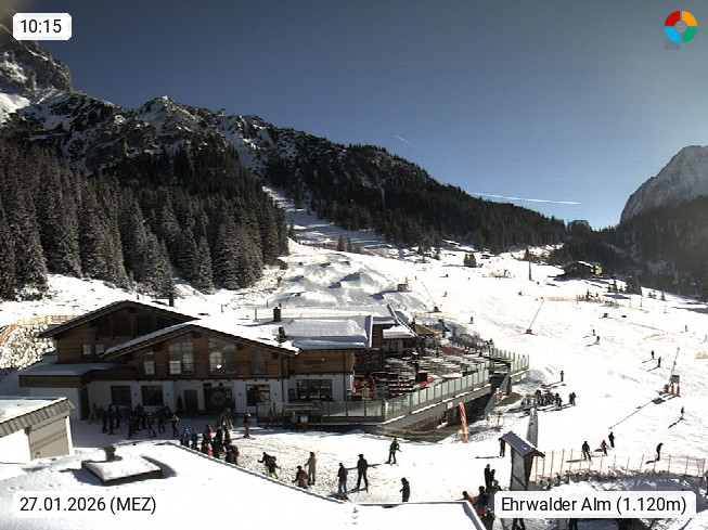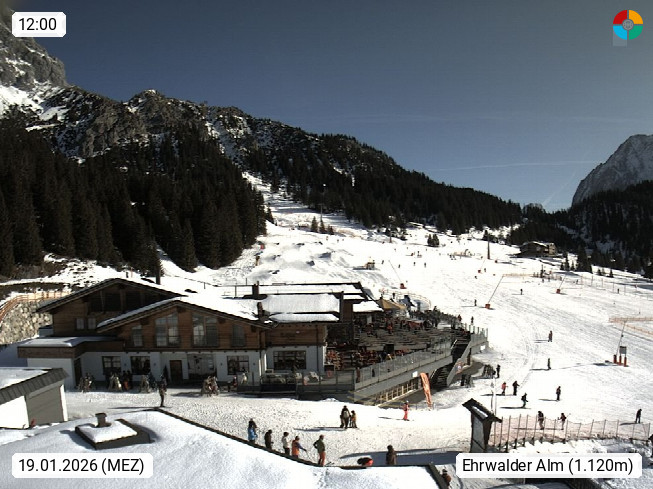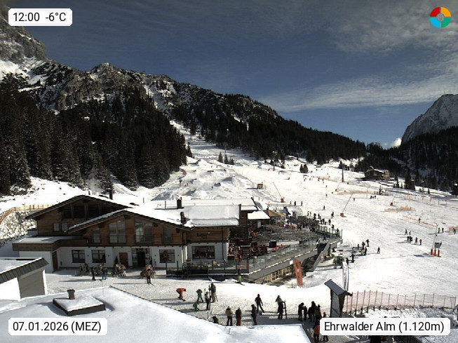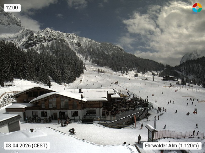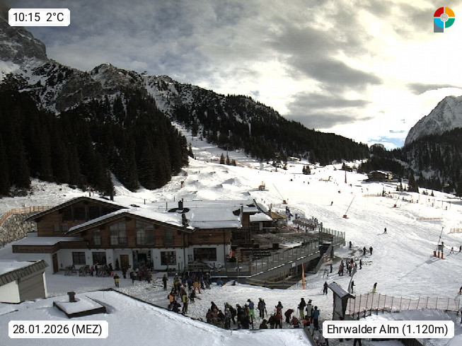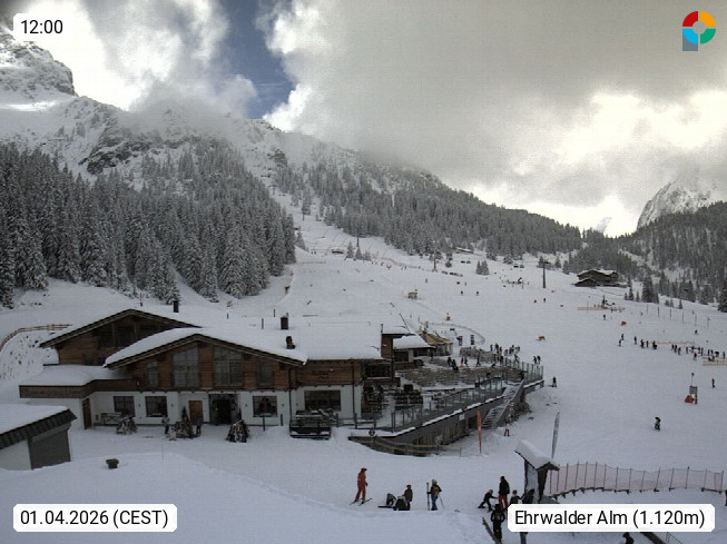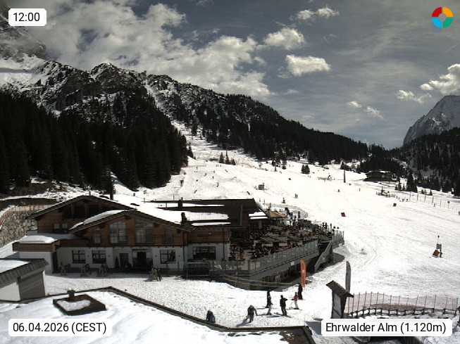A 6632 Ehrwald 994m, near Wettersteingebirge mountains in the district Reutte. View in north direction over the Ehrwalder Alp 1.500m, to the Wetterstein massif, which highest peak 2.962m is called Zugsspitze. In winter the Ehrwalder Alp is a skiing region with 7 skilifts and 26 km ski pistes and a popular hiking and mountainbike paradise in summer. Presented by https://www.almbahn.at/.