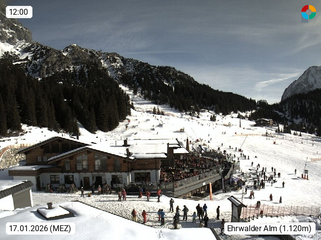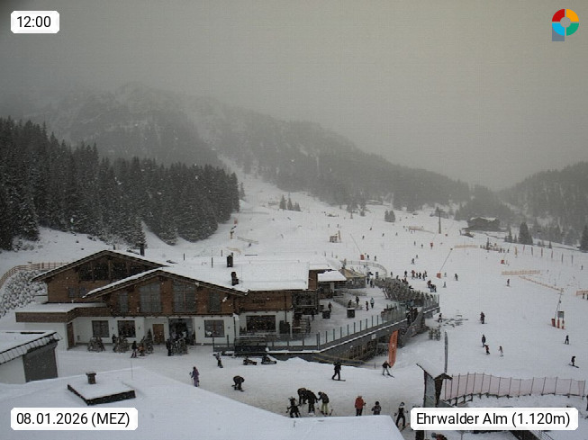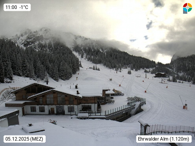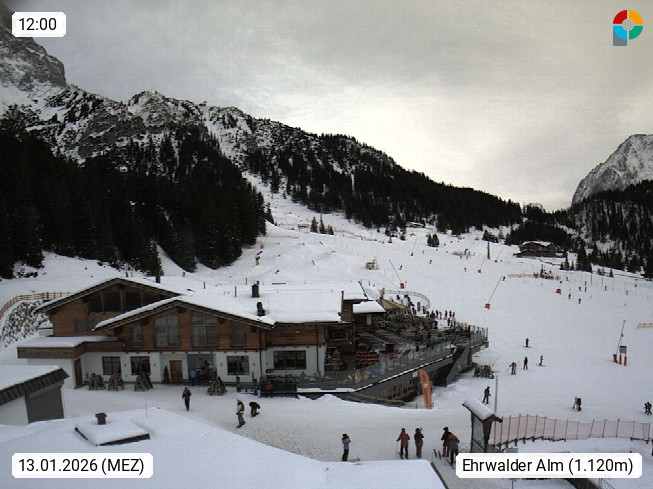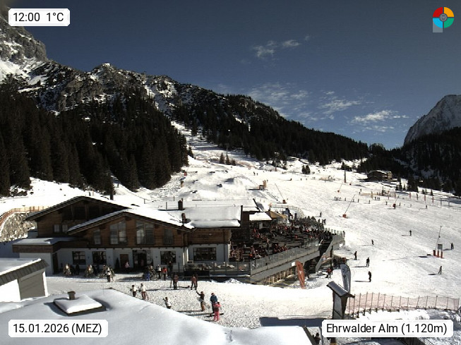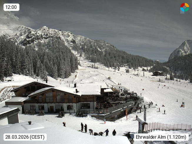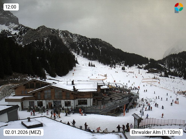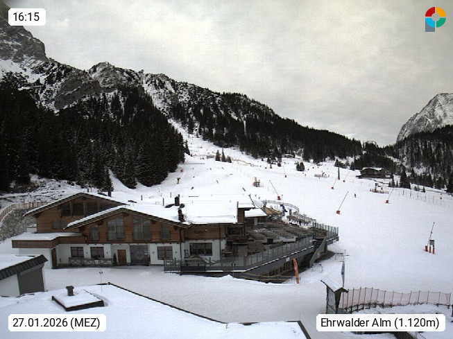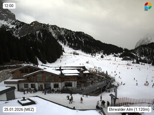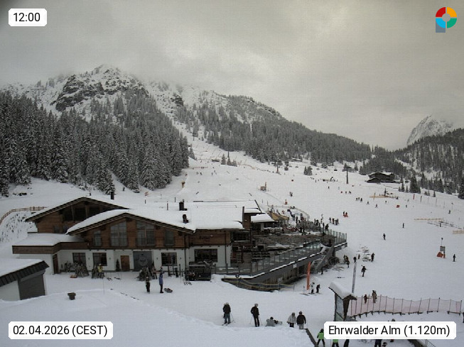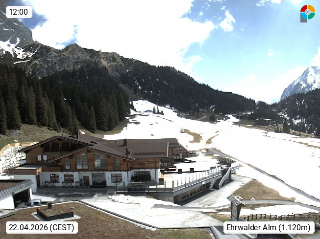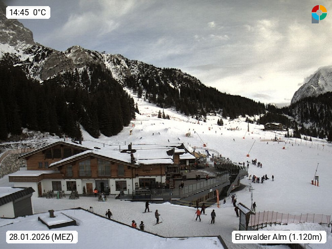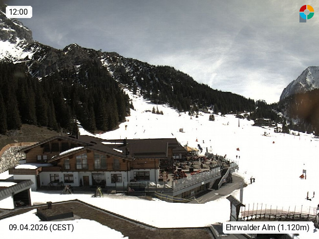 A 6632 Ehrwald 994m, near Wettersteingebirge mountains in the district Reutte. View in north direction over the Ehrwalder Alp 1.500m, to the Wetterstein massif, which highest peak 2.962m is called Zugsspitze. In winter the Ehrwalder Alp is a skiing region with 7 skilifts and 26 km ski pistes and a popular hiking and mountainbike paradise in summer. Presented by https://www.almbahn.at/.