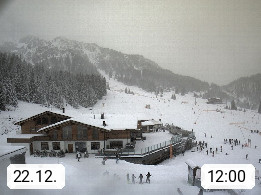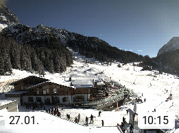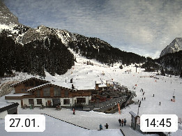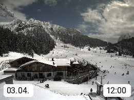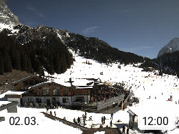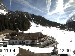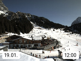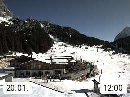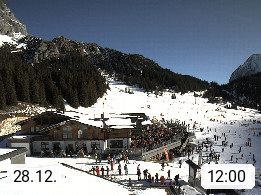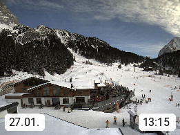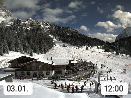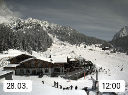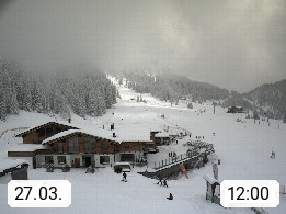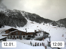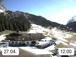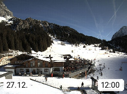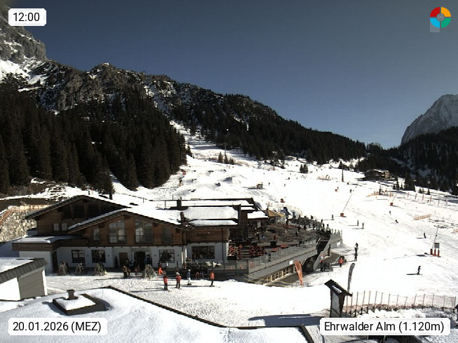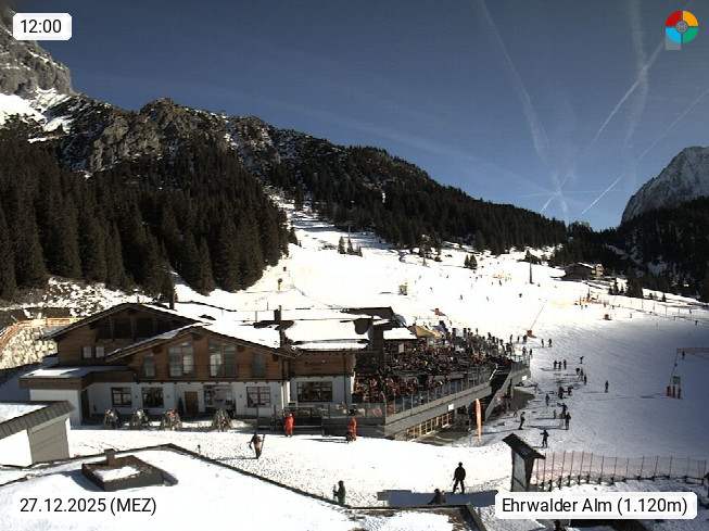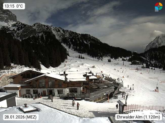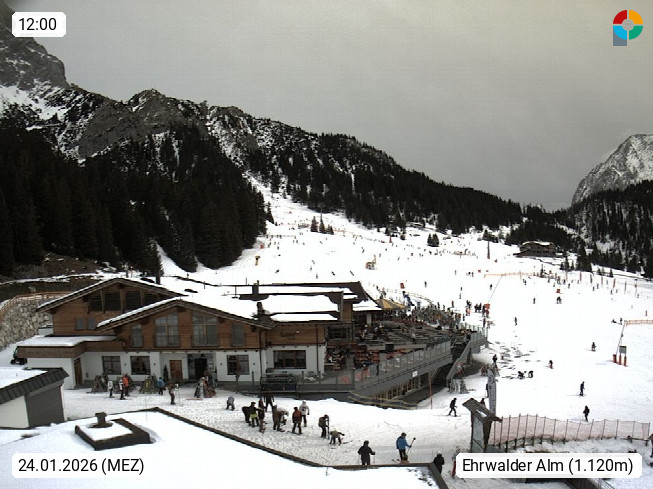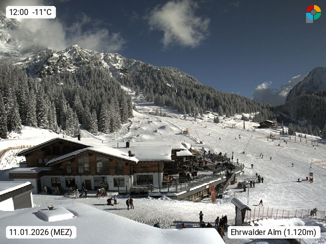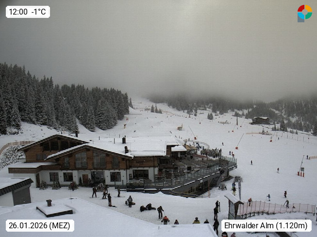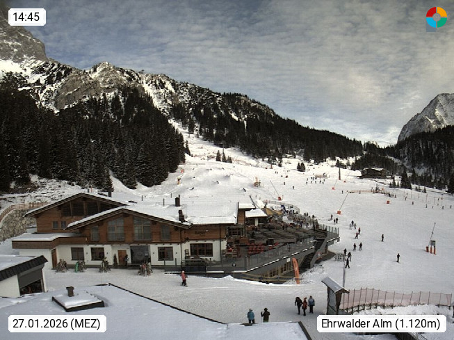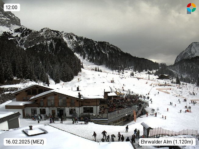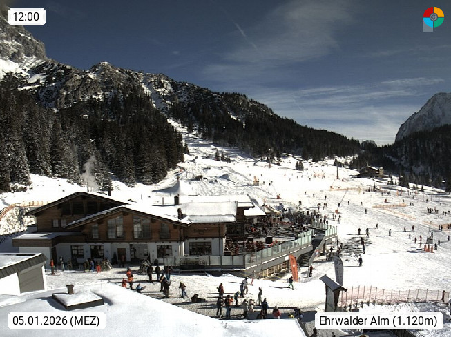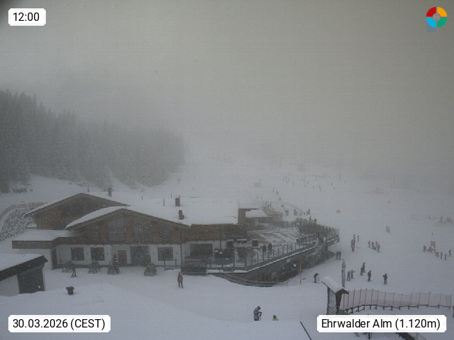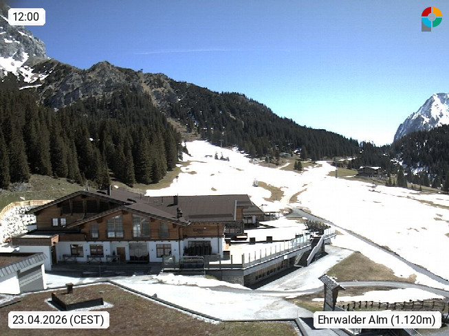 A 6632 Ehrwald 994m, near Wettersteingebirge mountains in the district Reutte. View in north direction over the Ehrwalder Alp 1.500m, to the Wetterstein massif, which highest peak 2.962m is called Zugsspitze. In winter the Ehrwalder Alp is a skiing region with 7 skilifts and 26 km ski pistes and a popular hiking and mountainbike paradise in summer. Presented by https://www.almbahn.at/.