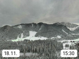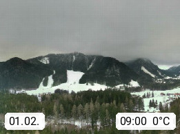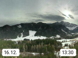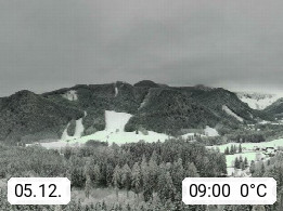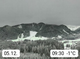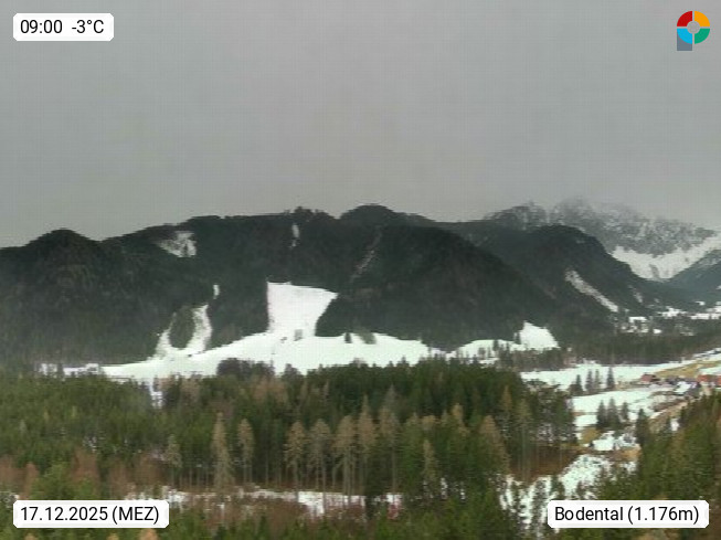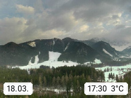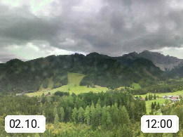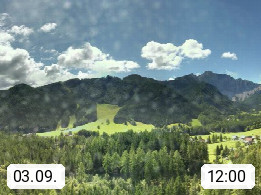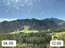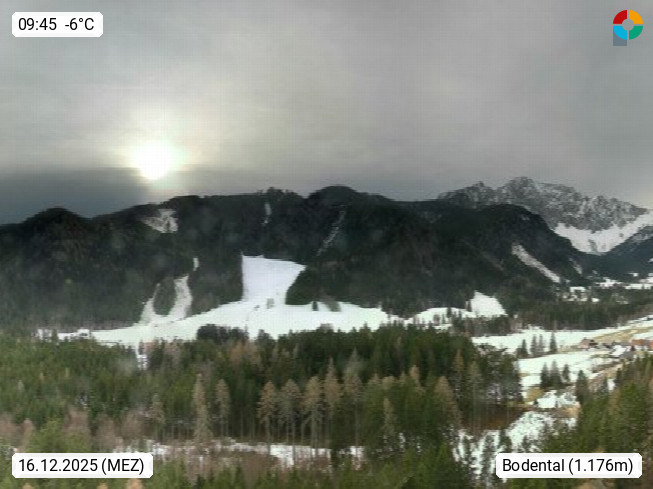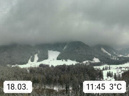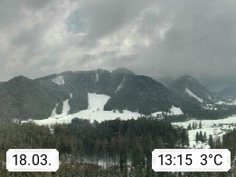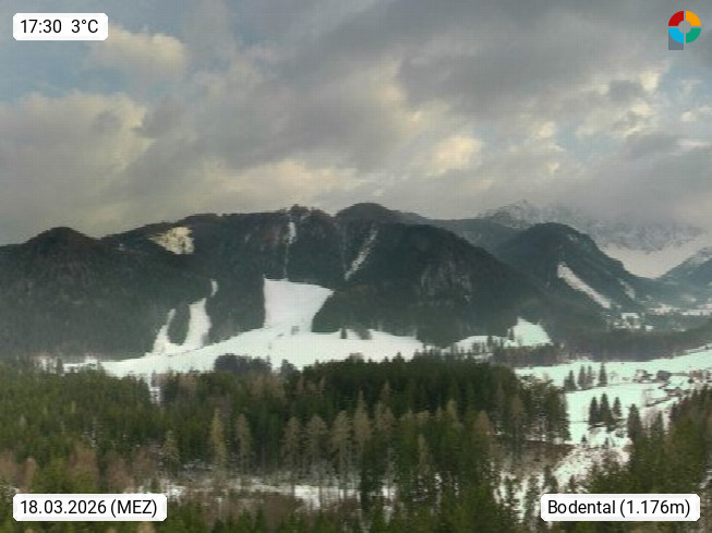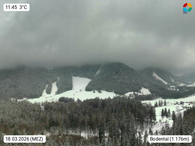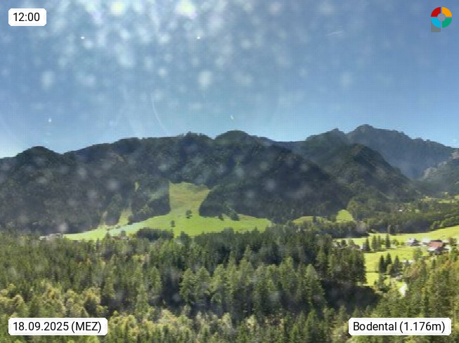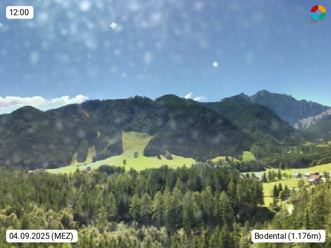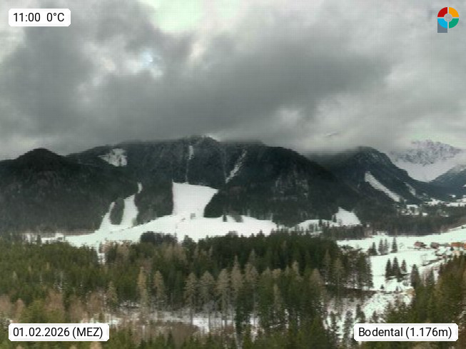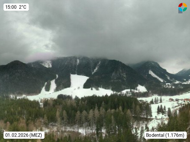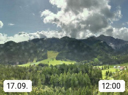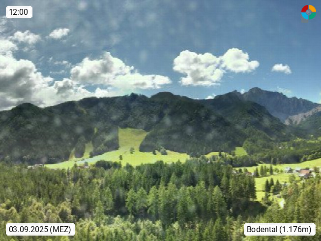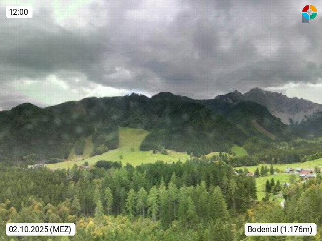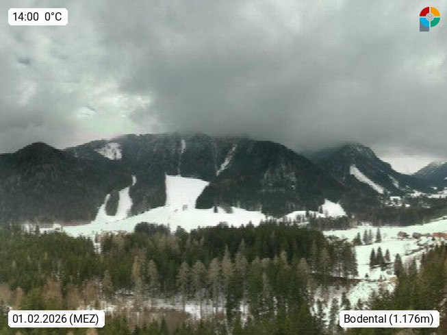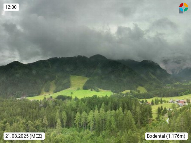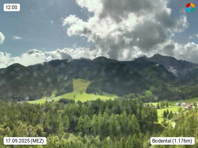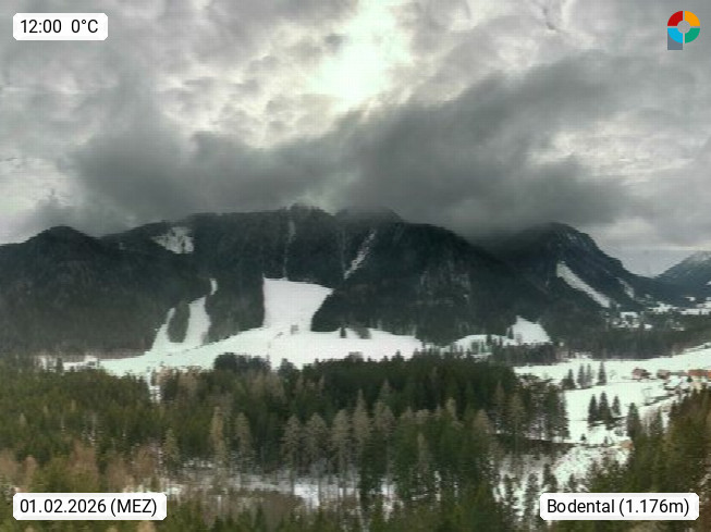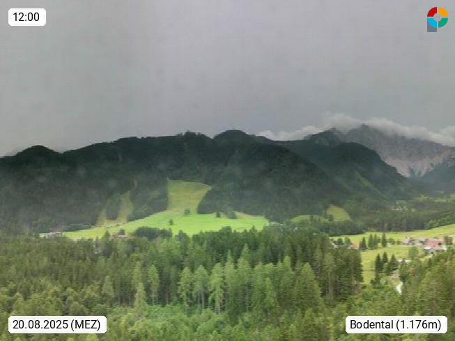 A 9170 Ferlach Austria's southernmost town. Panoramic view over the Bodental, Slovak Boden, a remote high valley in the Karawanks in southern Carinthia. In the background, the peak of Vertatscha 2,180 m, a border mountain between Austria and Slovenia. Presented by https://www.familienhof.at/.
