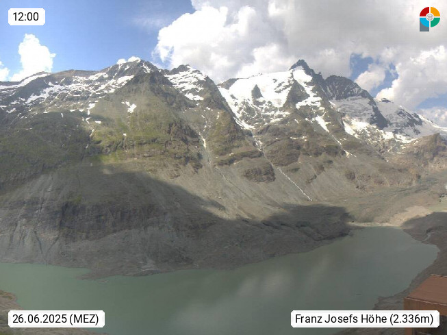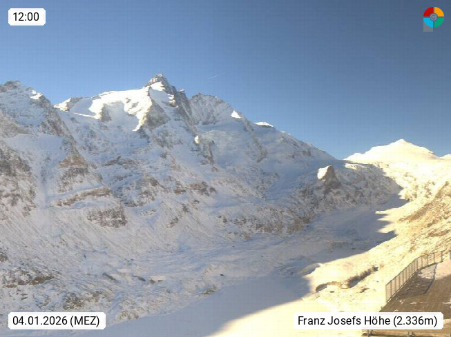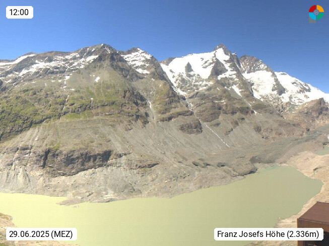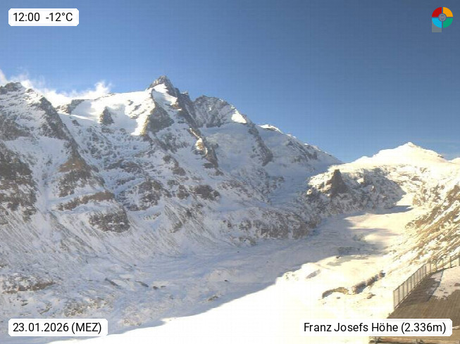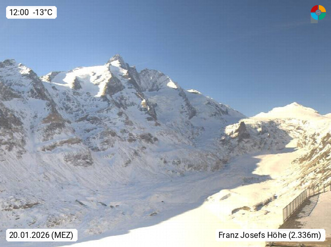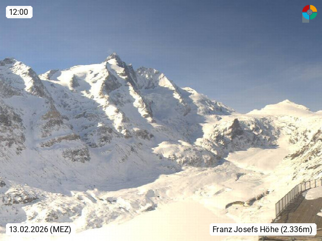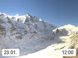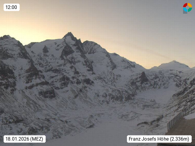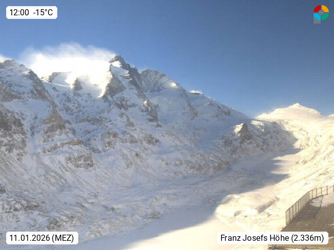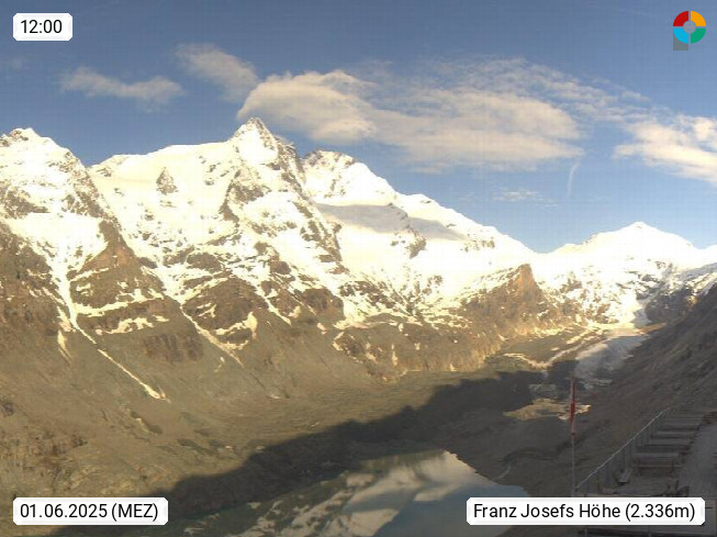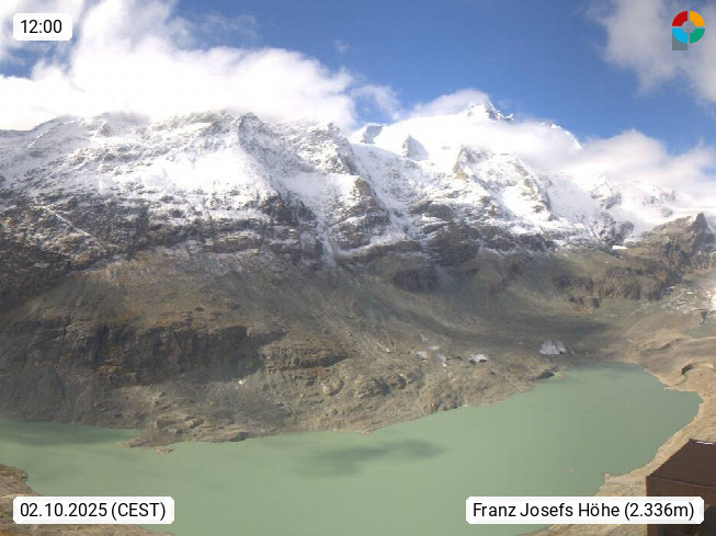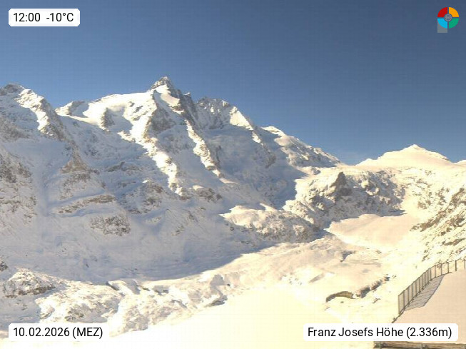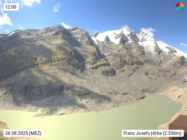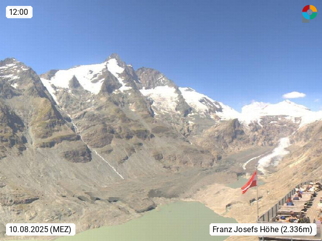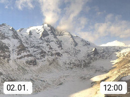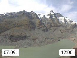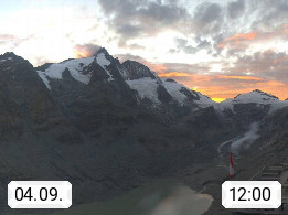 A 9844 Heiligenblut 1.288m, near the mountain Grossglockner at the Moelltal valley in the Nationalpark Hohe Tauern of the district Spittal at Drava, Cam position Glocknerhaus in 2.132m, panoramic view in southwest direction from Franz Joseph Hoehe 2.362m to Mount Grossglockner 3.798m, which is Austrias highest mountain. Presented by https://www.grossglockner.at/de.