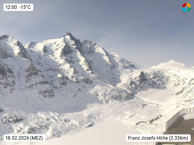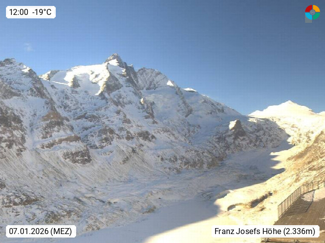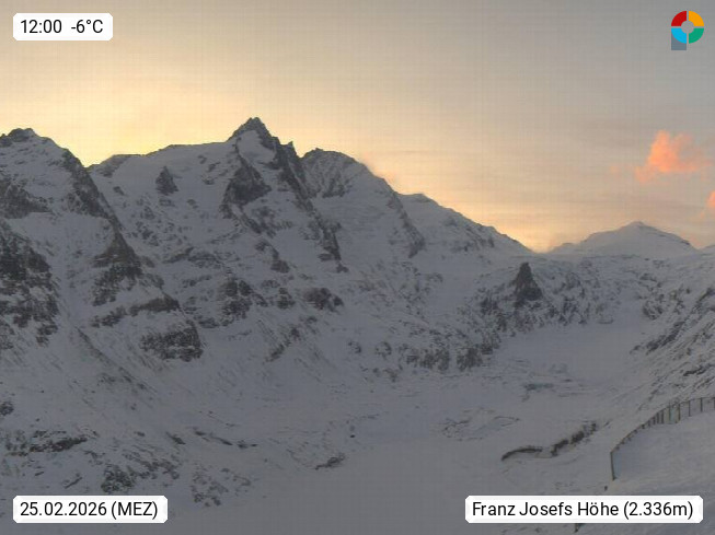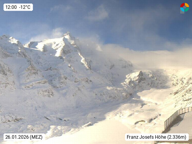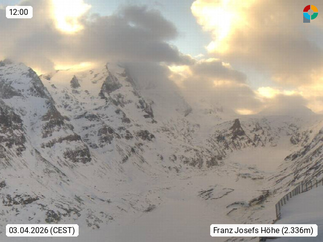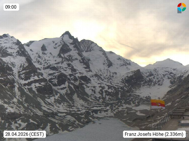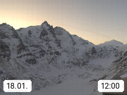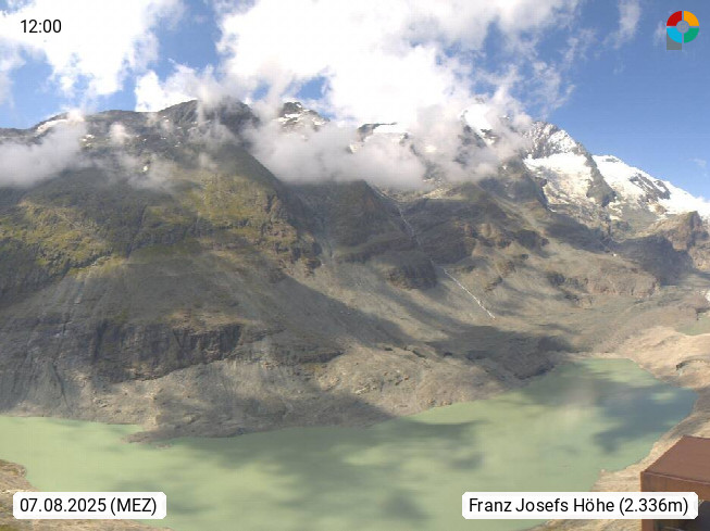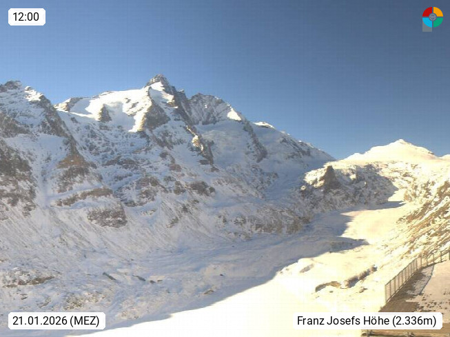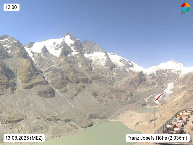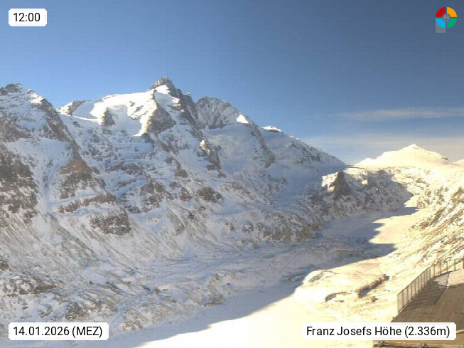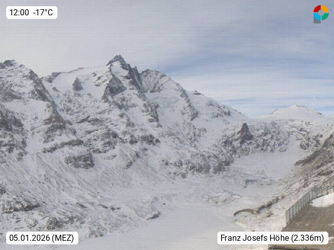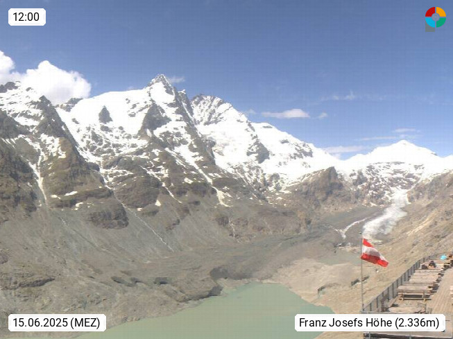 A 9844 Heiligenblut 1.288m, near the mountain Grossglockner at the Moelltal valley in the Nationalpark Hohe Tauern of the district Spittal at Drava, Cam position Glocknerhaus in 2.132m, panoramic view in southwest direction from Franz Joseph Hoehe 2.362m to Mount Grossglockner 3.798m, which is Austrias highest mountain. Presented by https://www.grossglockner.at/de.