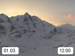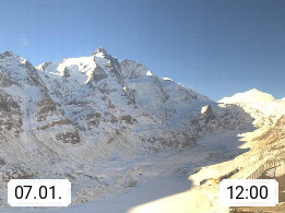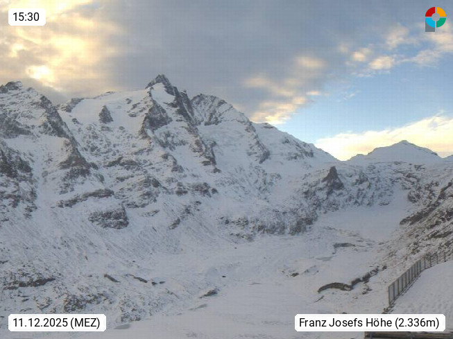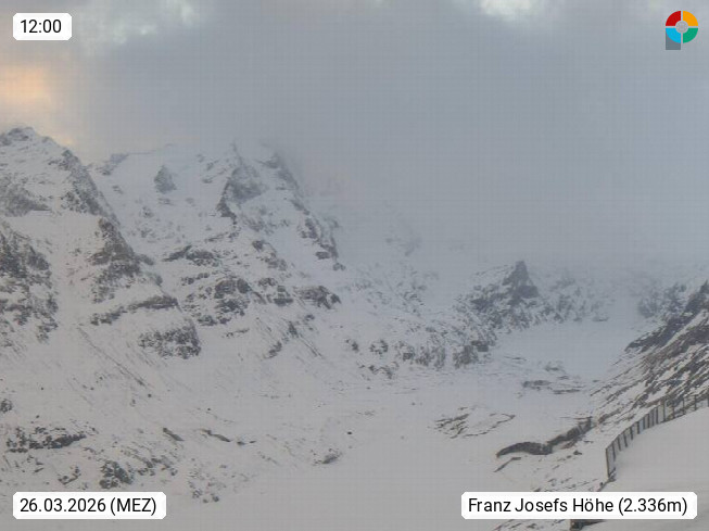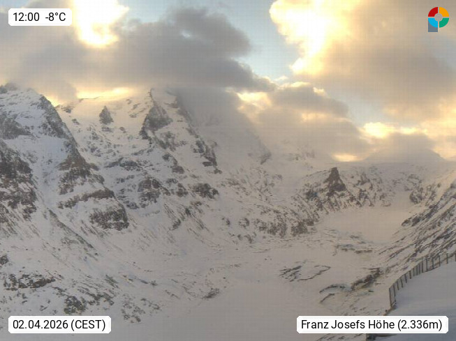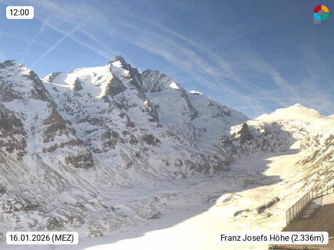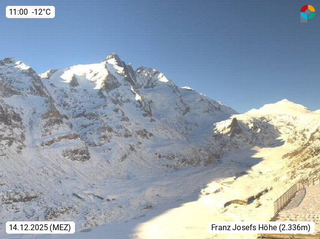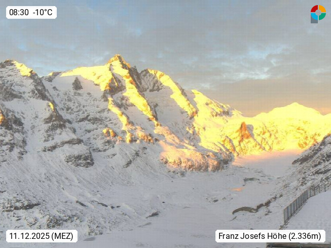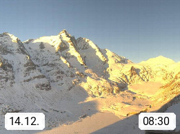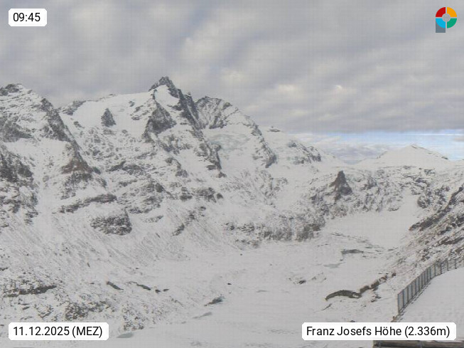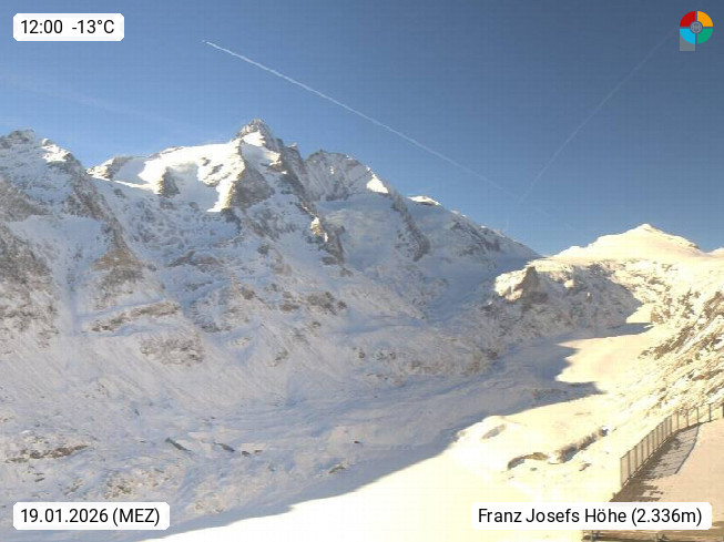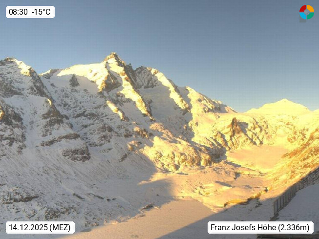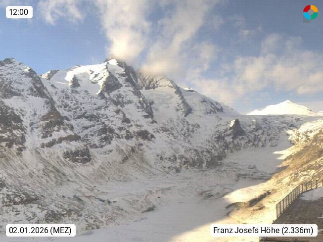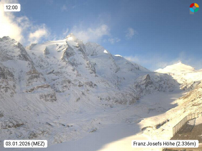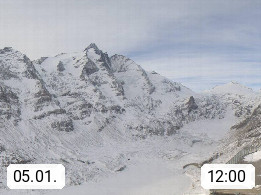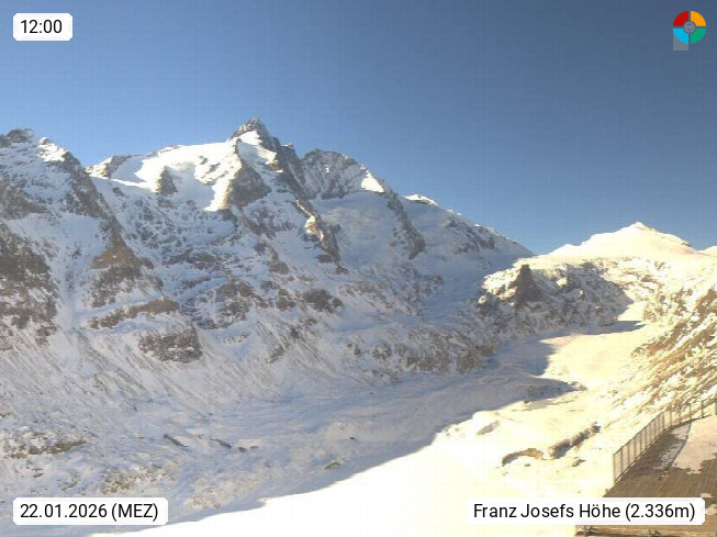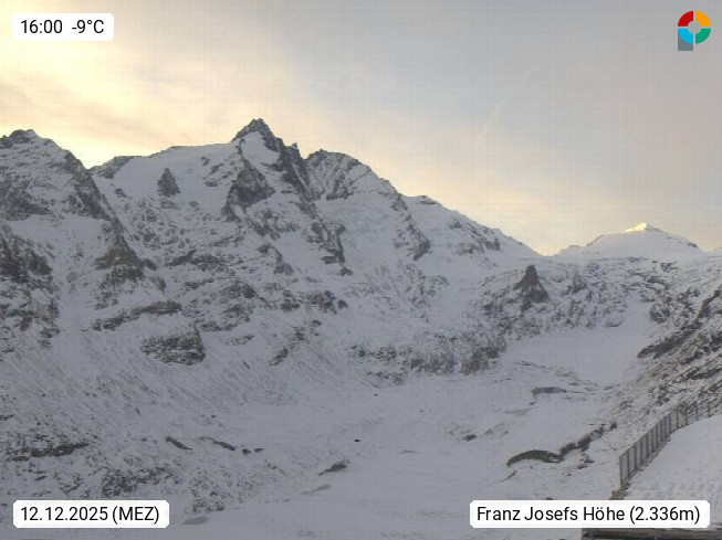 A 9844 Heiligenblut 1.288m, near the mountain Grossglockner at the Moelltal valley in the Nationalpark Hohe Tauern of the district Spittal at Drava, Cam position Glocknerhaus in 2.132m, panoramic view in southwest direction from Franz Joseph Hoehe 2.362m to Mount Grossglockner 3.798m, which is Austrias highest mountain. Presented by https://www.grossglockner.at/de.