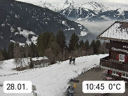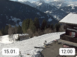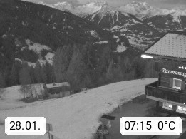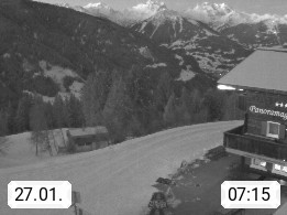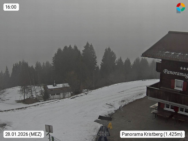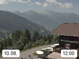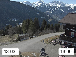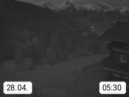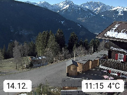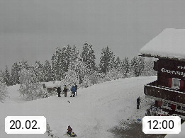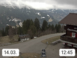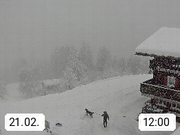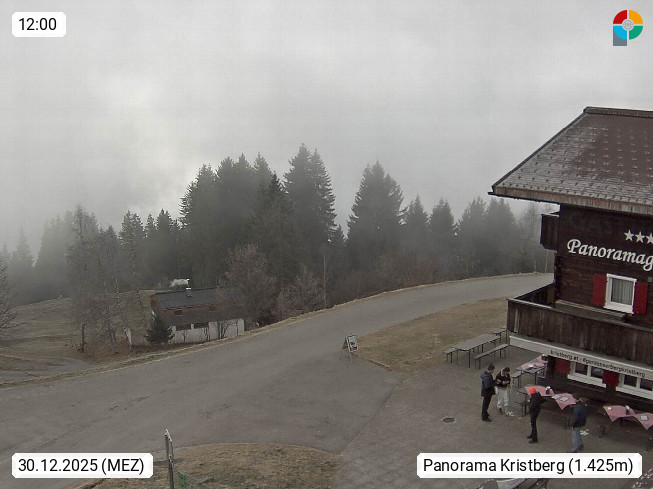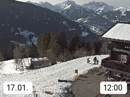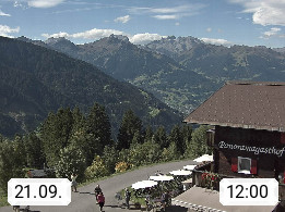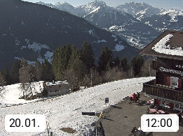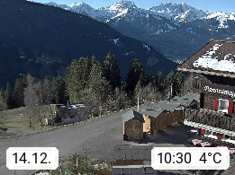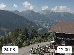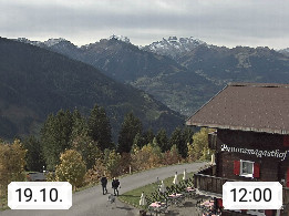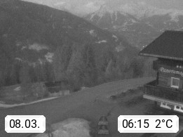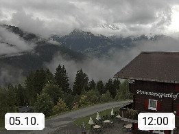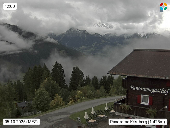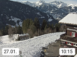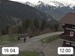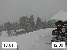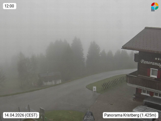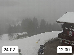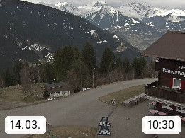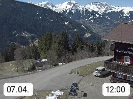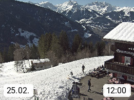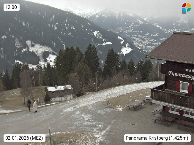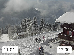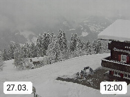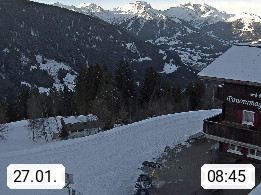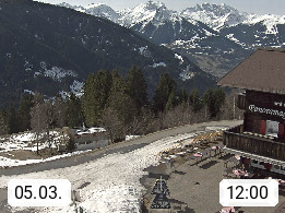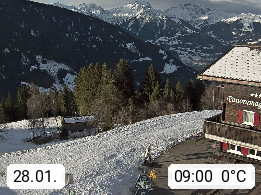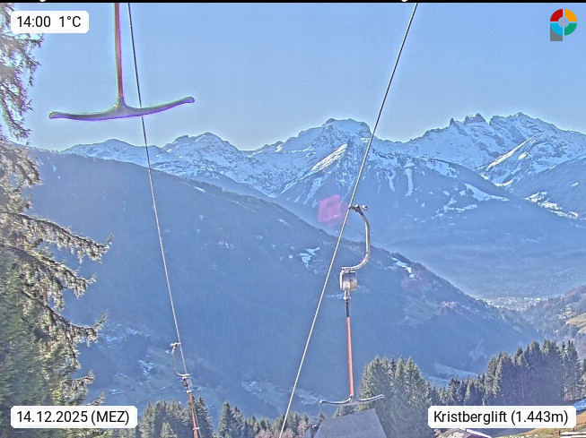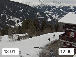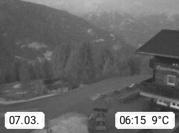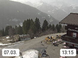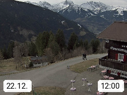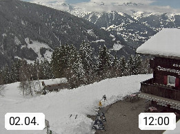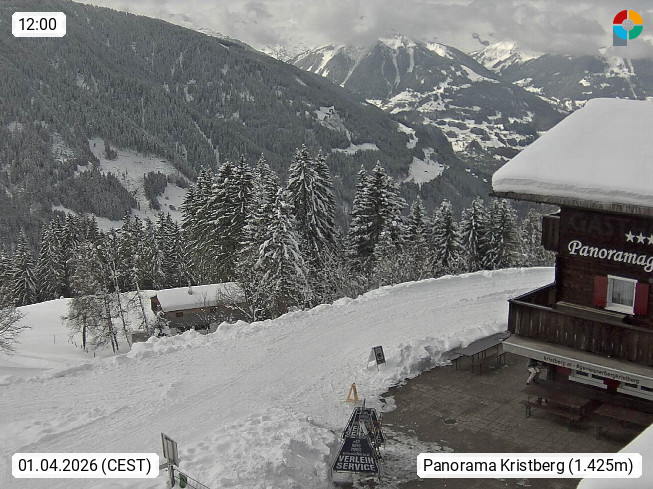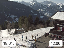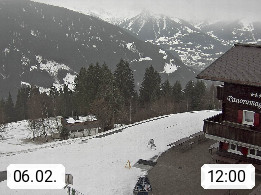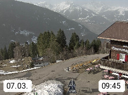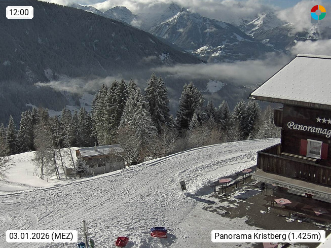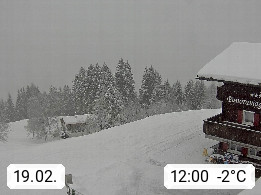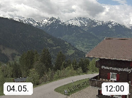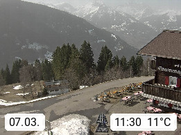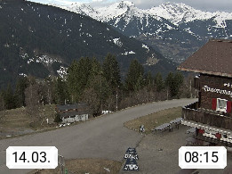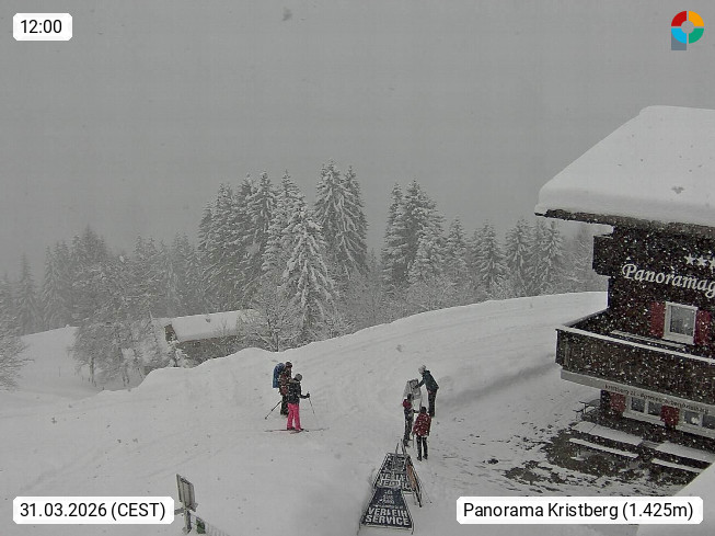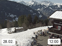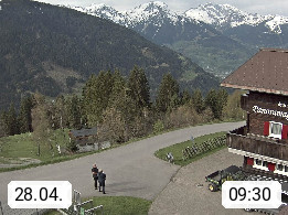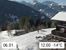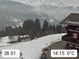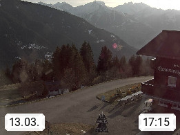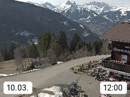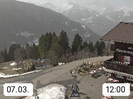 A 6780 Silbertal Kristberg 1.425m, located in a side valley of Montafon in the Verwall Alps in district Bludenz. View to the Panorama restaurant Kristberg, in the background the Rätikon mountaingroup, the villages Schruns Tschagguns and Golm. Deine Erholungsinfo gibt es auf www.kristberg.at