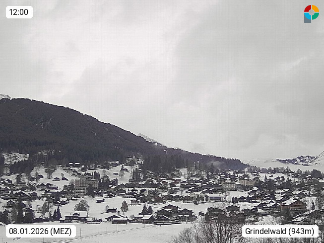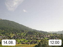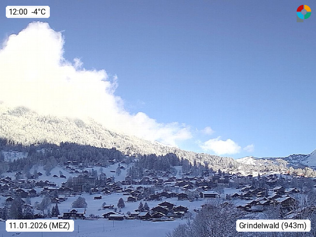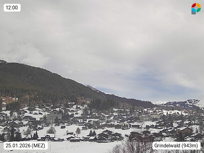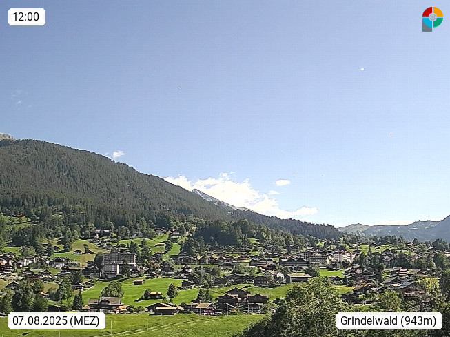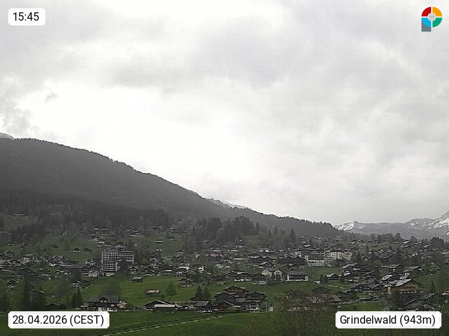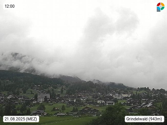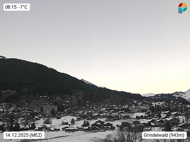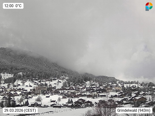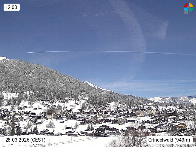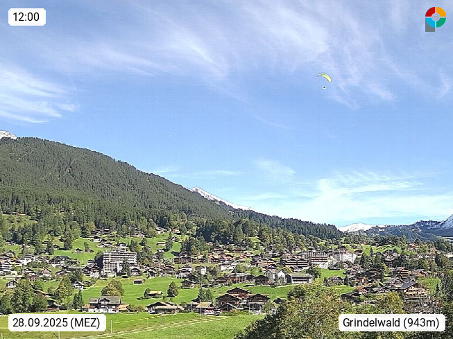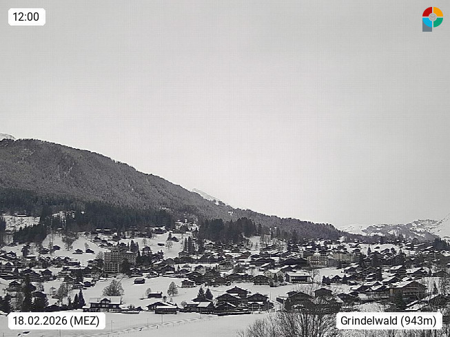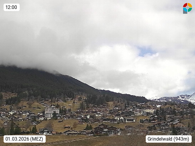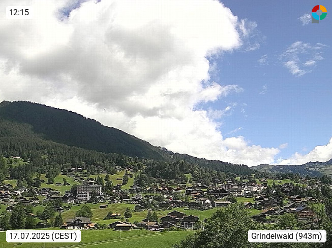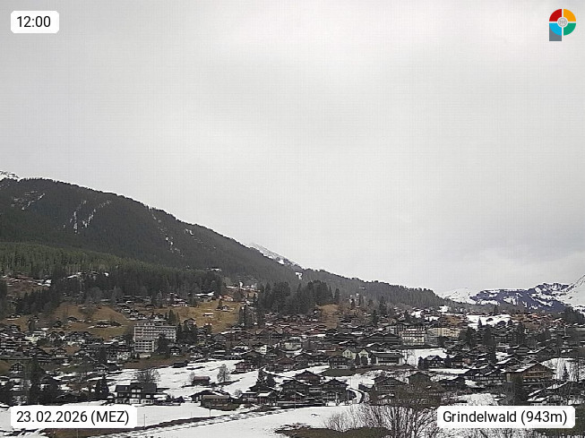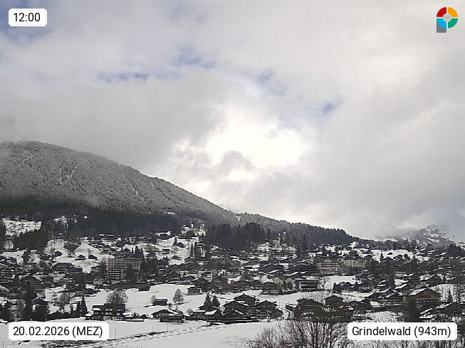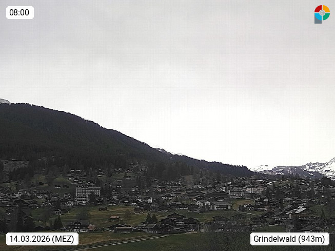 CH 3818 Grindelwald 1.034m, is a village in the district Interlaken in the canton Bern in region Bernese Oberland. The holiday resort presents with the mountains Wetterhorn 3.692m, Schreckhorn 4.078m, Eiger 3.970m, Moench 4.107m and Jungfrau 4.158m an impressing mountain landscape in the Alps of Bern. Panoramic view from the village centre in south direction to the mountain Wetterhorn 3.692m. Presented by https://www.grindelwald.net/.