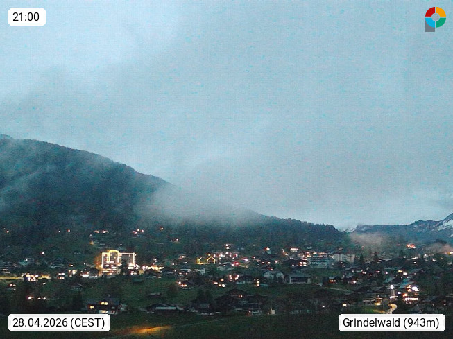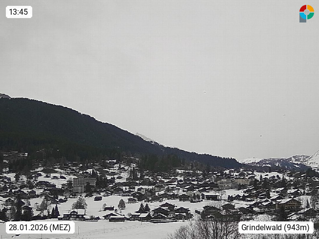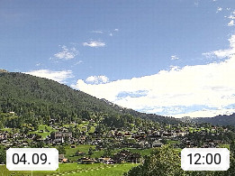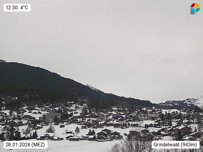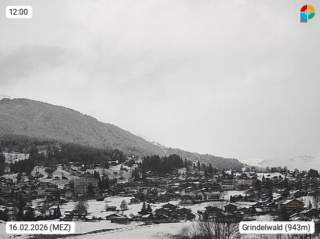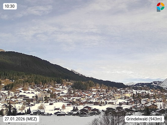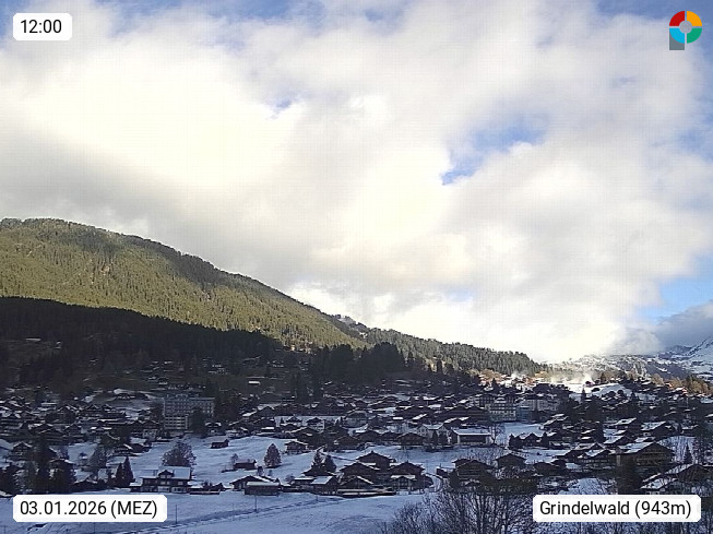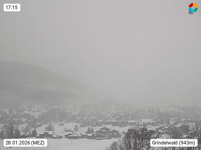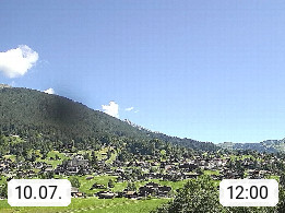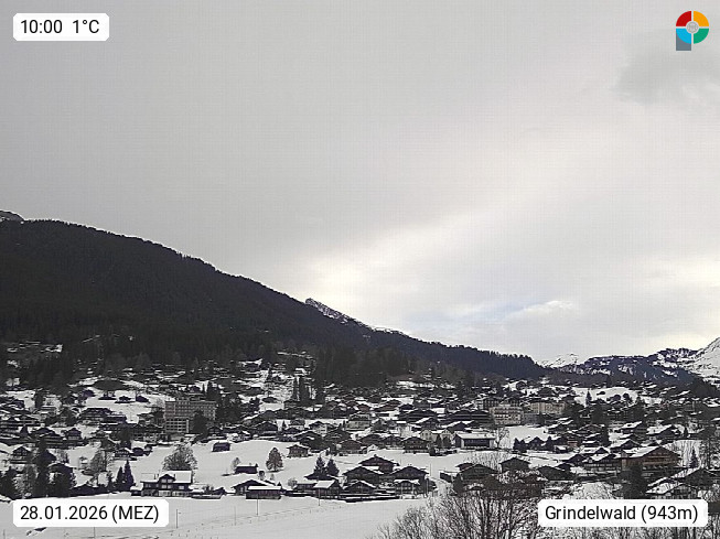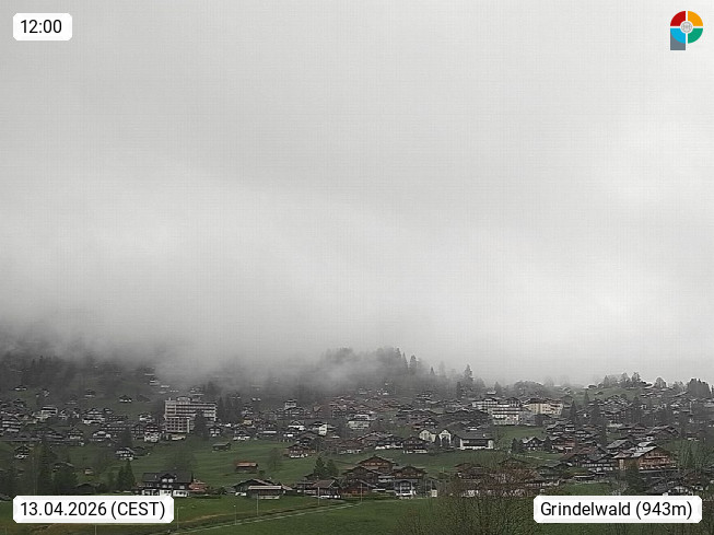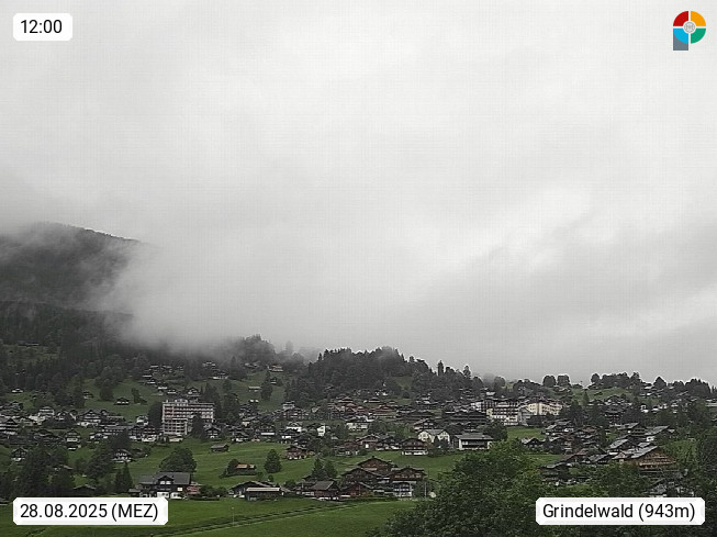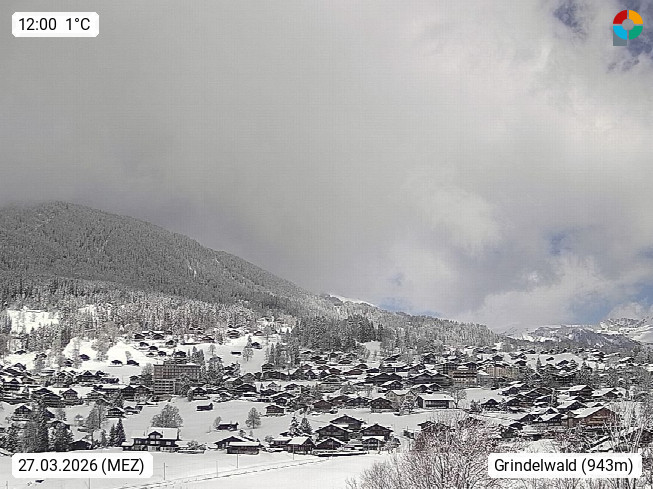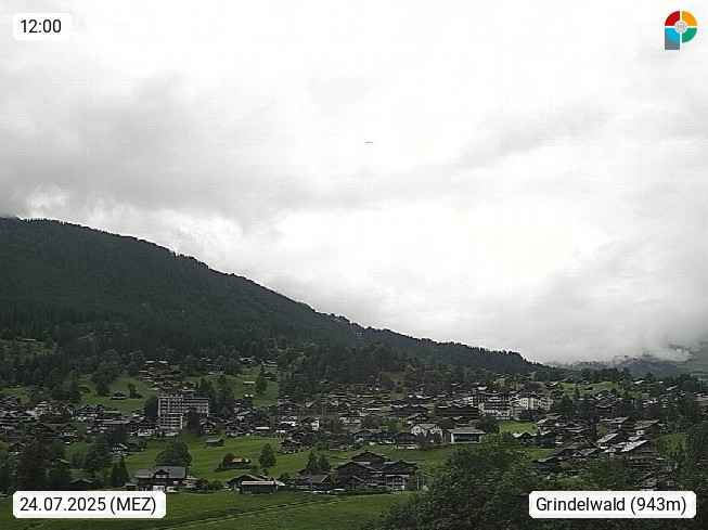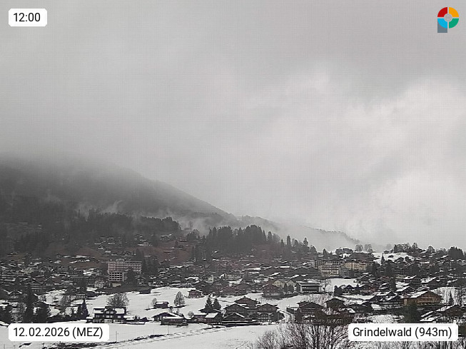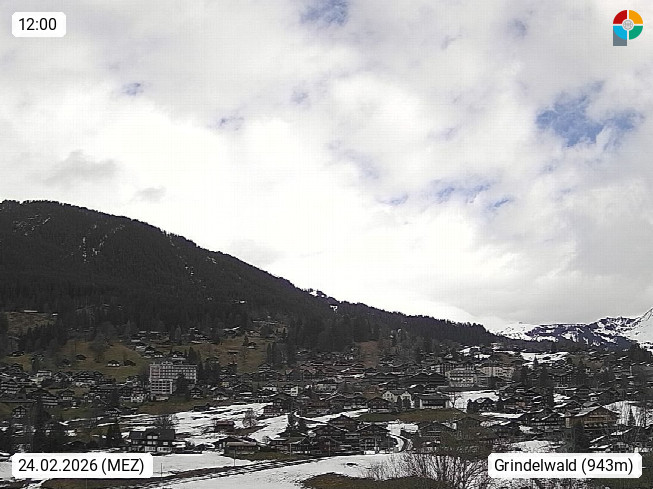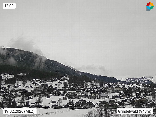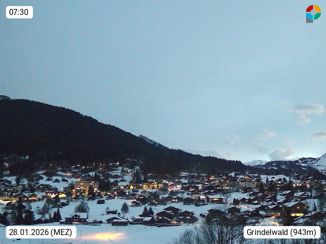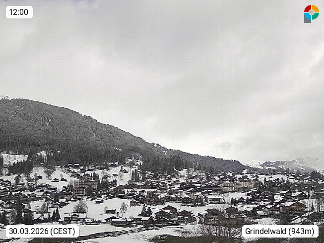 CH 3818 Grindelwald 1.034m, is a village in the district Interlaken in the canton Bern in region Bernese Oberland. The holiday resort presents with the mountains Wetterhorn 3.692m, Schreckhorn 4.078m, Eiger 3.970m, Moench 4.107m and Jungfrau 4.158m an impressing mountain landscape in the Alps of Bern. Panoramic view from the village centre in south direction to the mountain Wetterhorn 3.692m. Presented by https://www.grindelwald.net/.