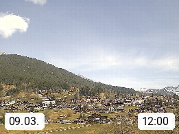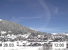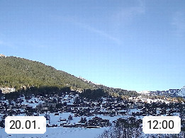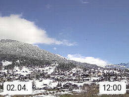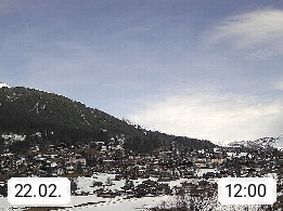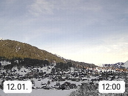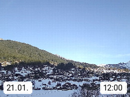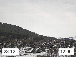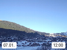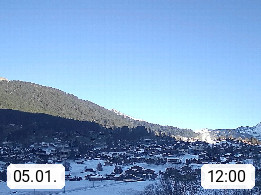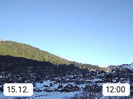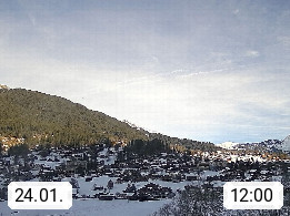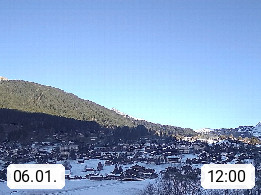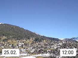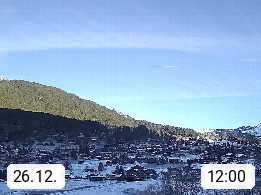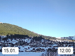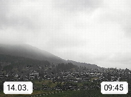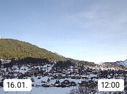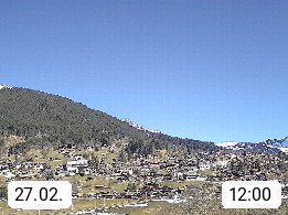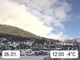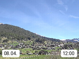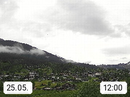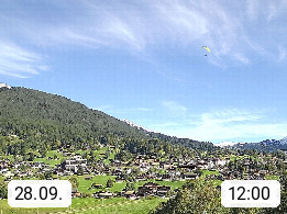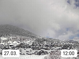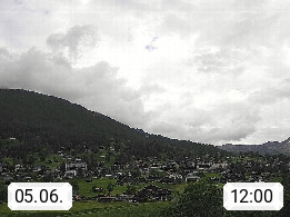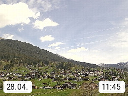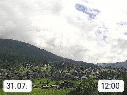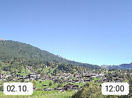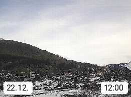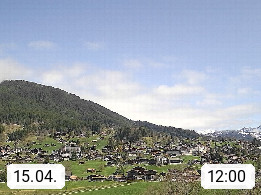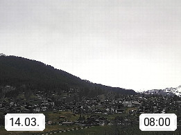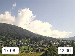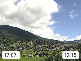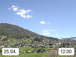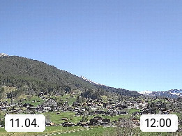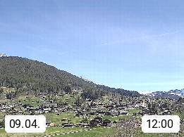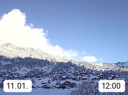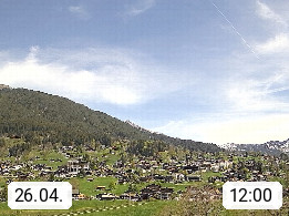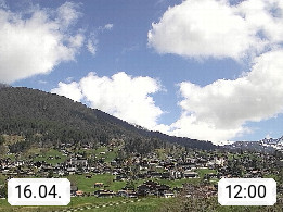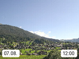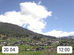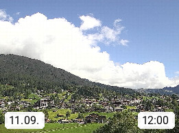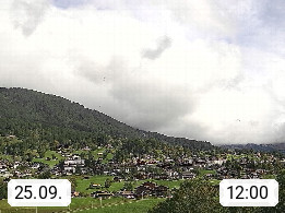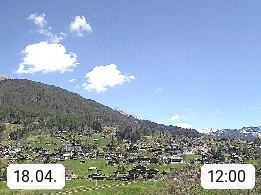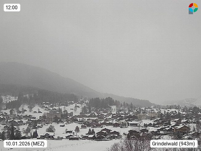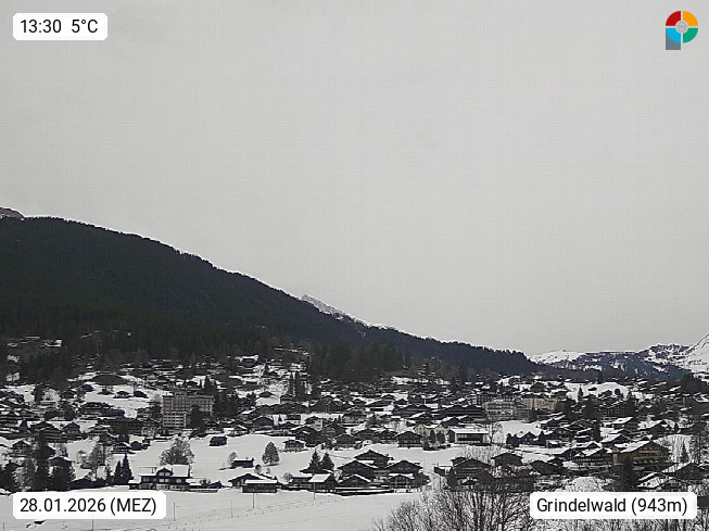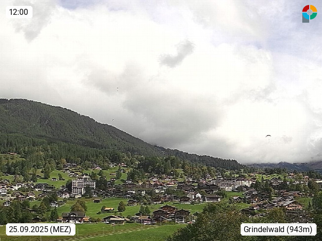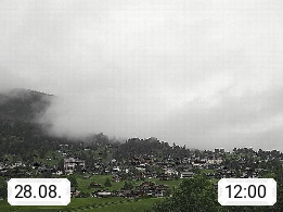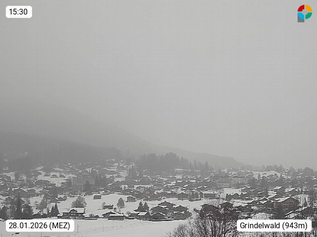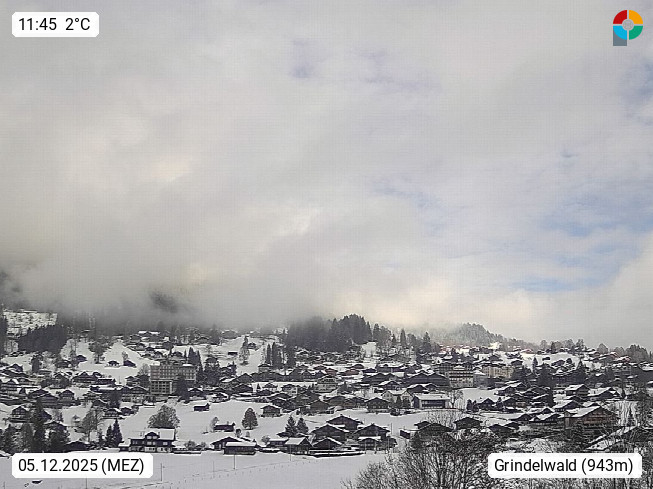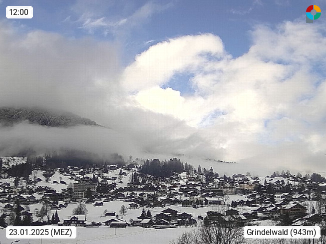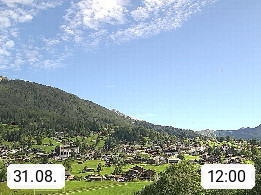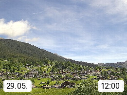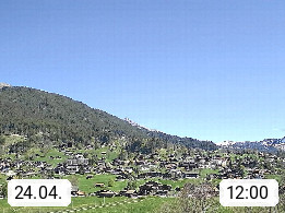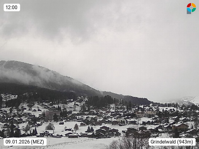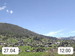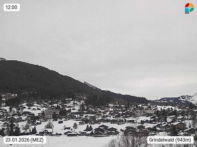 CH 3818 Grindelwald 1.034m, is a village in the district Interlaken in the canton Bern in region Bernese Oberland. The holiday resort presents with the mountains Wetterhorn 3.692m, Schreckhorn 4.078m, Eiger 3.970m, Moench 4.107m and Jungfrau 4.158m an impressing mountain landscape in the Alps of Bern. Panoramic view from the village centre in south direction to the mountain Wetterhorn 3.692m. Presented by https://www.grindelwald.net/.