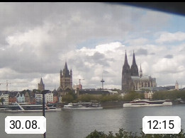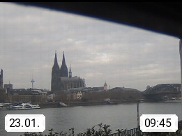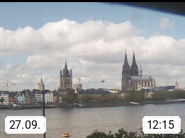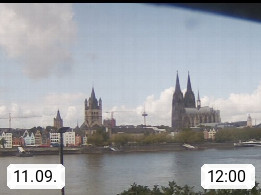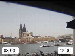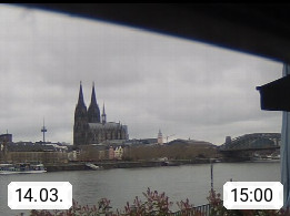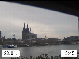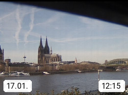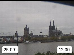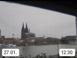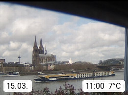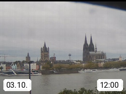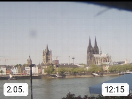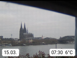 D 50679 Cologne 53m, until 1919 also called Coeln, in the Colognian dialect called Koelle, lies at the Rhine and is the largest city in the German state Nordrhein Westfalen. Colonia is located in the Colonian Bay of a valley landscape between the region Bergisch Land and the Eifel mountain range. Panoramic view from Kennedy Banks in west direction over the Rhine river to the Cologne Cathedral, the landmark of the city. Presented by https://restaurantoasis.de/.