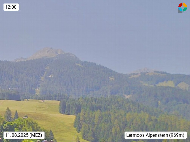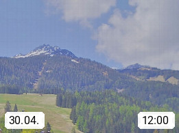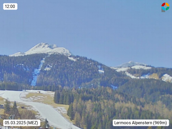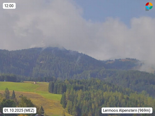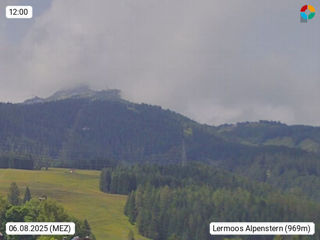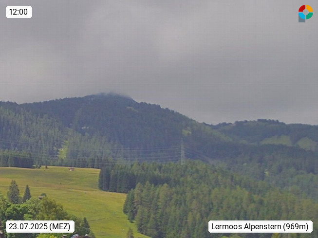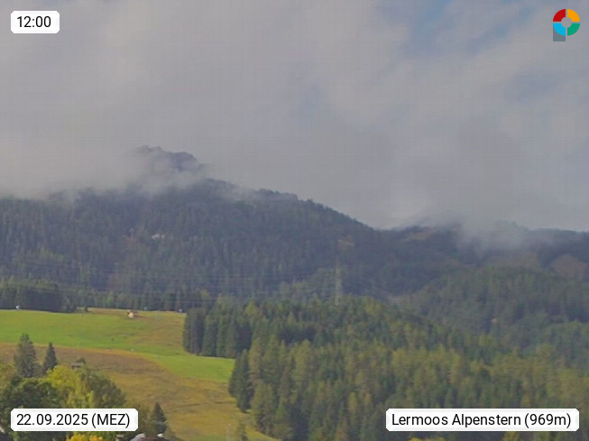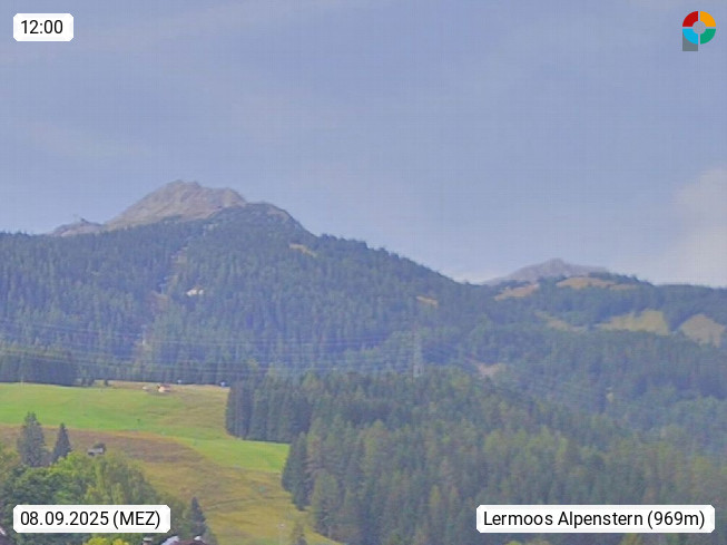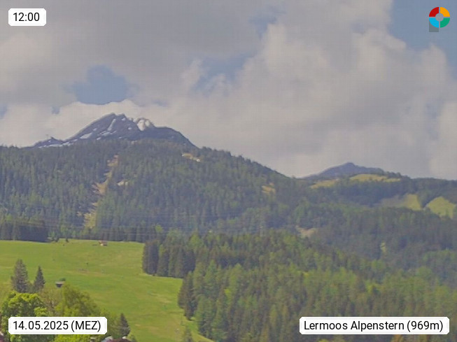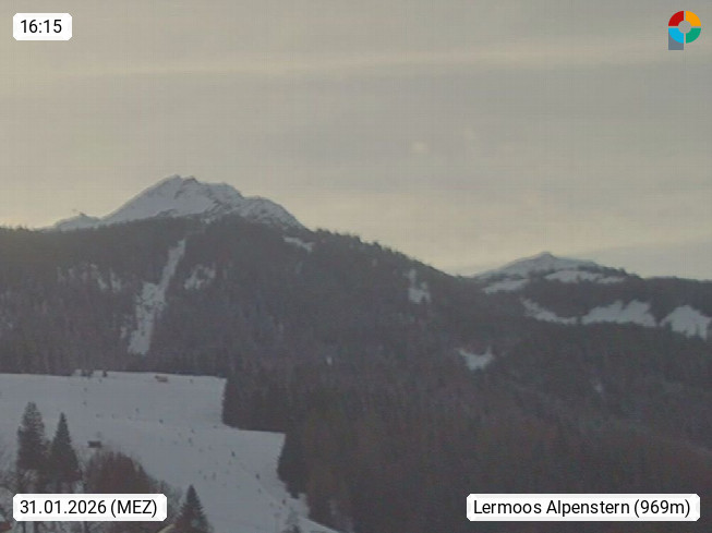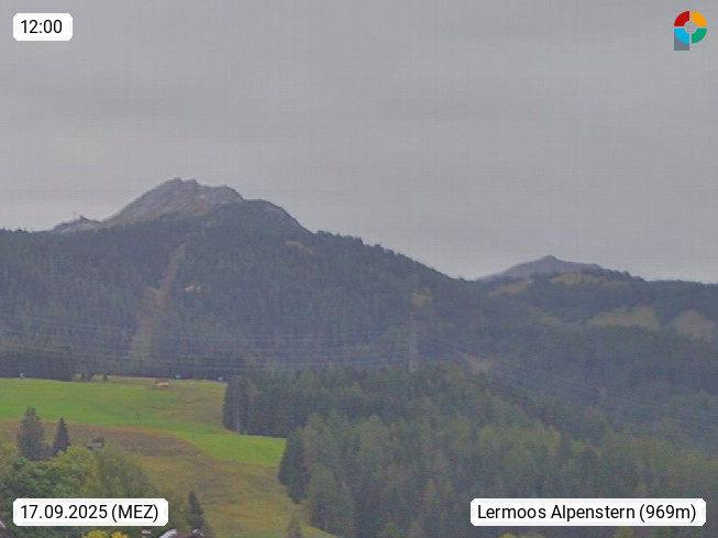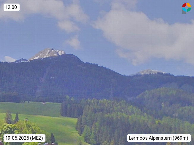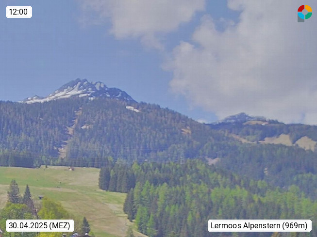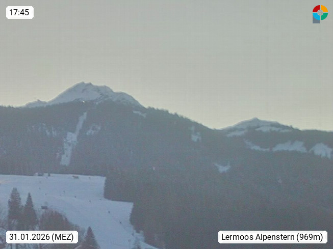 A 6631 Lermoos 1.004m, in the district Reutte in Ausserfern region between Lechtaler and Ammergauer Alps, Mieminger and the Wettersteingebirge mountains. View from the house Alpenstern in southwest direction to hiking and skiing mountain Mount Grubigstein 2.233m. Panoramic view to the Zugspitze, Germanys highest mountain with 2.962m. Presented by https://www.lermoos.net/.