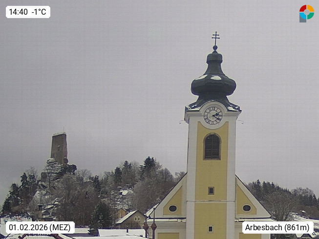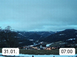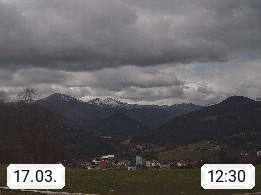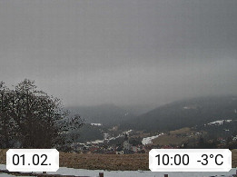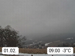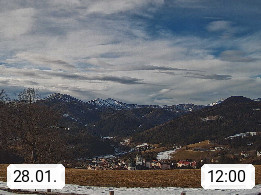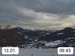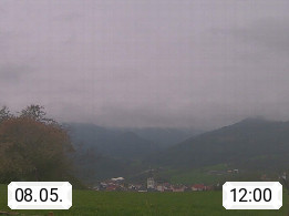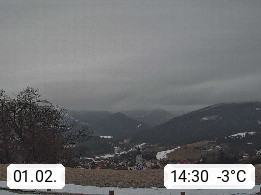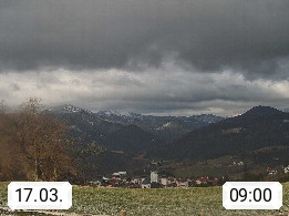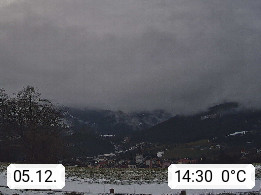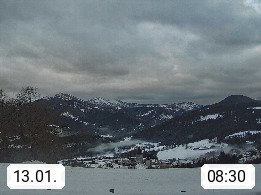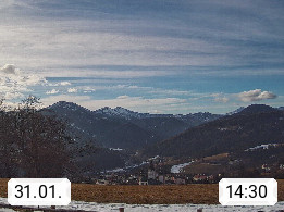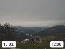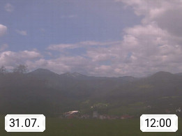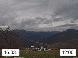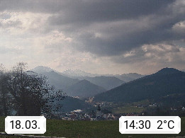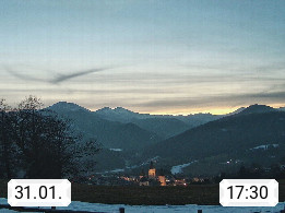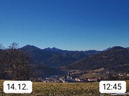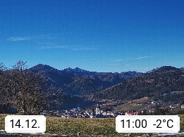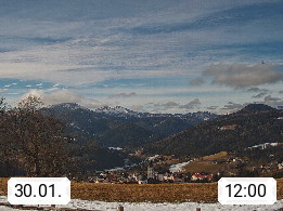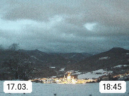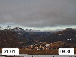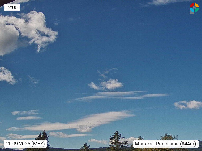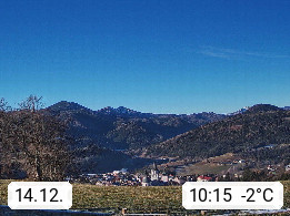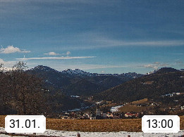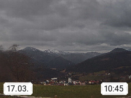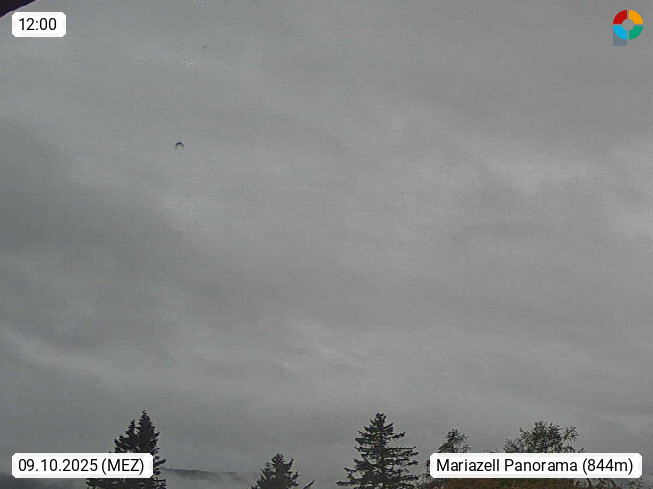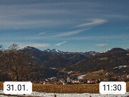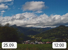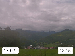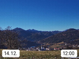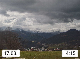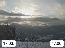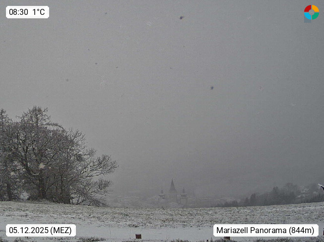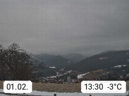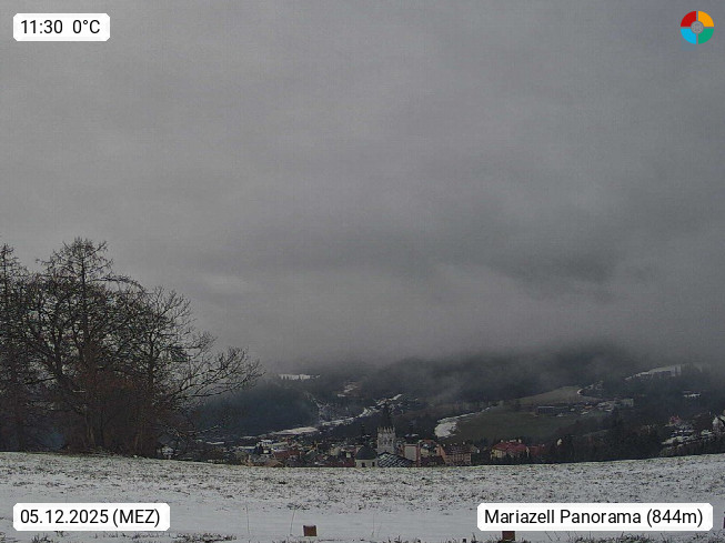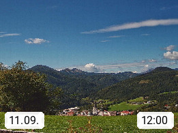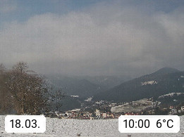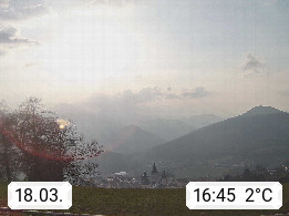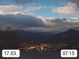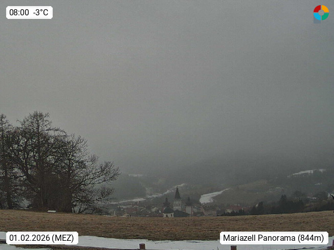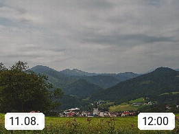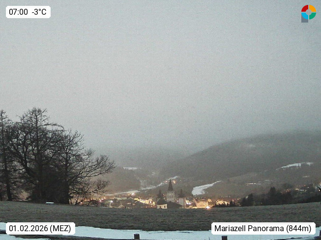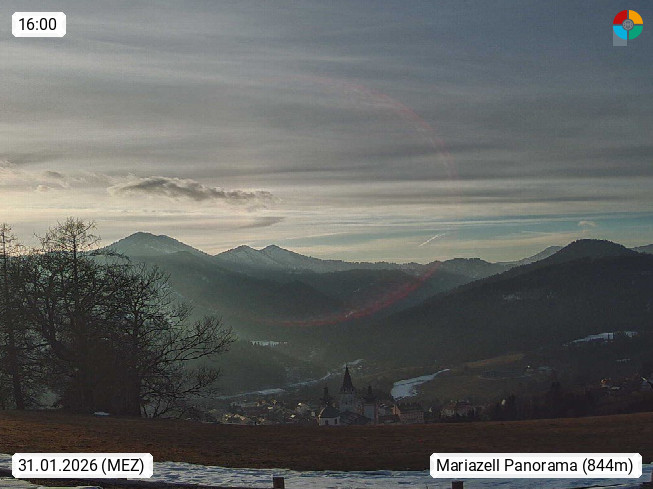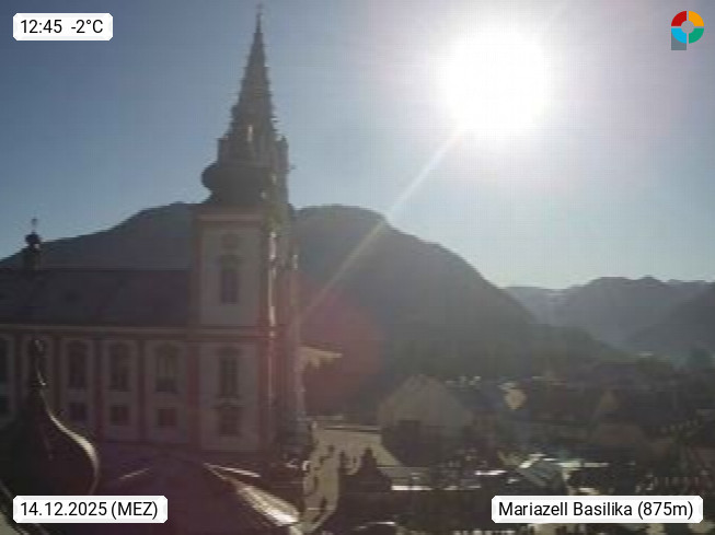 A 8630 Mariazell 868m, Austrias most important place of pilgrimage, which is located in the northern Upper Styria region in district Bruck at Mur. Panoramic view from the public observatory1.008m, in west direction to the steeples of the Basilica over Salzatal valley to Mount Zellerhut 1.689m and Duernstein village. Presented by http://www.sbm-web.at.