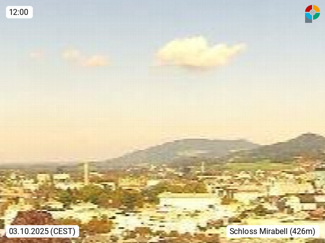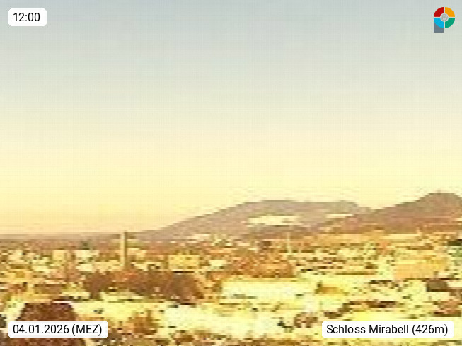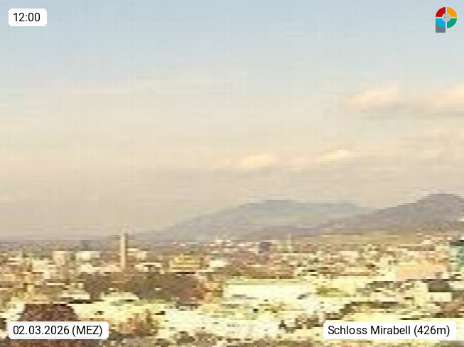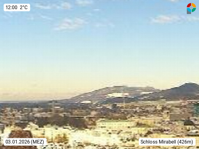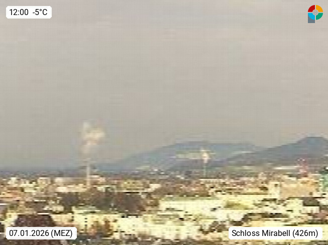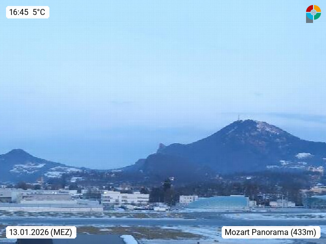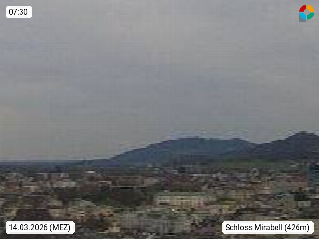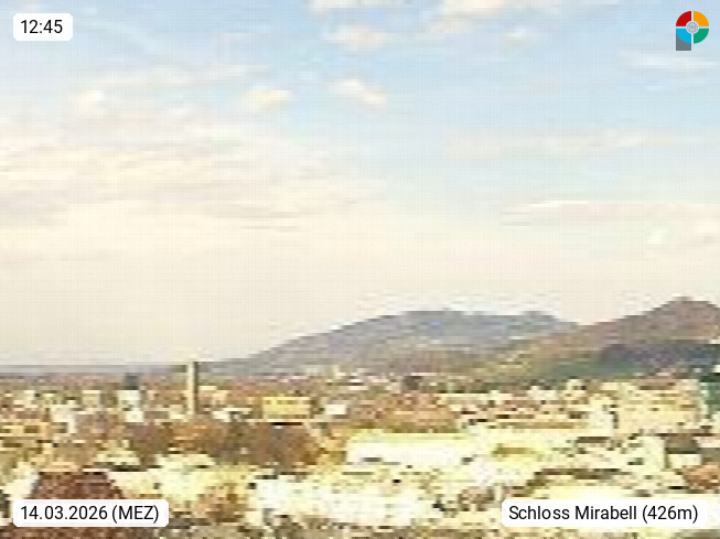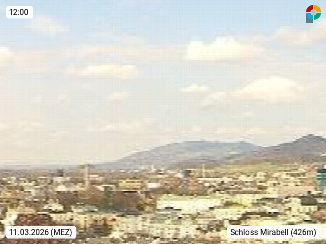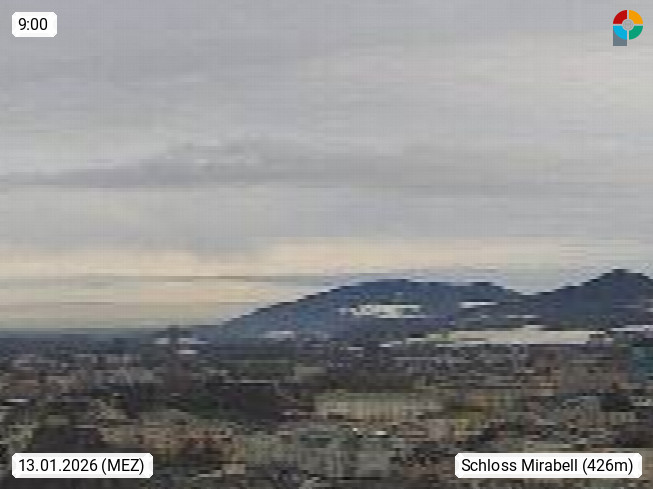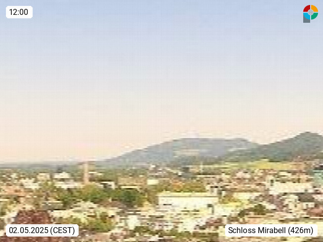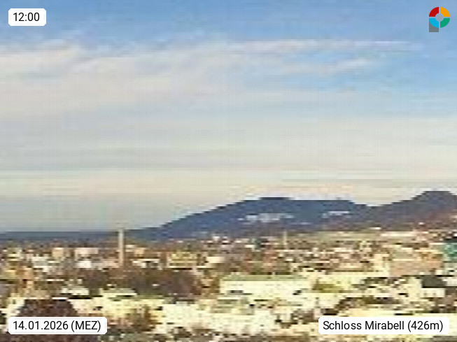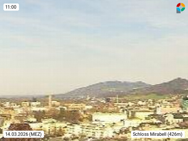 A 5024 Salzburg 424m, view in direction east over the over the Salzburg old town to Mirabell Palace with park, Andrae Church town district Schallmoos and Salzburg lake district. In the festival and Mozart town Salzburg are the oldest tunnel of Austria called Sigmunds Gate, Hohensalzburg Castle the biggest maintained fortress of Central Europe, the alpine canal the oldest water tunnel of the Middle Ages in Central Europe, the worldwide oldest cable railway, the worldwide best maintained Renaissance watergames in Hellbrunn and the Hellbrunn Alley. Promoted by http://www.panocams.at. Presented by https://www.salzburg-ag.at.