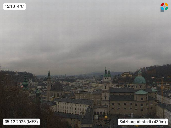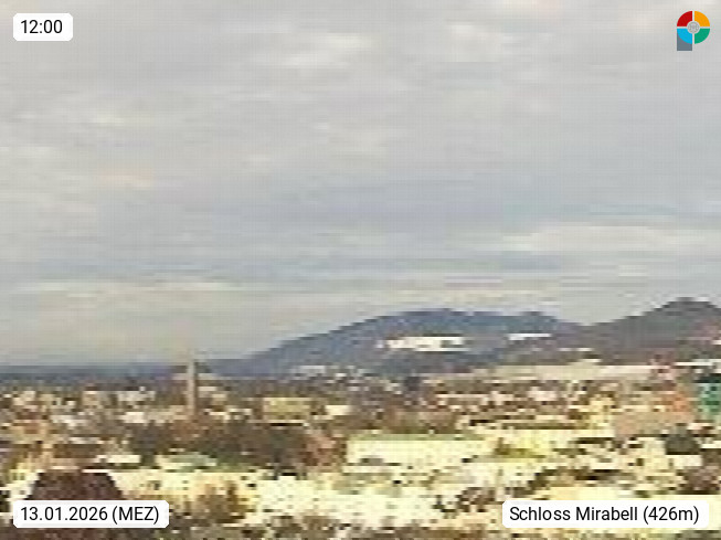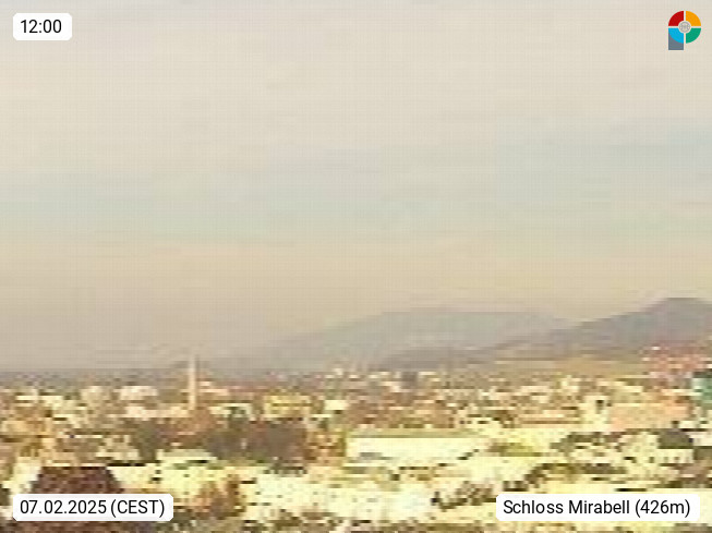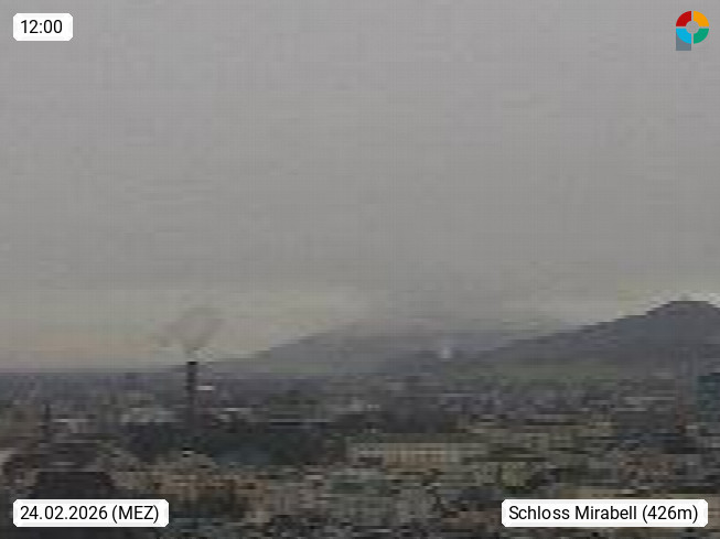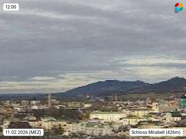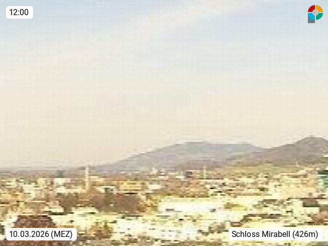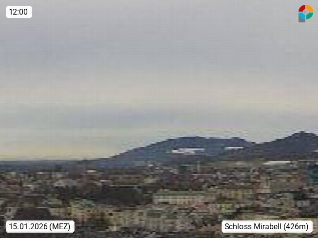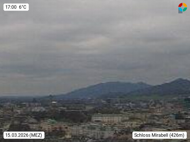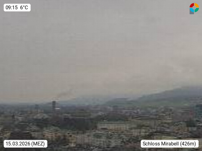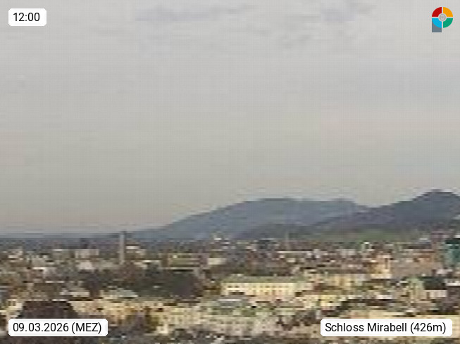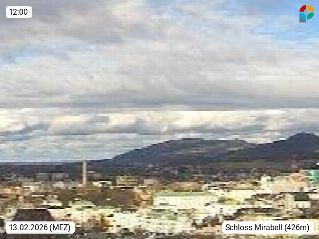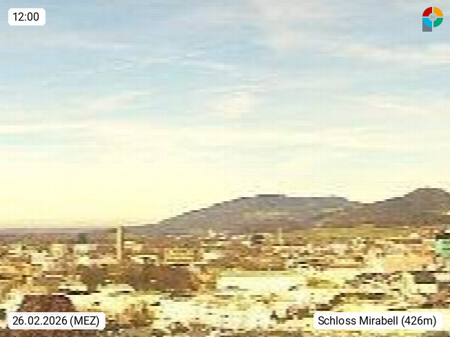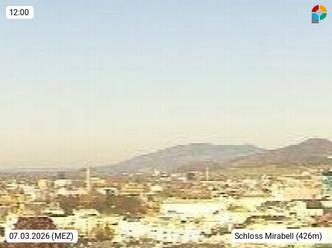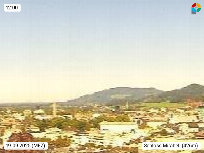 A 5024 Salzburg 424m, view in direction east over the over the Salzburg old town to Mirabell Palace with park, Andrae Church town district Schallmoos and Salzburg lake district. In the festival and Mozart town Salzburg are the oldest tunnel of Austria called Sigmunds Gate, Hohensalzburg Castle the biggest maintained fortress of Central Europe, the alpine canal the oldest water tunnel of the Middle Ages in Central Europe, the worldwide oldest cable railway, the worldwide best maintained Renaissance watergames in Hellbrunn and the Hellbrunn Alley. Promoted by http://www.panocams.at. Presented by https://www.salzburg-ag.at.