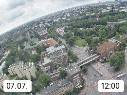 D 22083 Hamburg 9m, Free Hanseatic City Hamburg, in Low German dialect called Hamborg, lies in the north part of Germany and is as a city state 1 of the 16 German states on its own. Hamburg is the second largest city in Germany and lies at the mouth of the rivers Alster and Bille into the Elbe river, which flows 110 km further into the North Sea. Panoramic view from the 28th floor of the most famous skyscraper of Hamburg, the Mundsburg Tower, onto the city districts Mundsburg, Uhlenhorst and Aussenalster in the city centre of Hamburg. Presented by http://www.mundsburgtower.de.