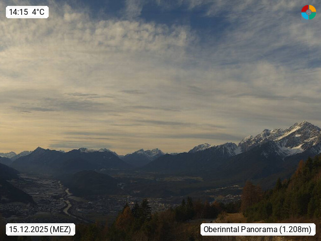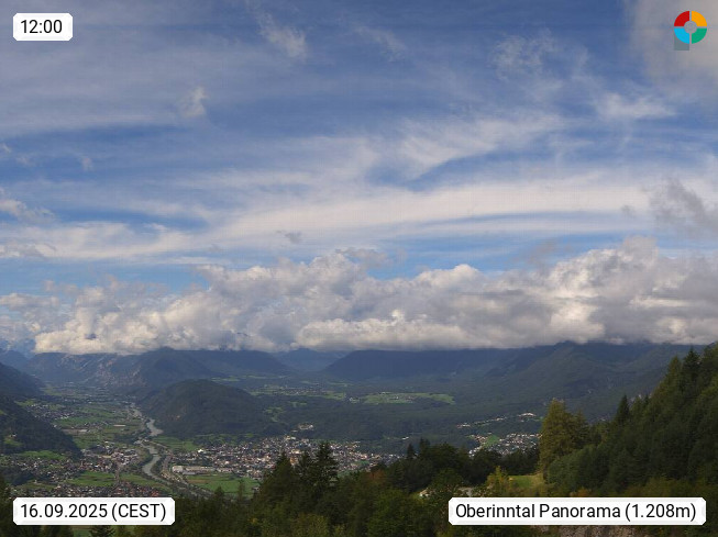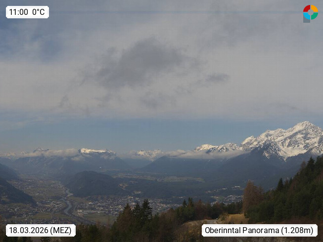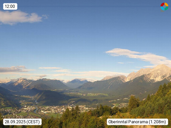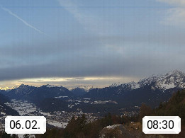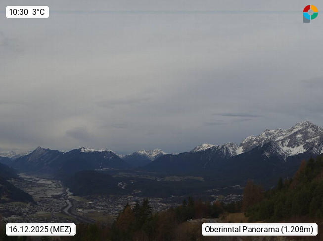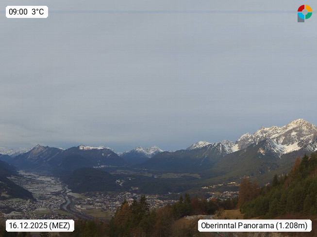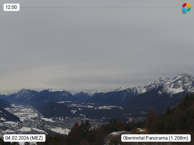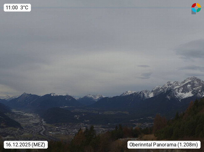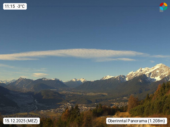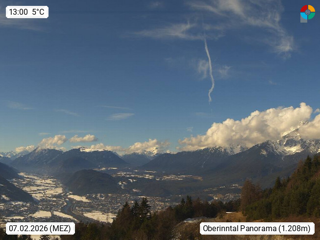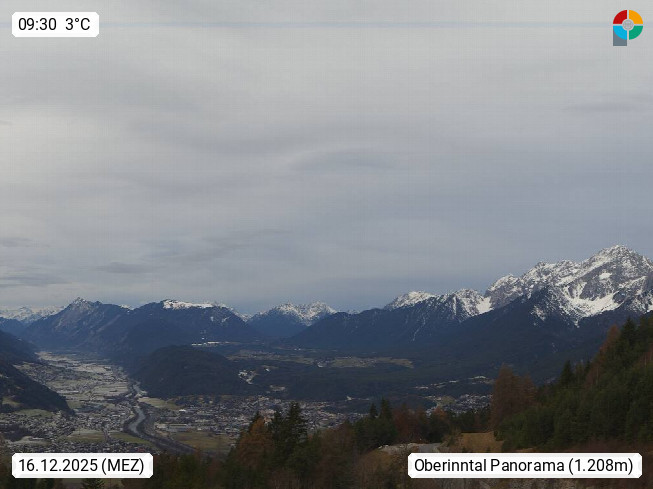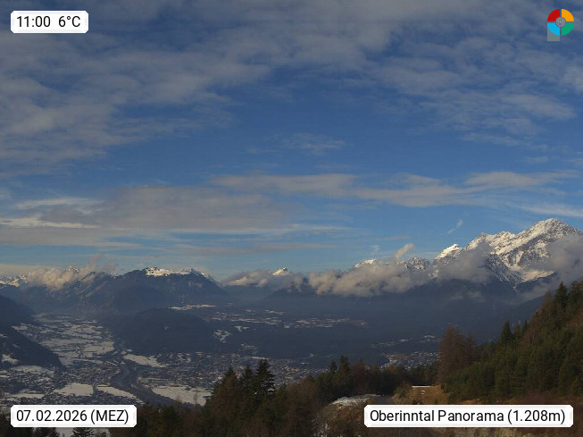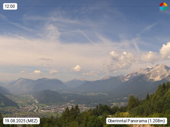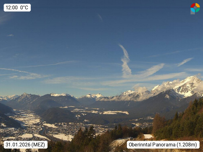 A 6100 Moesern near Seefeld 1.206m, Peace Village in the central Inn Valley, municipality Telfs, in the Olympic region of Seefeld. Panoramic view from Inntaler Hof toward the west, in fine weather to the Arlberg.To the left the Hocheder 2.796m and Rietzer Grießkogel 2.884m in the Stubai Alps. In the valley left of the Inn river you can see Oberpfaffenhofen and right the municipality Telfs. Presented by https://www.inntalerhof.at.