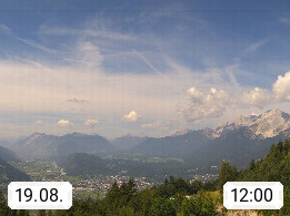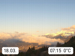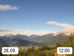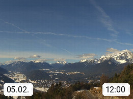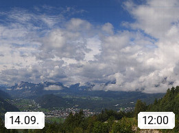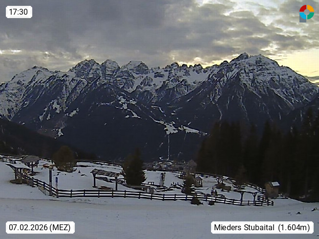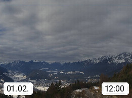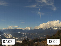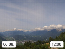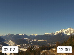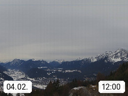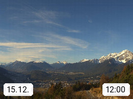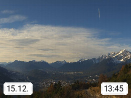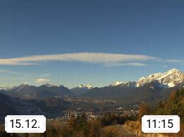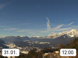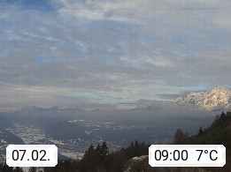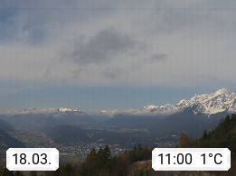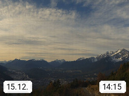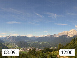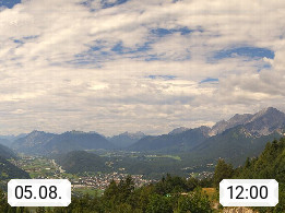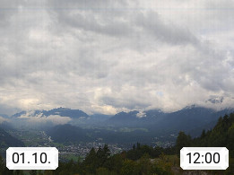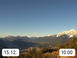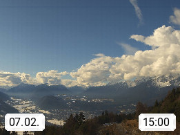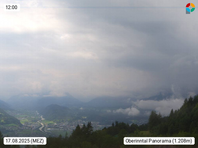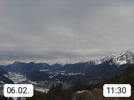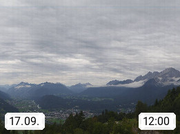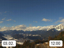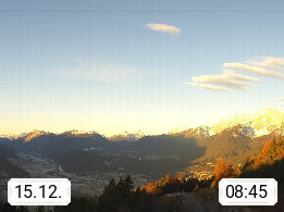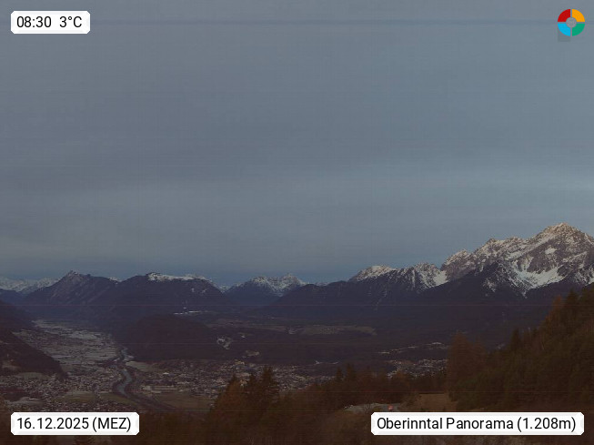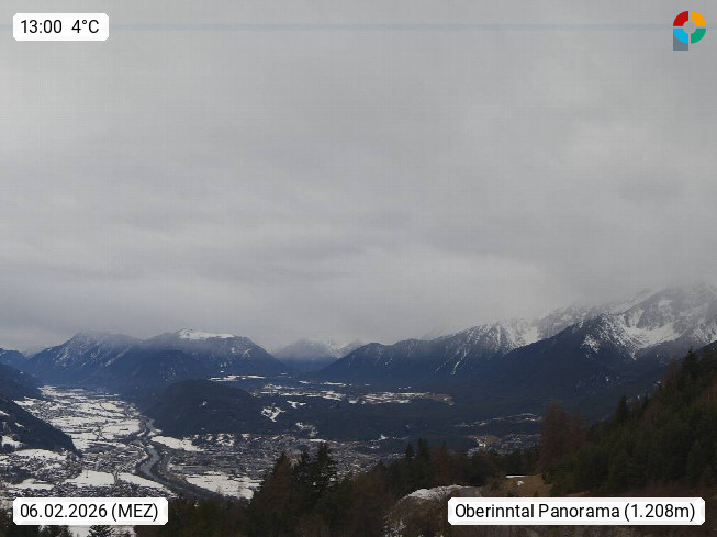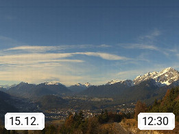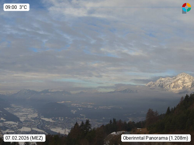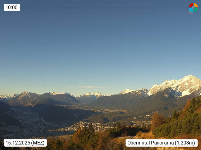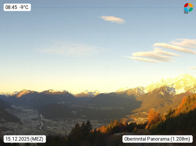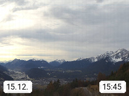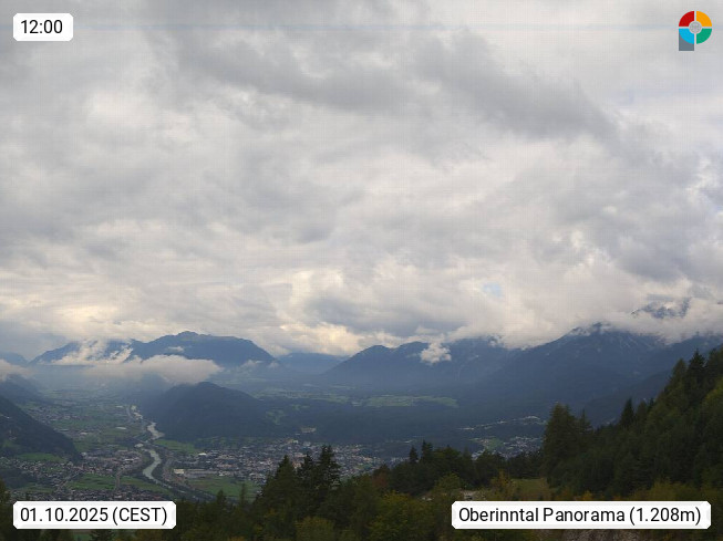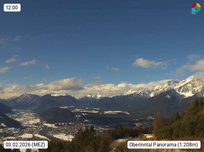 A 6100 Moesern near Seefeld 1.206m, Peace Village in the central Inn Valley, municipality Telfs, in the Olympic region of Seefeld. Panoramic view from Inntaler Hof toward the west, in fine weather to the Arlberg.To the left the Hocheder 2.796m and Rietzer Grießkogel 2.884m in the Stubai Alps. In the valley left of the Inn river you can see Oberpfaffenhofen and right the municipality Telfs. Presented by https://www.inntalerhof.at.