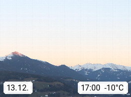 Mit diesem Code können Sie diesen Webcambaustein ganz einfach in Ihre Website einbauen. Klicken Sie dazu auf den Code, kopieren Sie diesen und fügen ihn anschließend ih Ihre Website ein. Der Baustein bietet die gleichen Funktionen, die auch auf panoramablick.com zu sehen sind: Livebild, Tagesverlauf und Archivbilder.