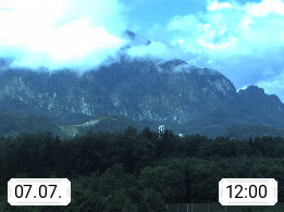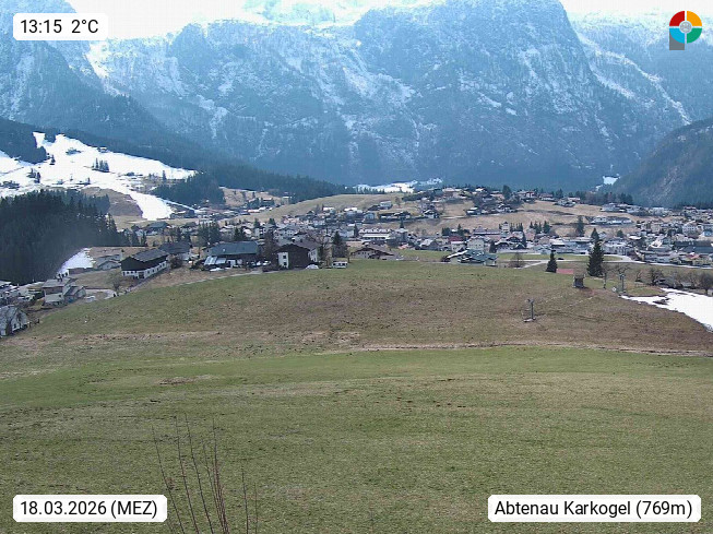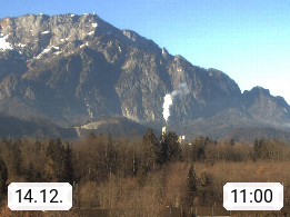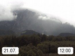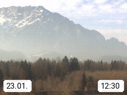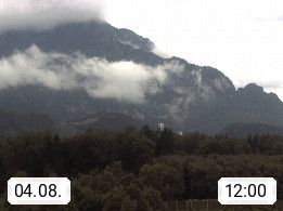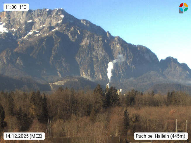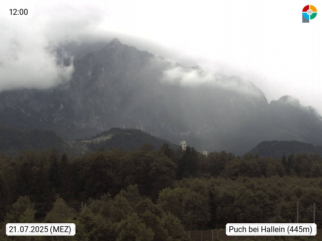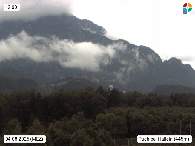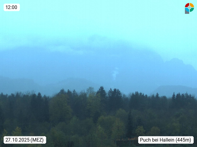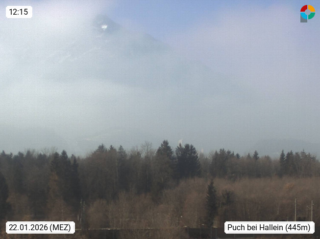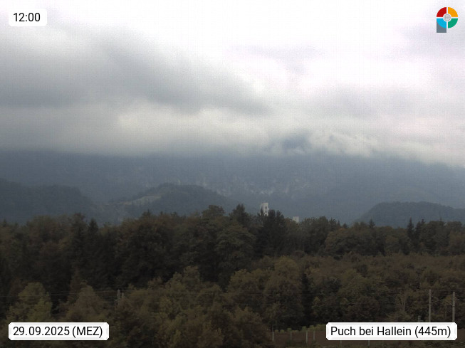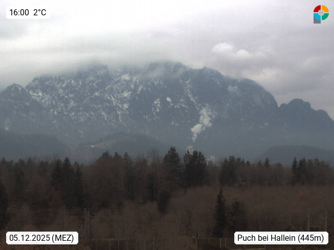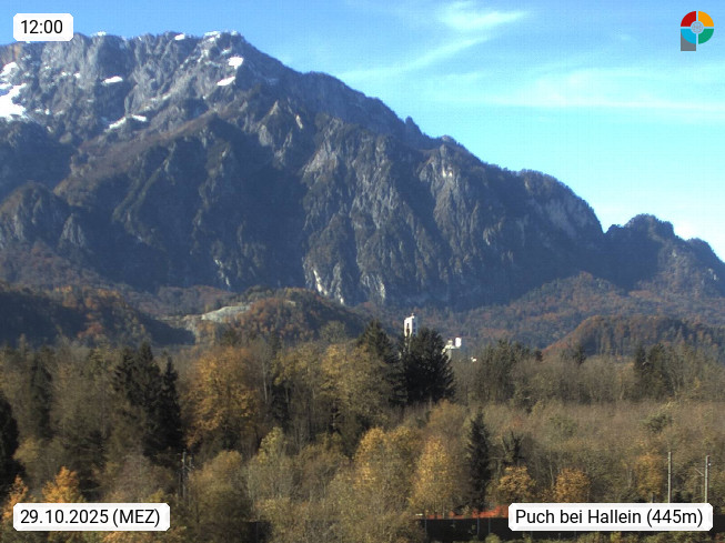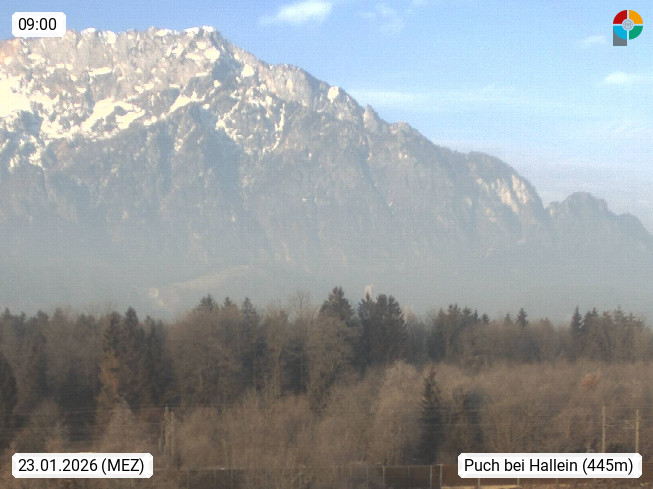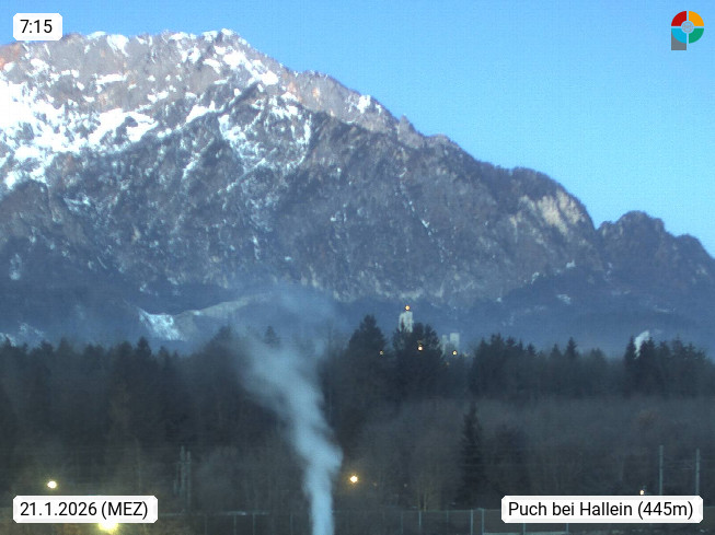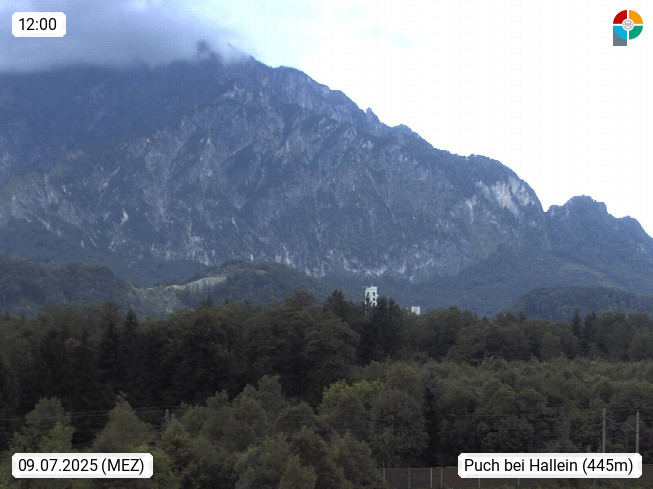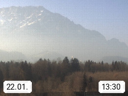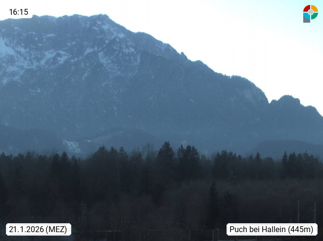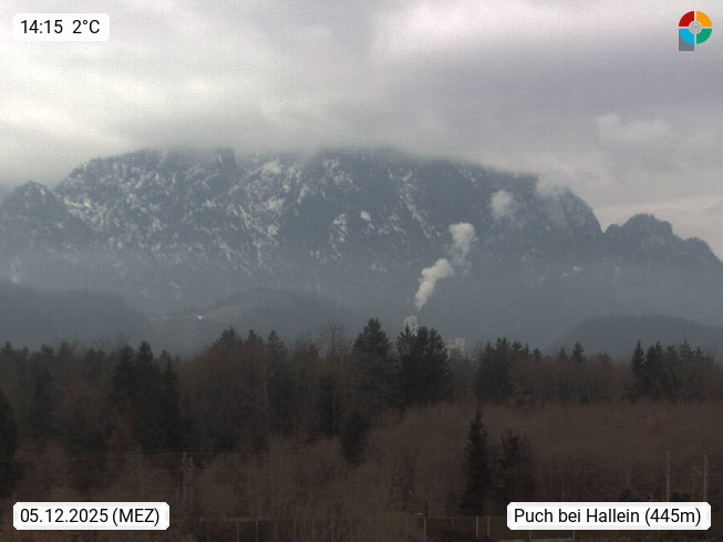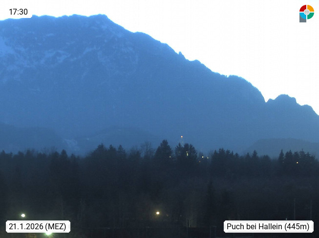 A 5412 Puch at Hallein 444m, is a municipality in the region Salzburger Land in the district Hallein, approximate 10 km south of Salzburg city. Panoramic view in northwest direction to Untersberg mountain, the most northern foothills of the Berchtesgadener Alps with the mountains Berchtesgadener 1.973m and Salzburger 1.853m HOCHTRON. Presented by https://www.kirchenwirt.at/.