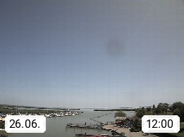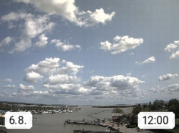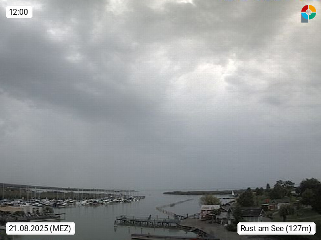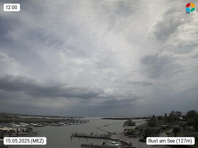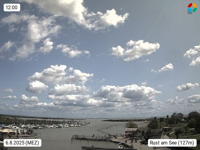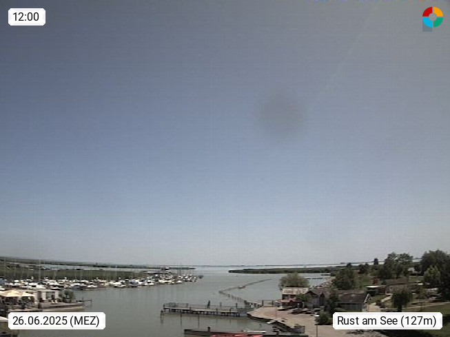 AT 7071 Rust am Neusiedlersee 124m, Hungarian Ruszt, Croatian. Rust is the smallest administrative district and the smallest statutory city in Austria with around 2,000 inhabitants and 20.01 km². Rust is known primarily as the city of storks and as a wine growing community. Panoramic view from the old town towards the south over the reed belt on Lake Neusiedl. Presented by https://www.freistadt-rust.at/.