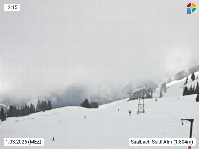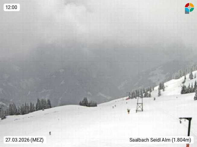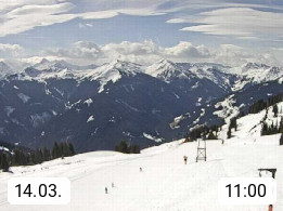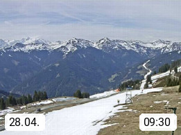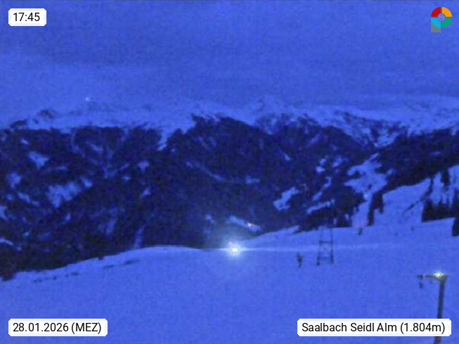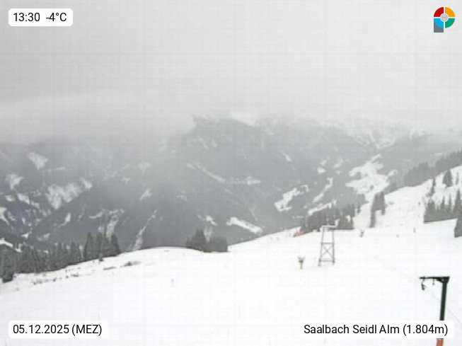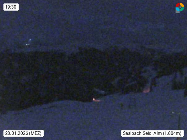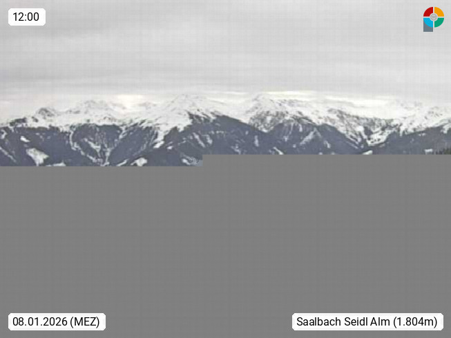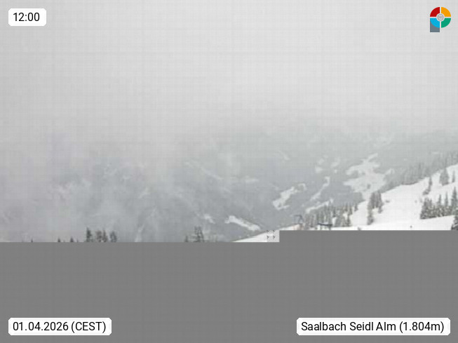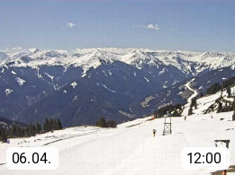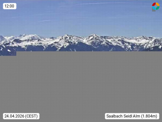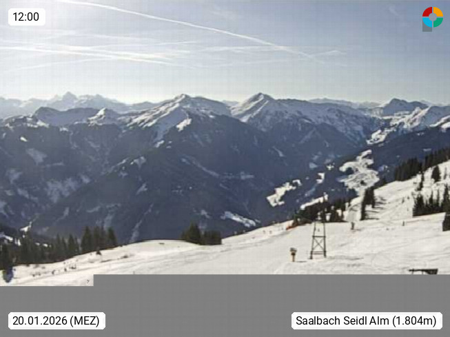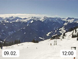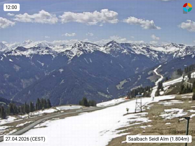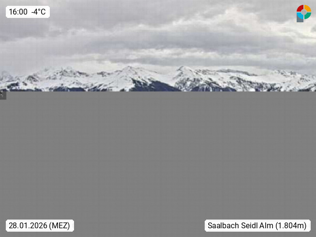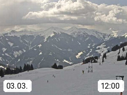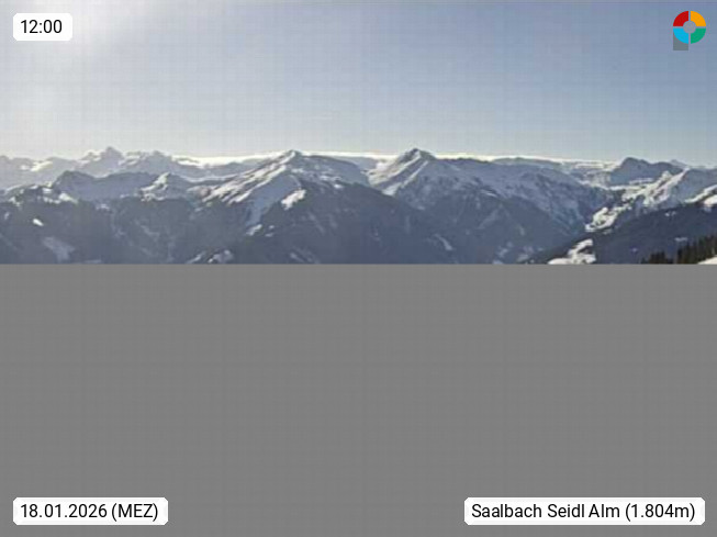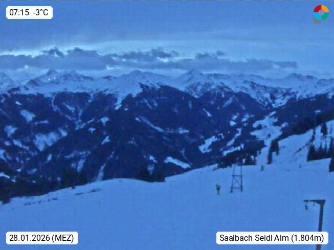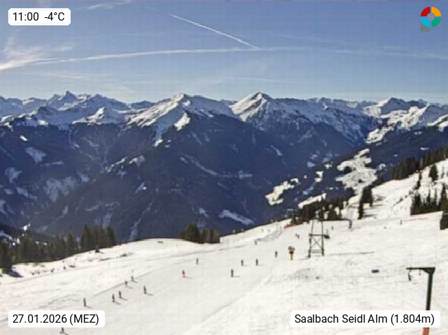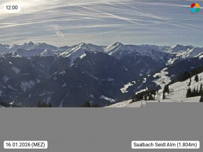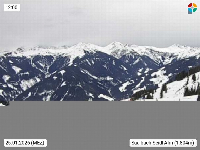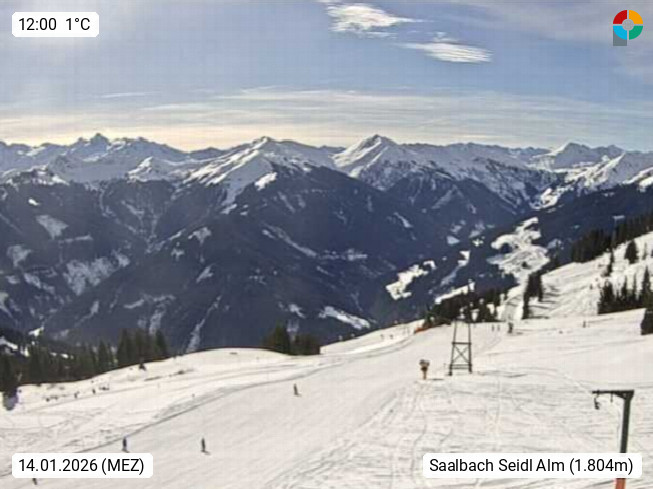 A 5753 Saalbach Hinterglemm Seidl Alp 1.804m, Holidayresort in the region Pinzgau in the valley of the river Saalach, wich runs from west to east and belongs to the region of the Kitzbuehler Alps. Panoramic view from the mountain restaurant and Hotel Seidl Alp in 1.804m in south direction to Mount Schattberg 2.095m. Presented by https://seidl-alm.com.