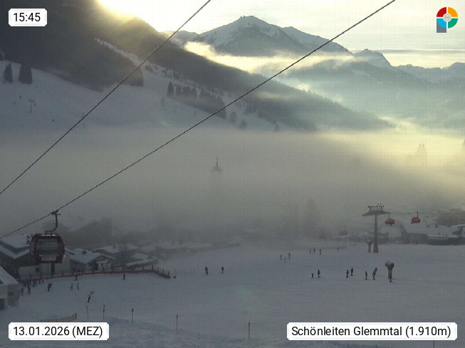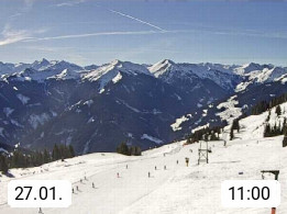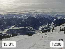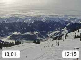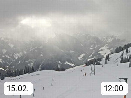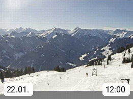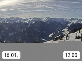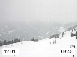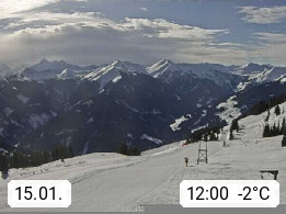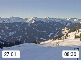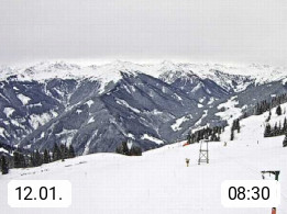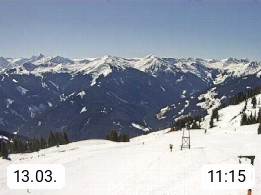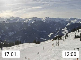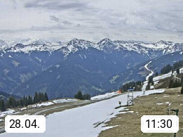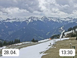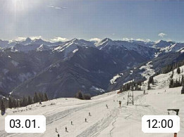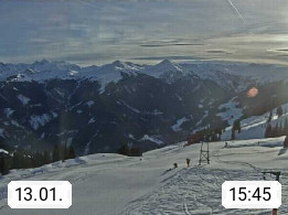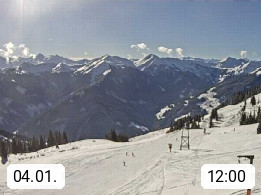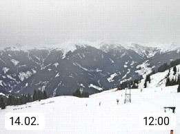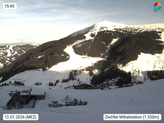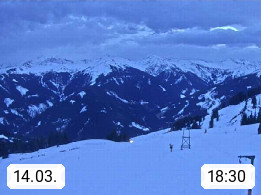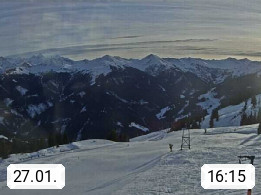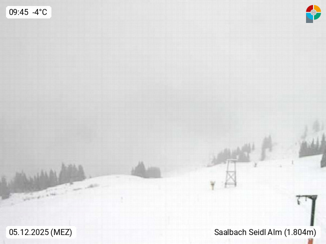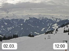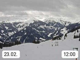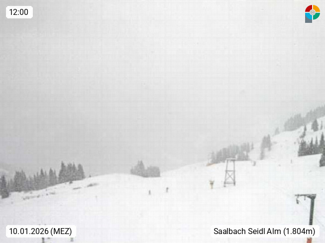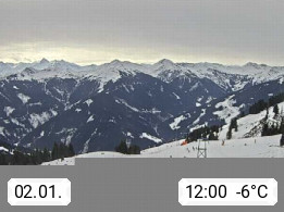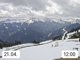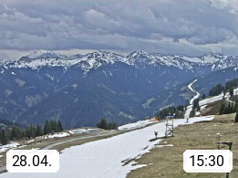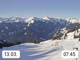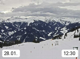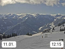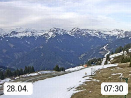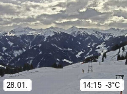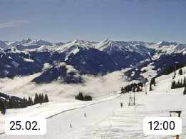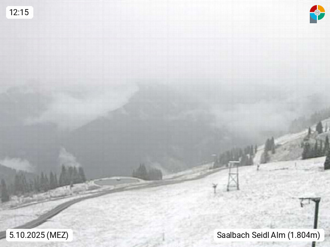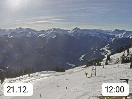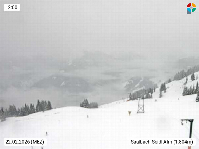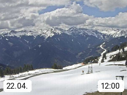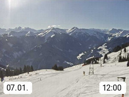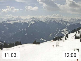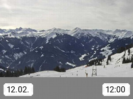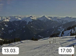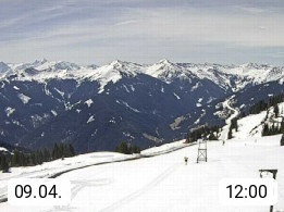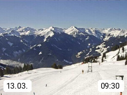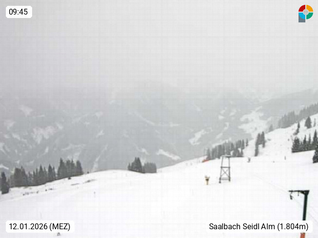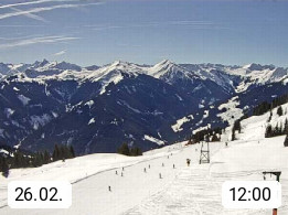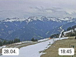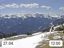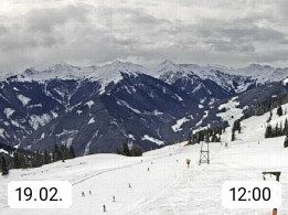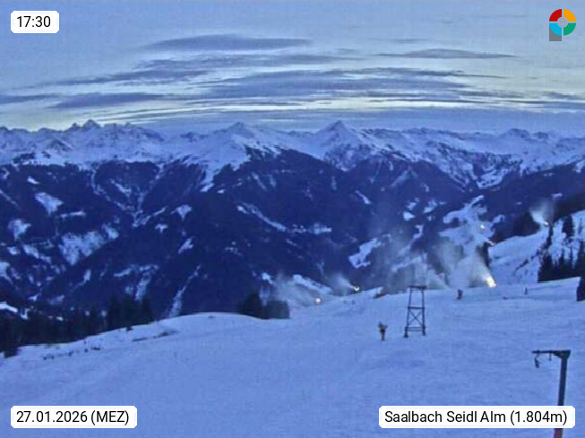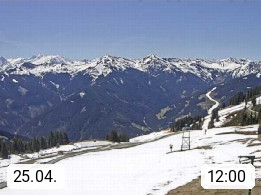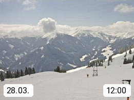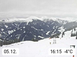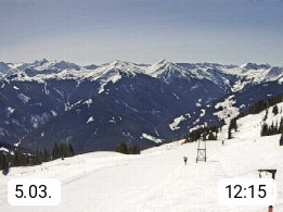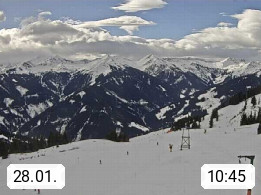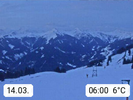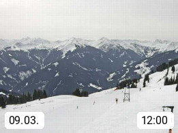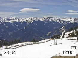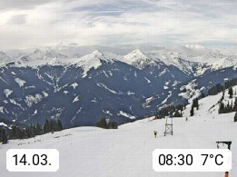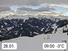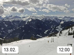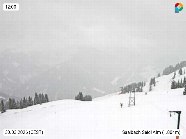 A 5753 Saalbach Hinterglemm Seidl Alp 1.804m, Holidayresort in the region Pinzgau in the valley of the river Saalach, wich runs from west to east and belongs to the region of the Kitzbuehler Alps. Panoramic view from the mountain restaurant and Hotel Seidl Alp in 1.804m in south direction to Mount Schattberg 2.095m. Presented by https://seidl-alm.com.