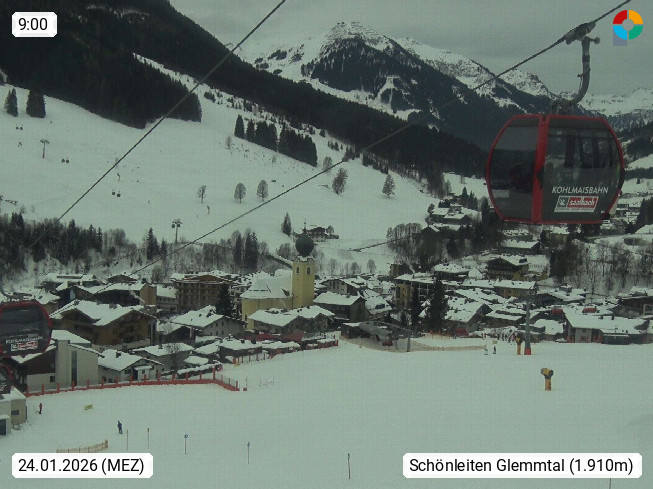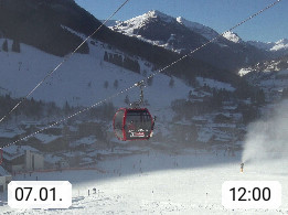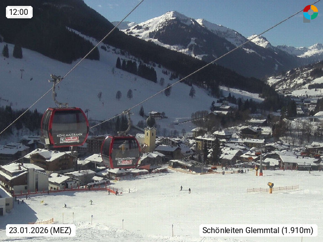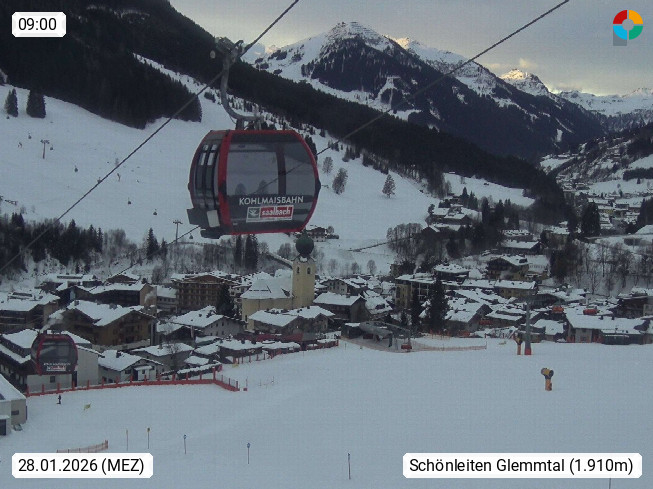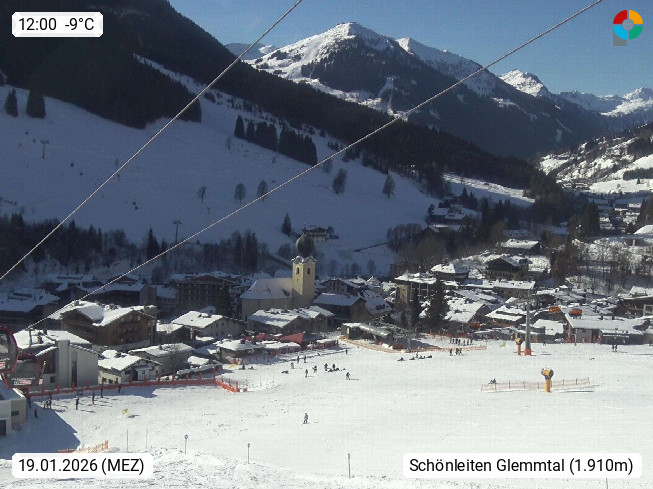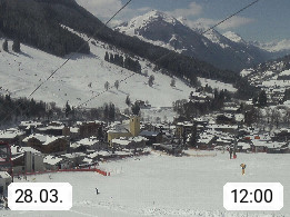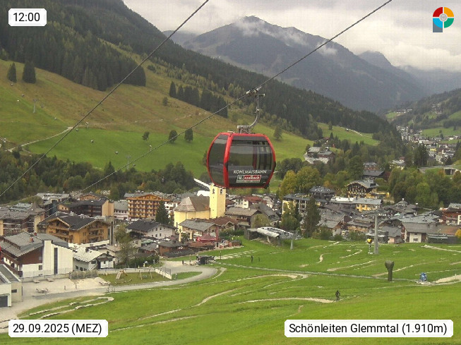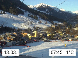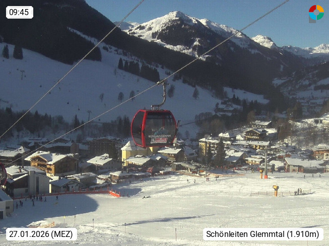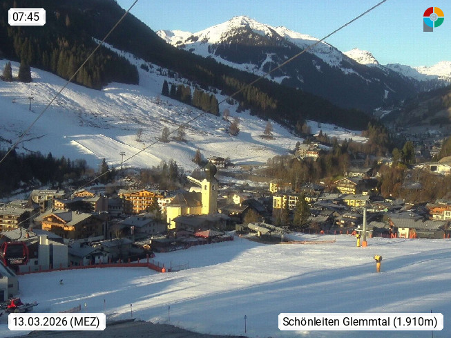A 5753 Saalbach Hinterglemm 1003m, Holidayresort in the region Pinzgau in the valley of the river Saalach, wich runs from west to east and belongs to the region of the Kitzbuehler Alps in the district Zell am See. Panoramic view over the Schoenleiten at Mount Asitz Kogel 1.910m in the skiing area Skischaukel Saalbach - Leogang in west direction to the Glemmtal valley. Presented by https://www.saalbach.com/.
