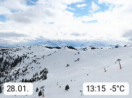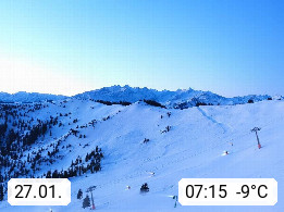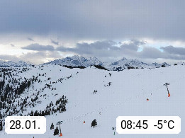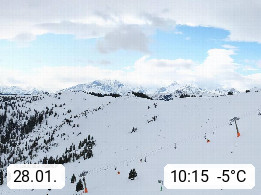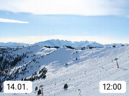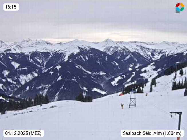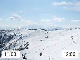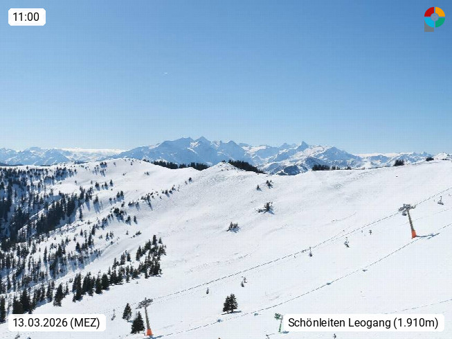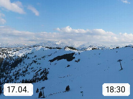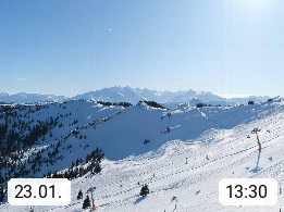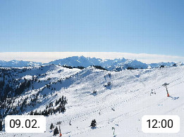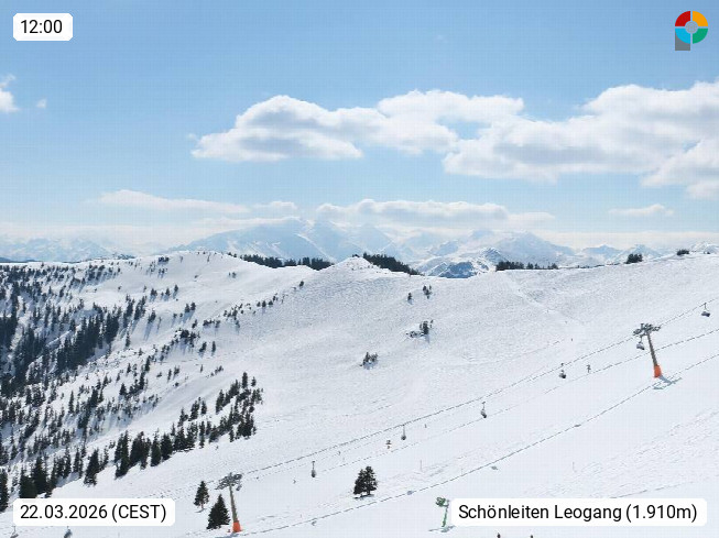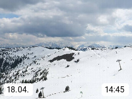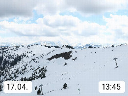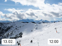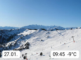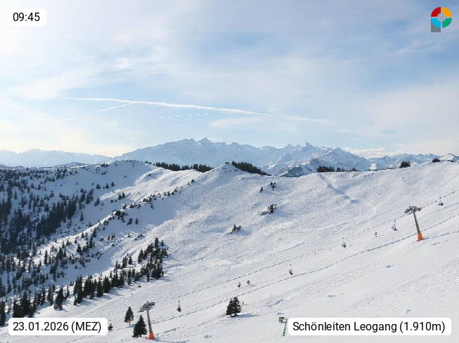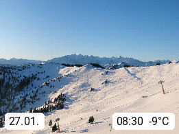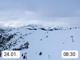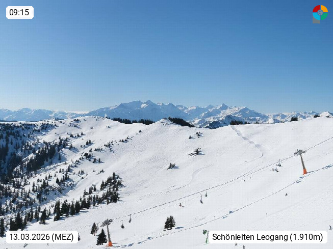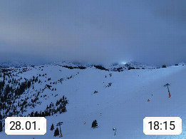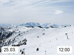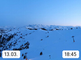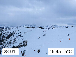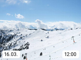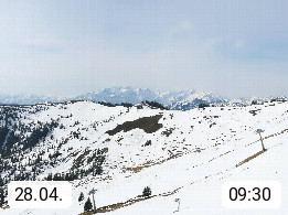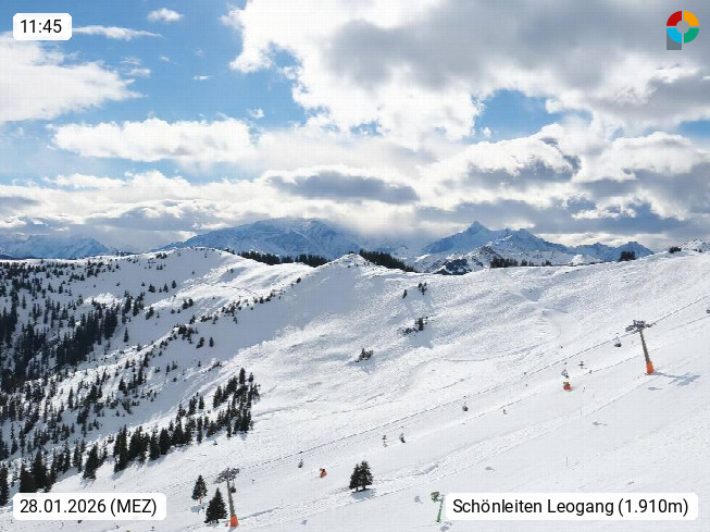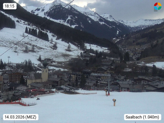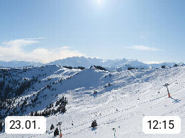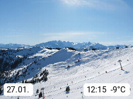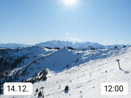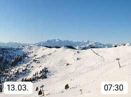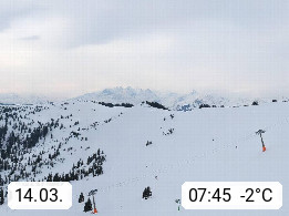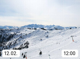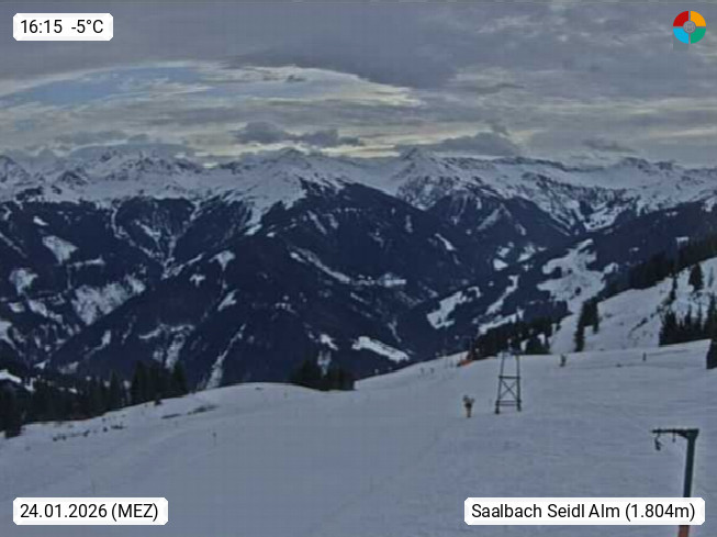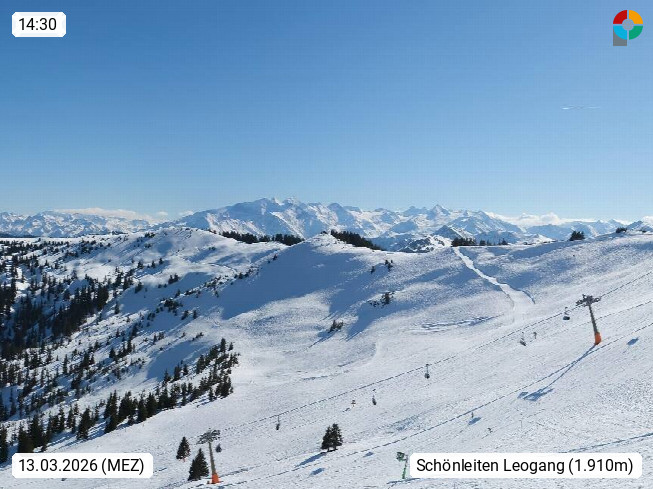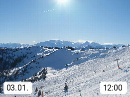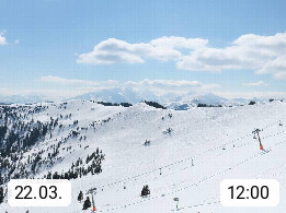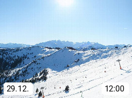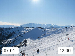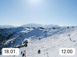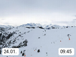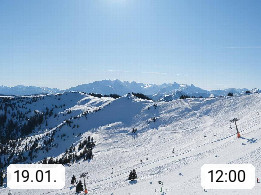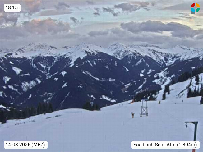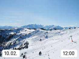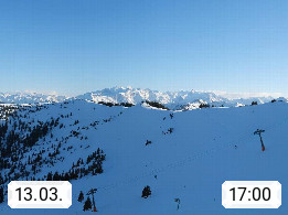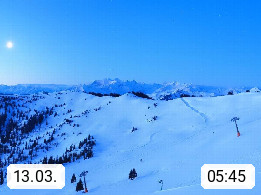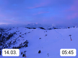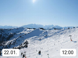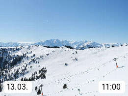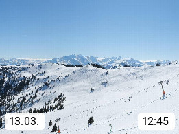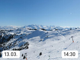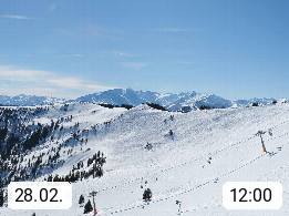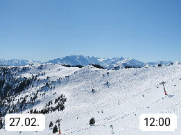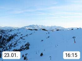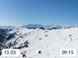A 5753 Saalbach Hinterglemm 1003m, Holidayresort in the region Pinzgau in the valley of the river Saalach, wich runs from west to east and belongs to the region of the Kitzbuehler Alps in the district Zell am See. Panoramic view over the Schoenleiten at Mount Asitz Kogel 1.910m in the skiing area Skischaukel Saalbach - Leogang. In the background in east direction are the peaks of the Steinernes Meer mountain range. Presented by https://www.saalbach.com/.