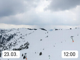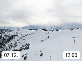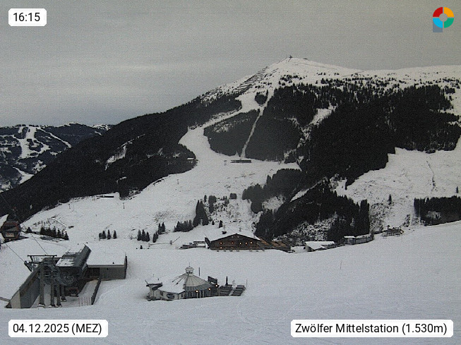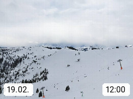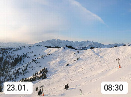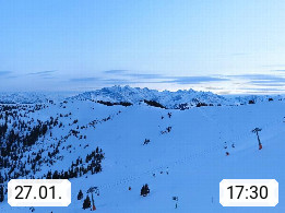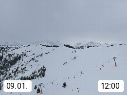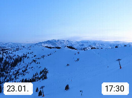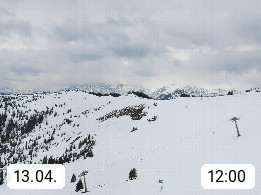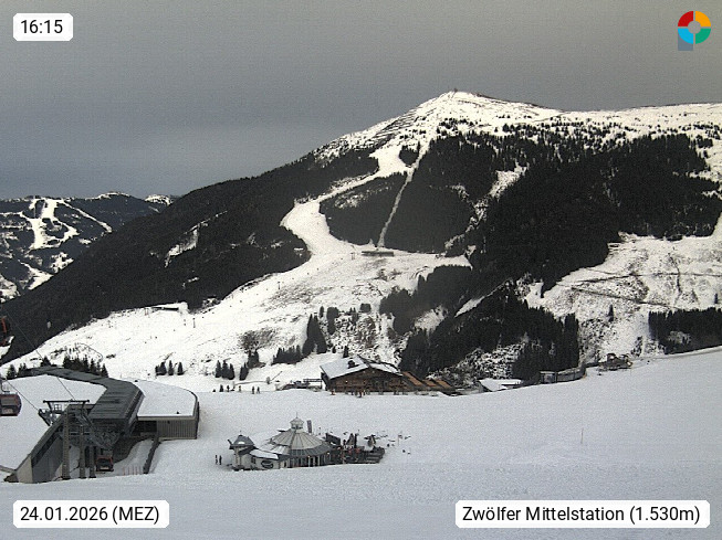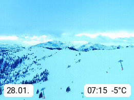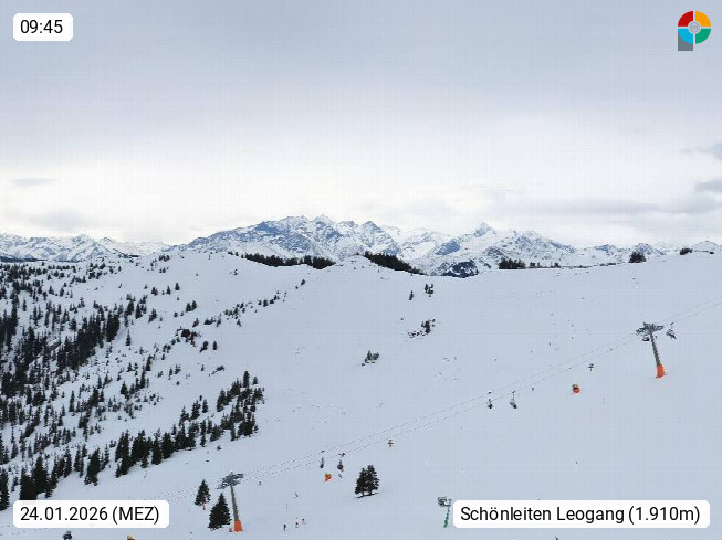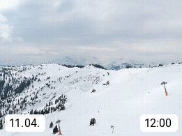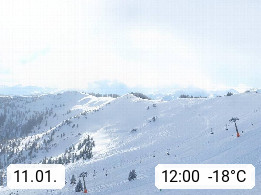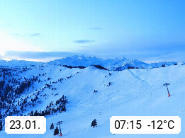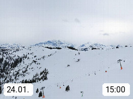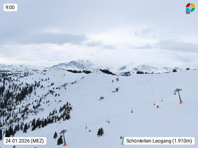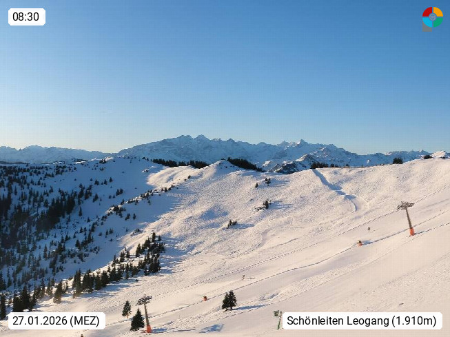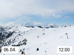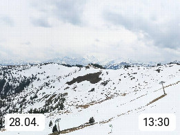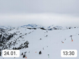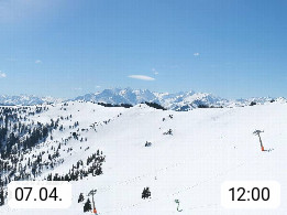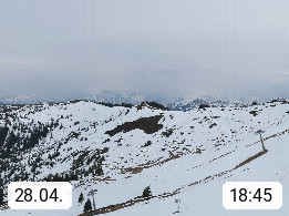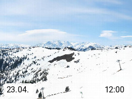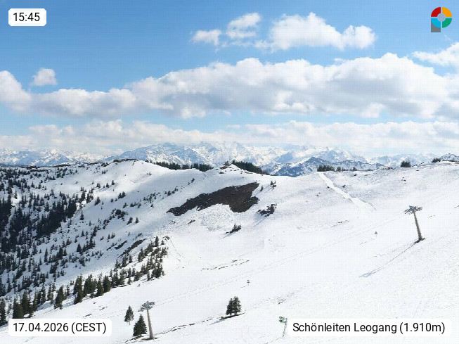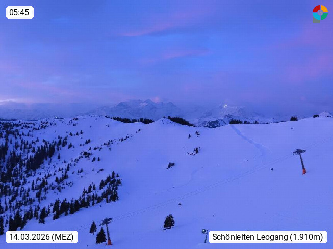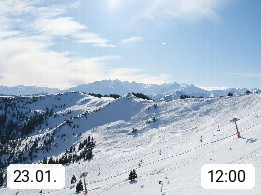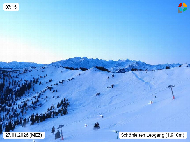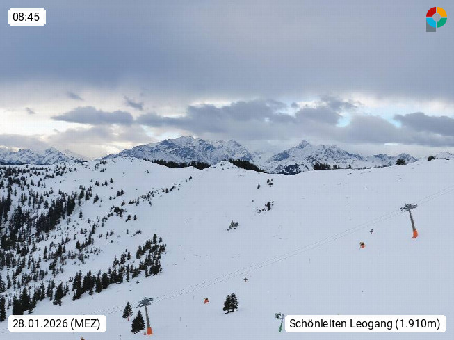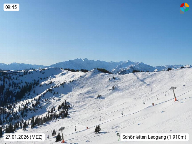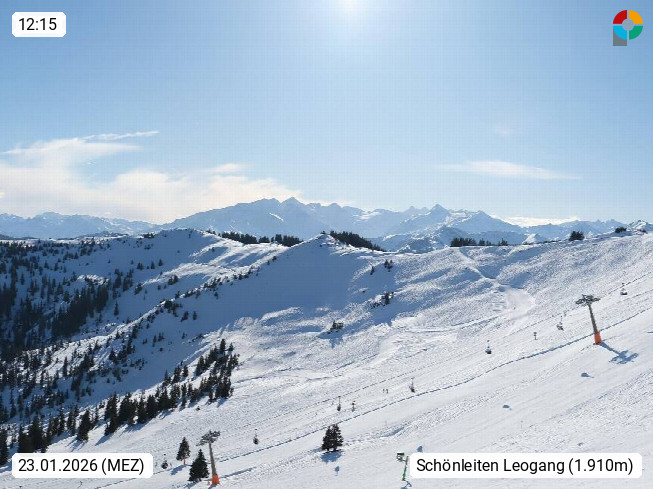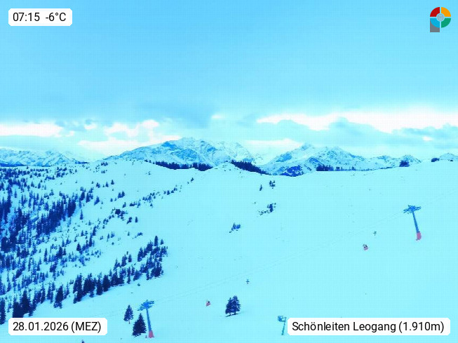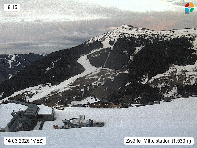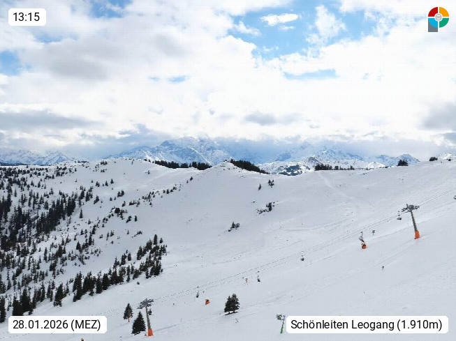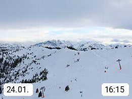 A 5753 Saalbach Hinterglemm 1003m, Holidayresort in the region Pinzgau in the valley of the river Saalach, wich runs from west to east and belongs to the region of the Kitzbuehler Alps in the district Zell am See. Panoramic view over the Schoenleiten at Mount Asitz Kogel 1.910m in the skiing area Skischaukel Saalbach - Leogang. In the background in east direction are the peaks of the Steinernes Meer mountain range. Presented by https://www.saalbach.com/.