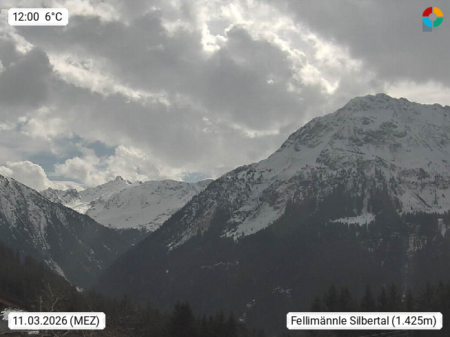 A 6780 Silbertal Kristberg 1.425m, located in a side valley of Montafon in the Verwall Alps in district Bludenz. View towards the east over children's land of ski school Silbertal to the rear Silbertal with the Lobspitzmassiv 2.605m, Fellimännlegipfe 2.209m and Valschavieler Maderer 2.769m. Deine Erholungsinfo gibt es auf www.montafon.at