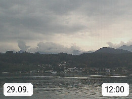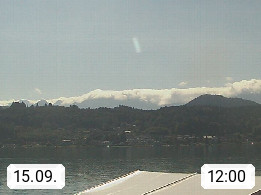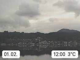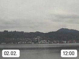 A 9212 Techelsberg on Woerthersee 465m, village in the district Klagenfurt Land. View from the KELAG power plant Forstsee, first storage power station of Carinthia, which has been started in 1925 and it lies between Velden and Pörtschach, southwest direction. On a clear day you can see the Karawanken mountains in the background. Promoted by http://www.kelag.at. Presented by https://www.woerthersee.info.