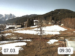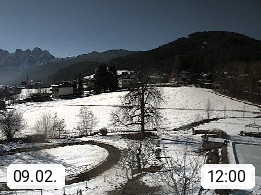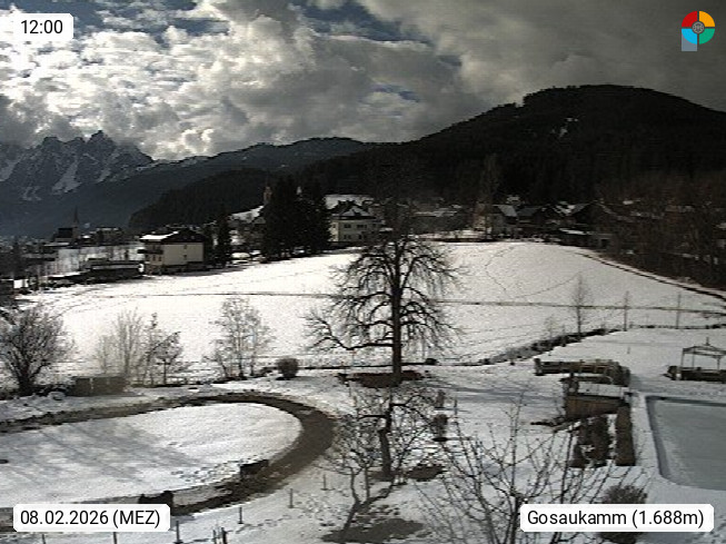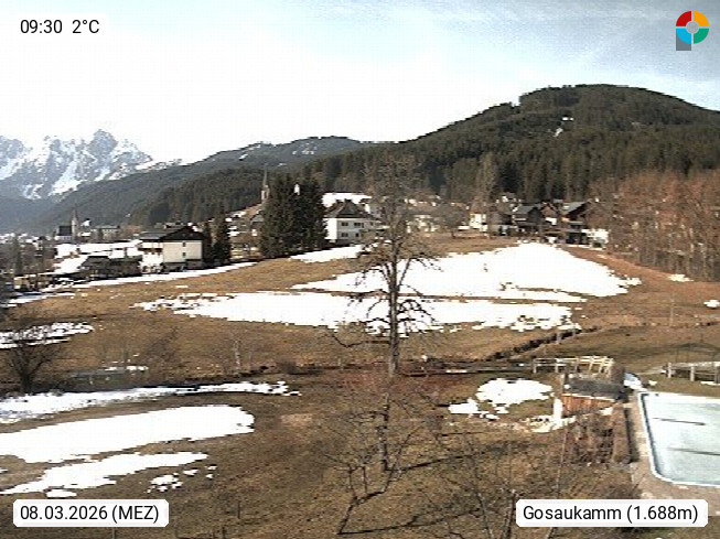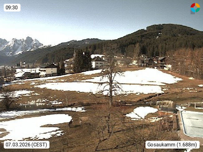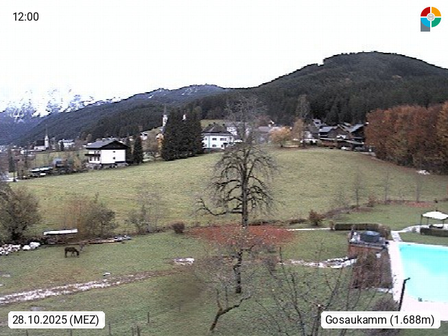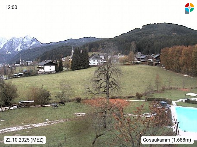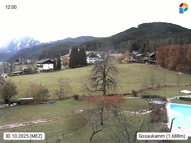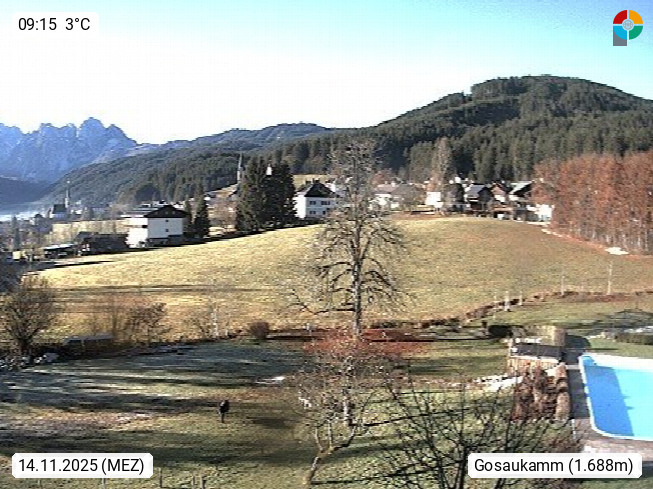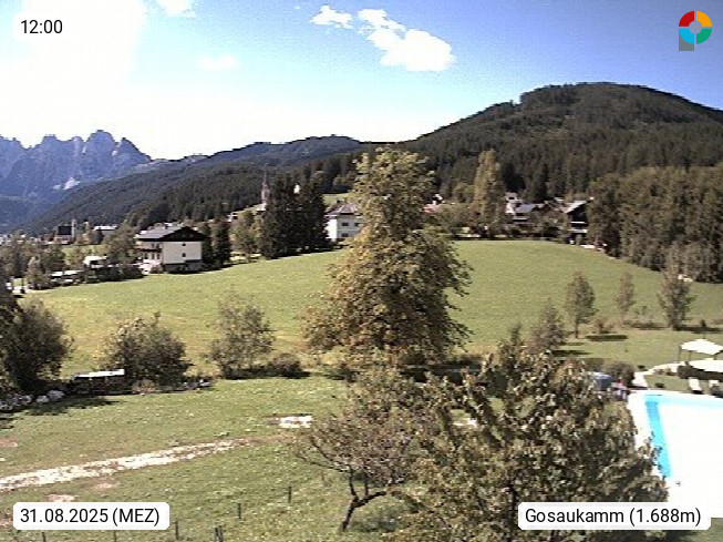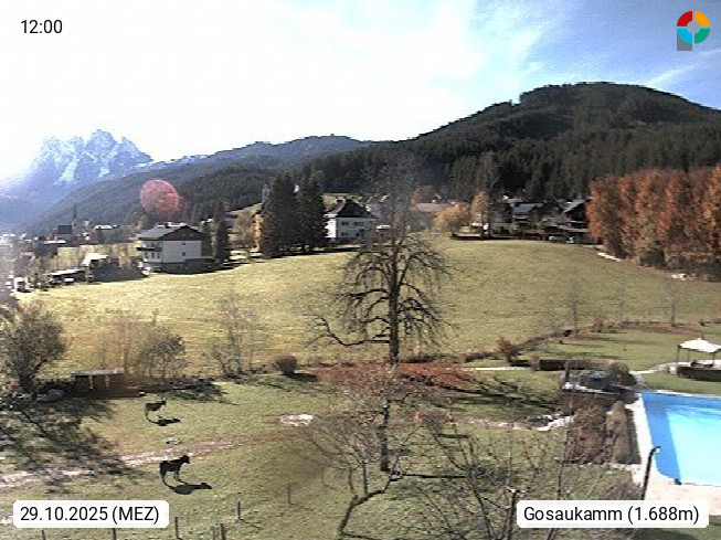 A 4824 Gosau Gosau 767m, im Bezirk Gmunden im Traunviertel, Blick Richtung Süden zum Gosaukamm, mit seinem schroffen Felsgrat mit Höhen über 2.000 Meter, eine unverwechselbare Kulisse an der Grenze zwischen den Bundesländern Salzburg und Oberösterreich. Presented by https://www.hotel-koller.com.
