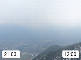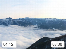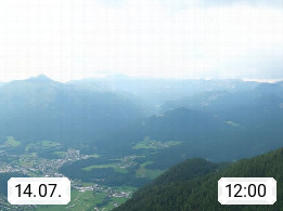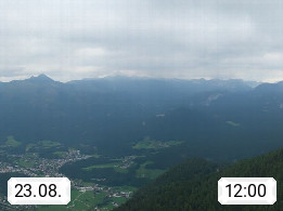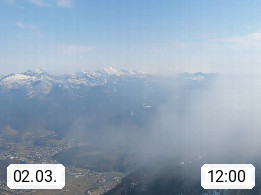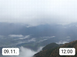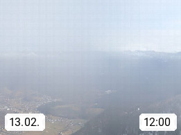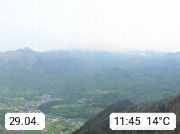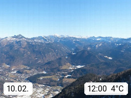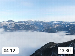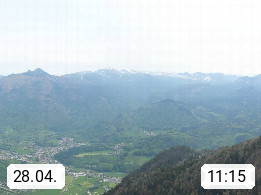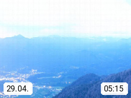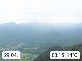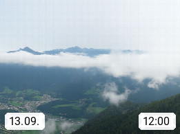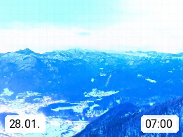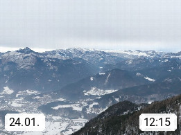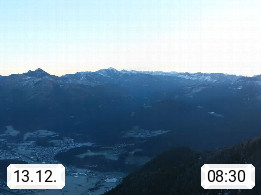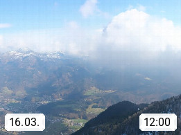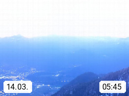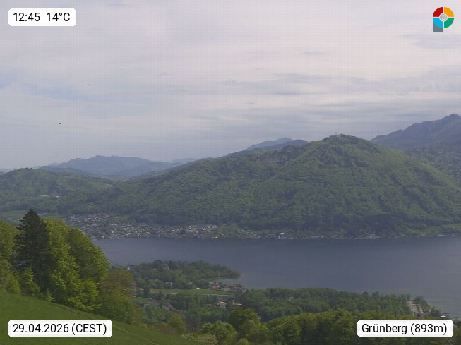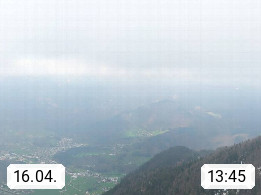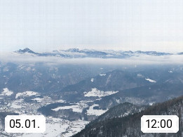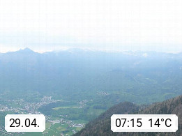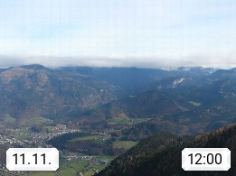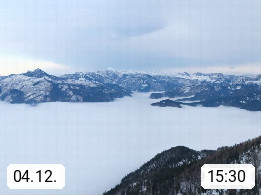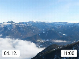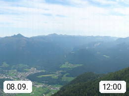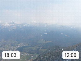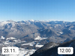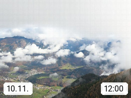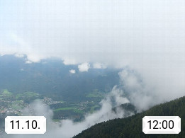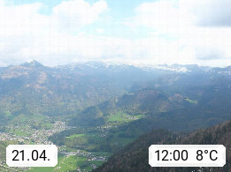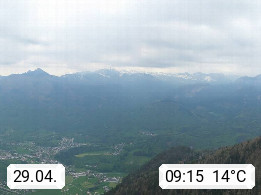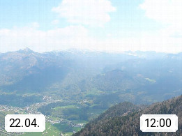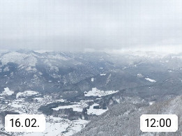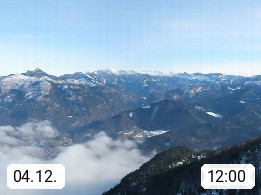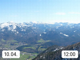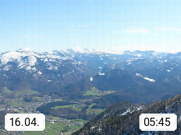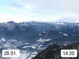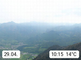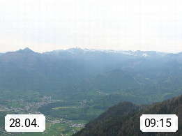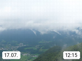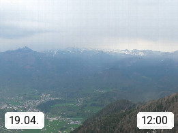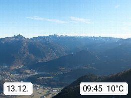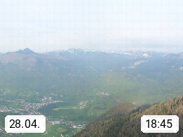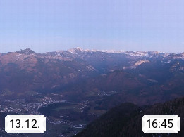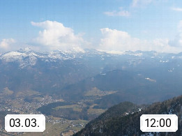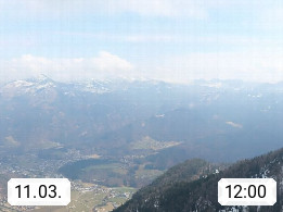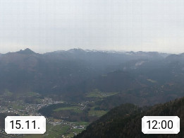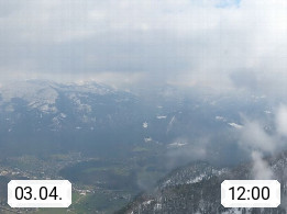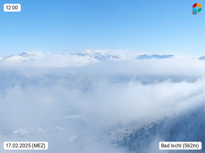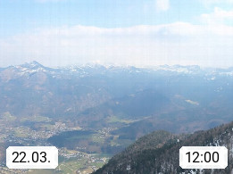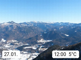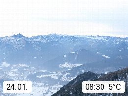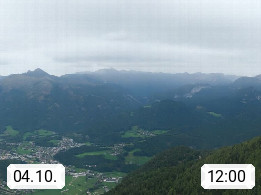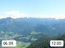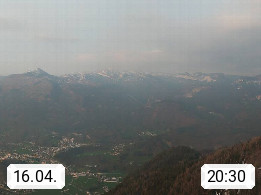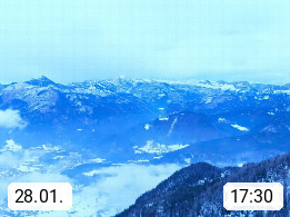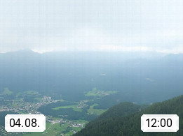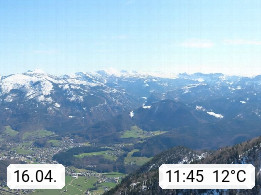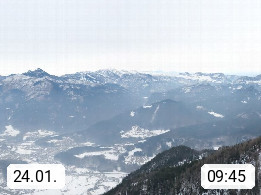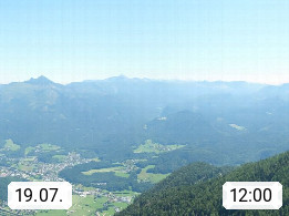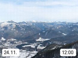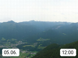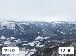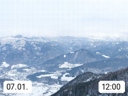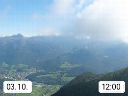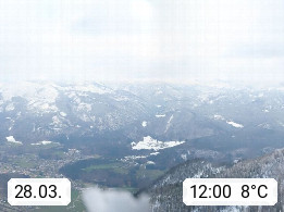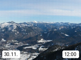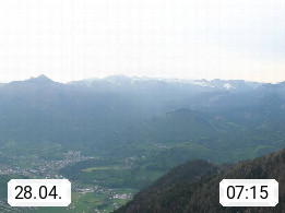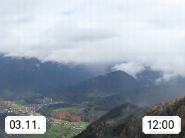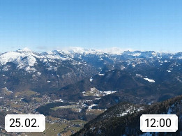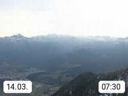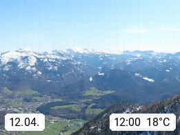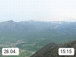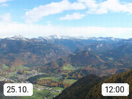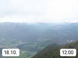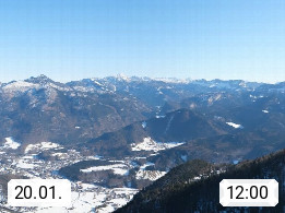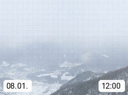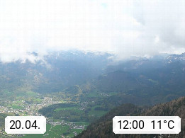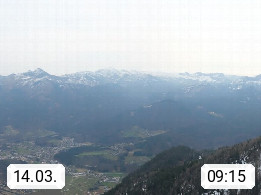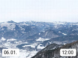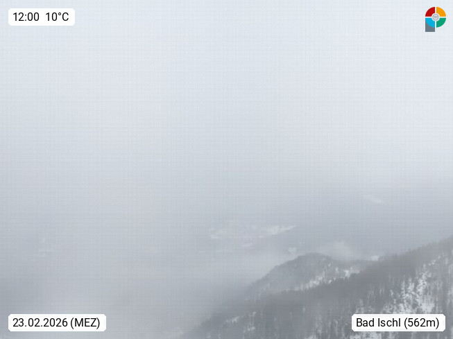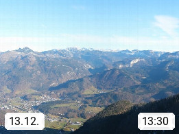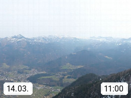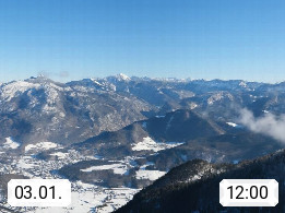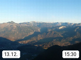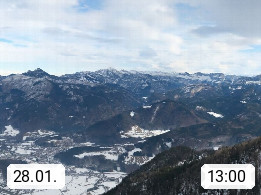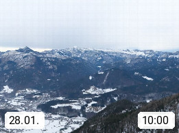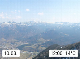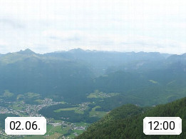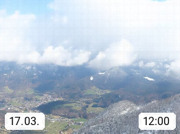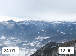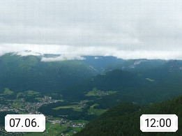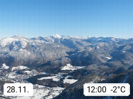 A 4820 Bad Ischl 468m, Kurort im Zentrum des Salzkammergutes an der Traun im Süden Oberösterreichs. Panoramablick von der Bergstation der Katrinseilbahn 1.418m über die Kaiserstadt Bad Ischl Richtung Norden. Links der Höllkogel 1.862m, Mitte der Traunstein 1.691m und Traunsee, rechts die Hohe Schrott 1.839m. Präsentiert von https://badischl.salzkammergut.at.