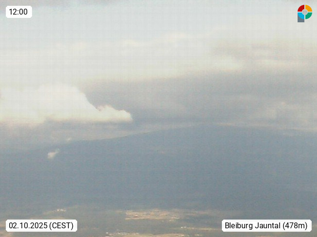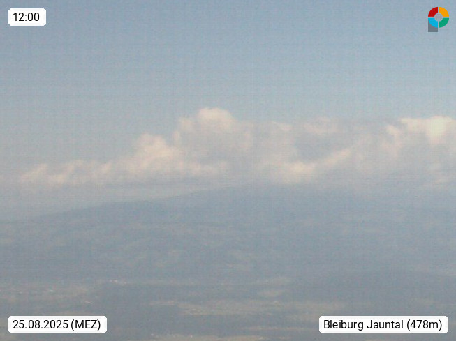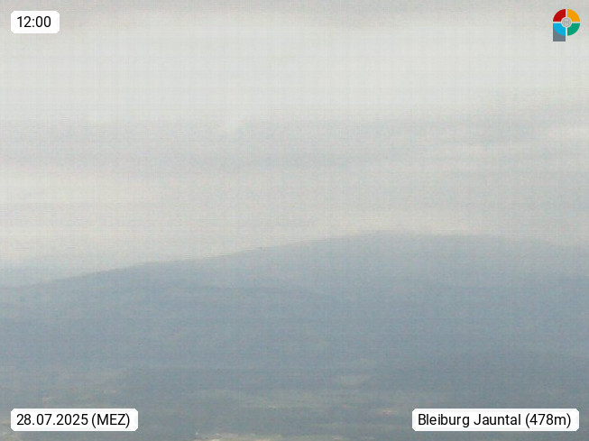 A 9150 Bleiburg slow. Pliberk 479m, Stadt im Bezirk Völkermarkt im Jauntal am Fuße der Petzen slow. Peca 2.126m. Panoramablick von der Bergstation der Petzen Seilbahn in 1.700m Richtung Norden über die Stadt Bleiburg und das Jauntal. Im Hintergrund sieht man die Saualpe, Mittelgebirgszug verlaufend vom Klippitztörl bis zum Drautal. Präsentiert von https://www.kelag.at.
