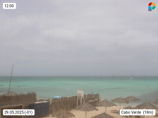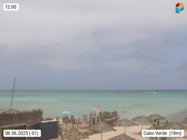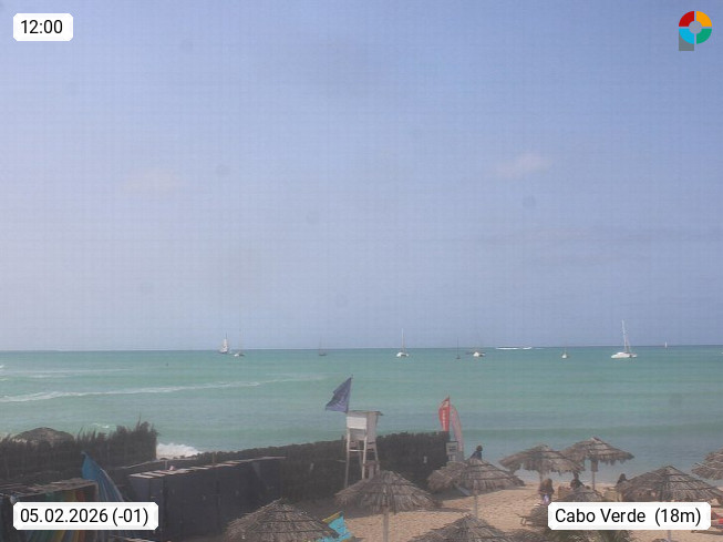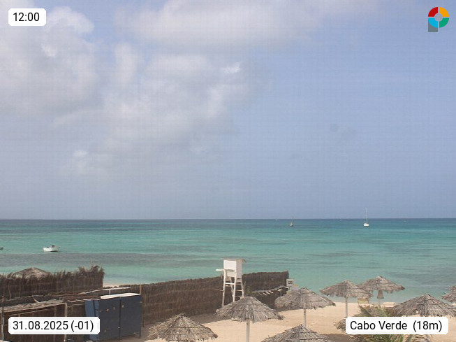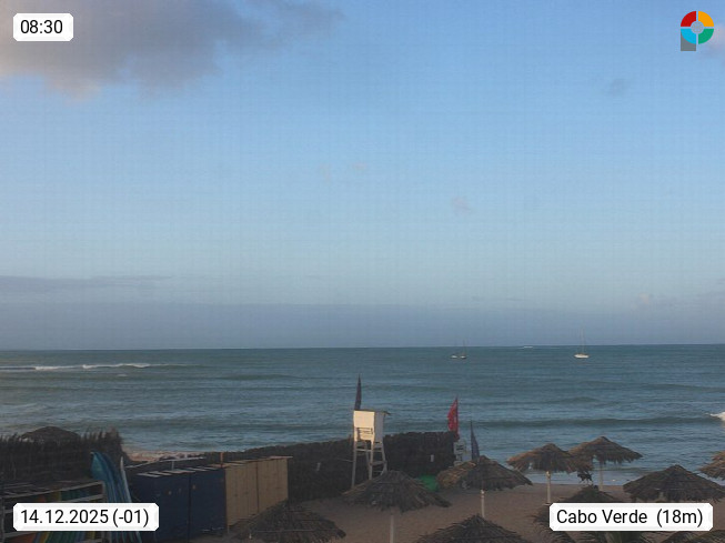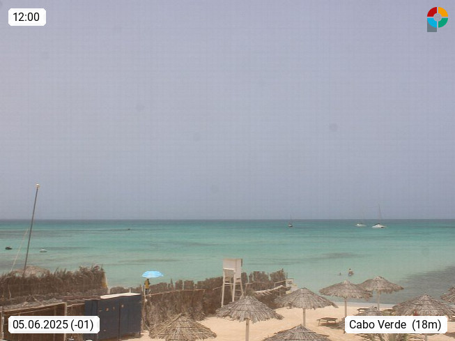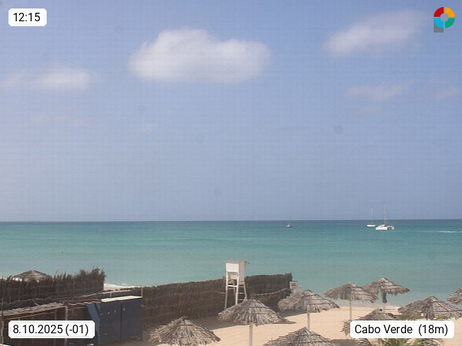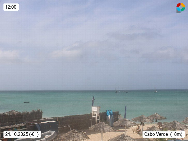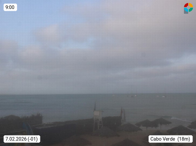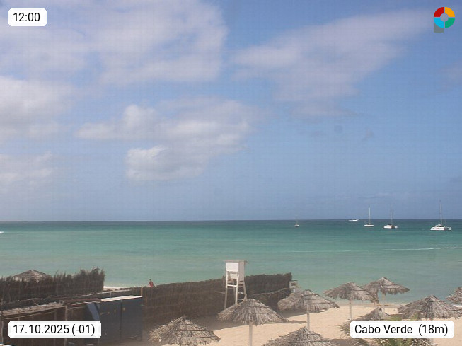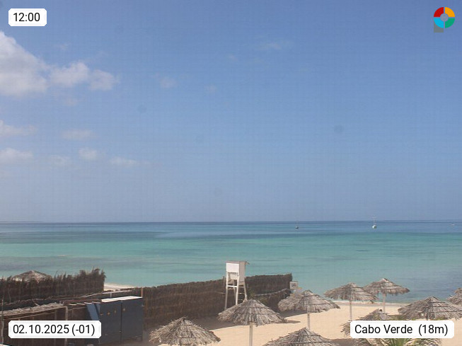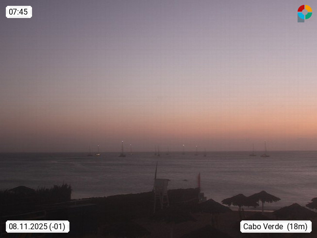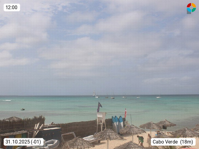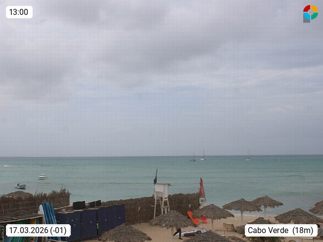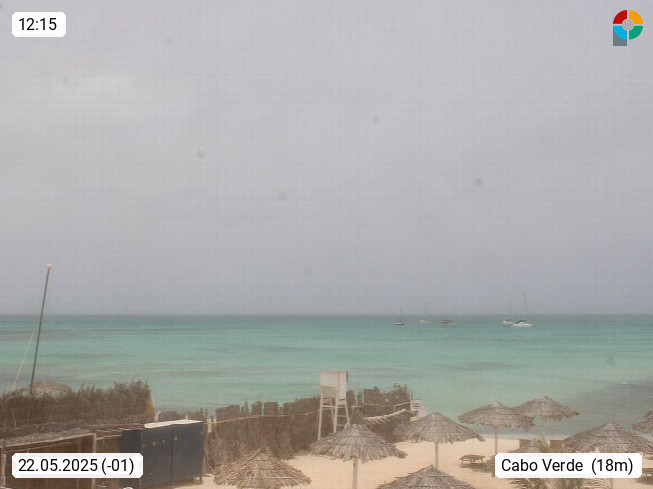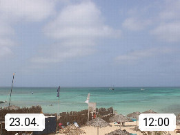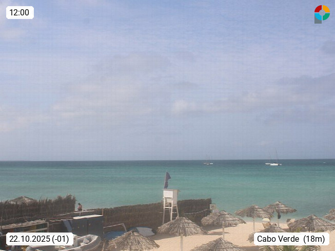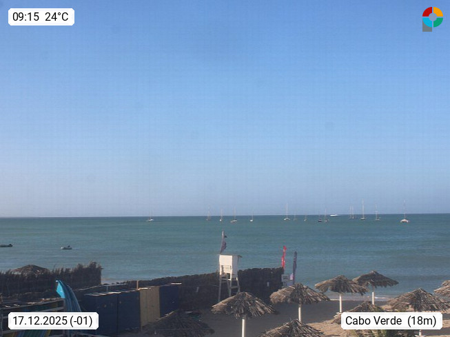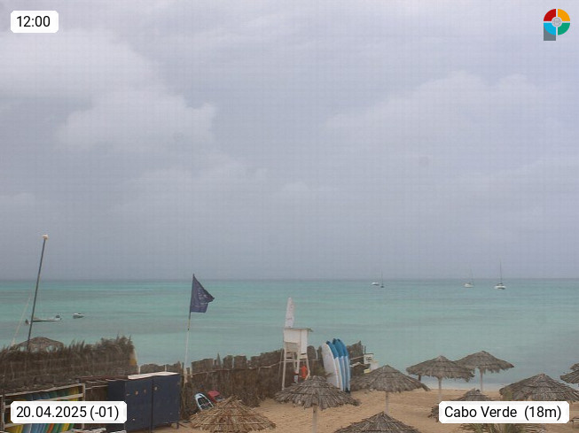 Kap Verde (Cabo Verde), Kapverden, Kapverdische Inseln, ist ein afrikanischer Inselstaat mit insgesamt 15 Inseln, 460 Kilometer vor der Westküste Afrikas. Die Inseln werden unterschieden zwischen den Inseln über dem Wind (Barlavento) und unter dem Wind (Sotavento). Blick über den Strand bei Boa Vista, auf der Insel Sal Richtung Westen. Präsentiert von https://www.addicted-sports.com.
