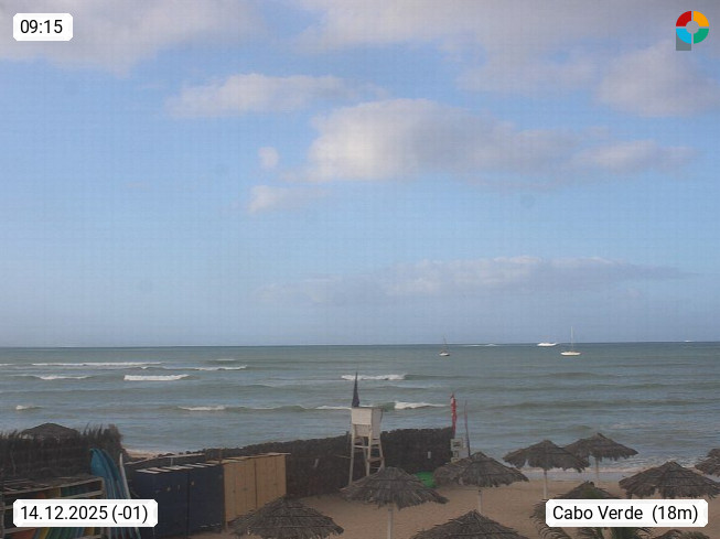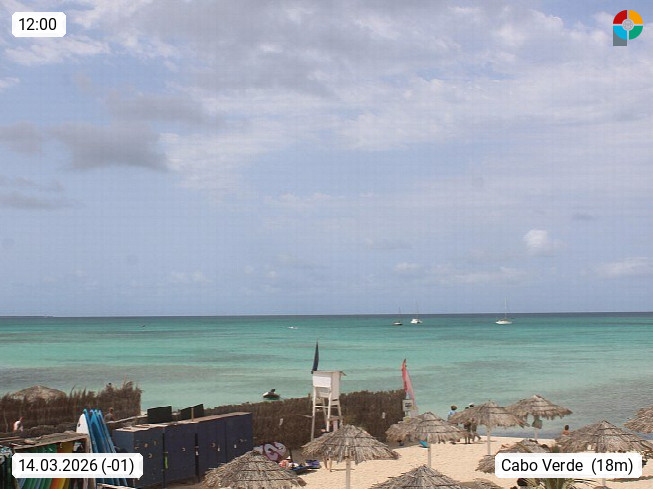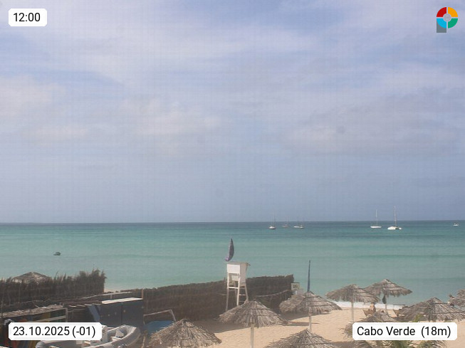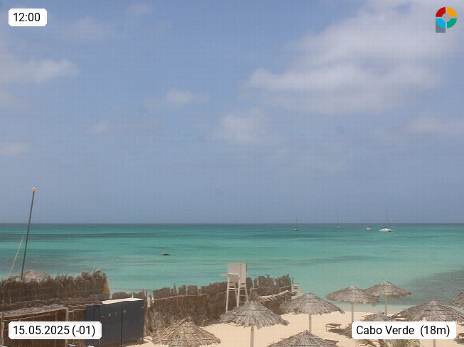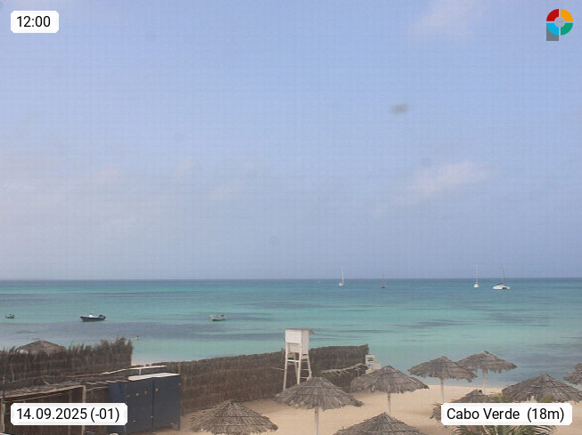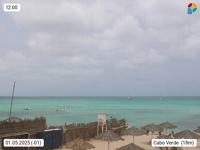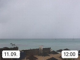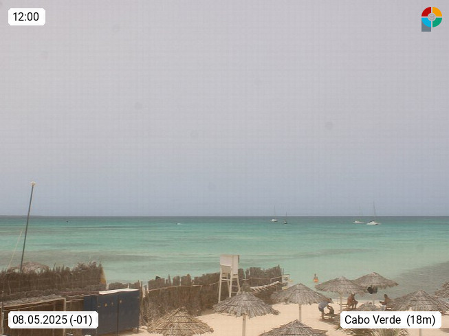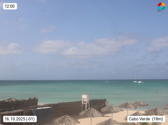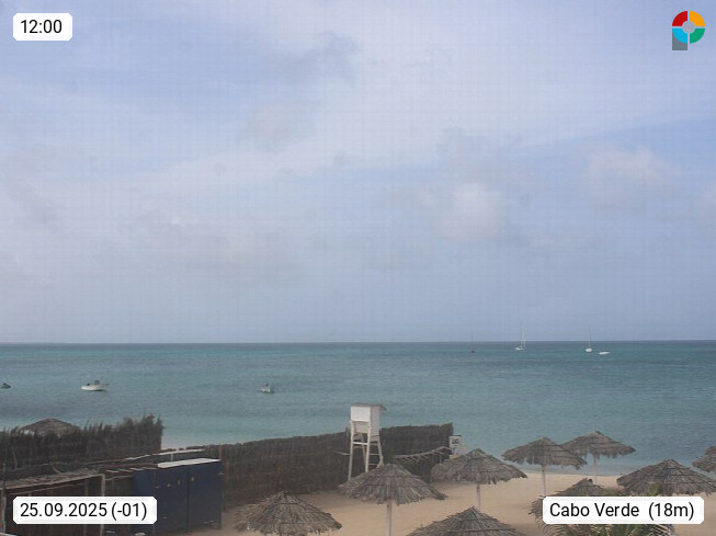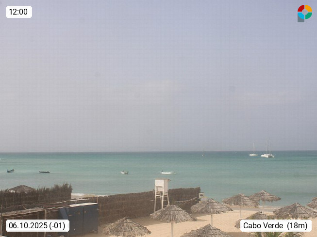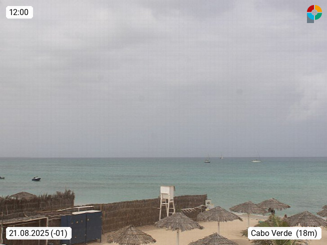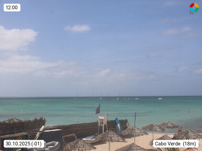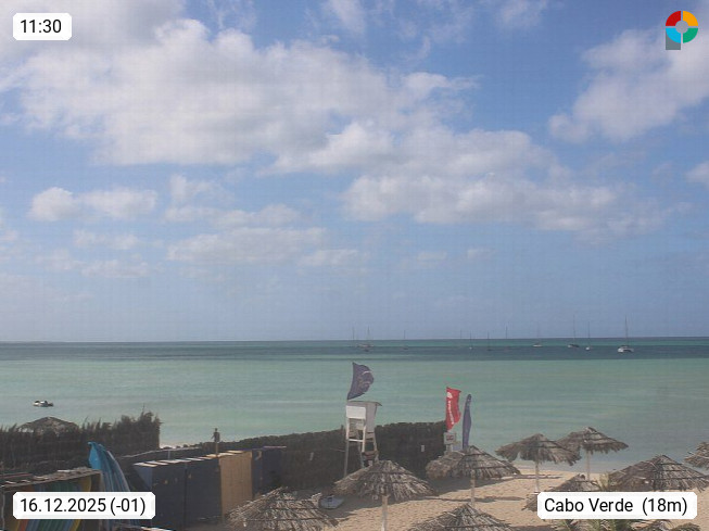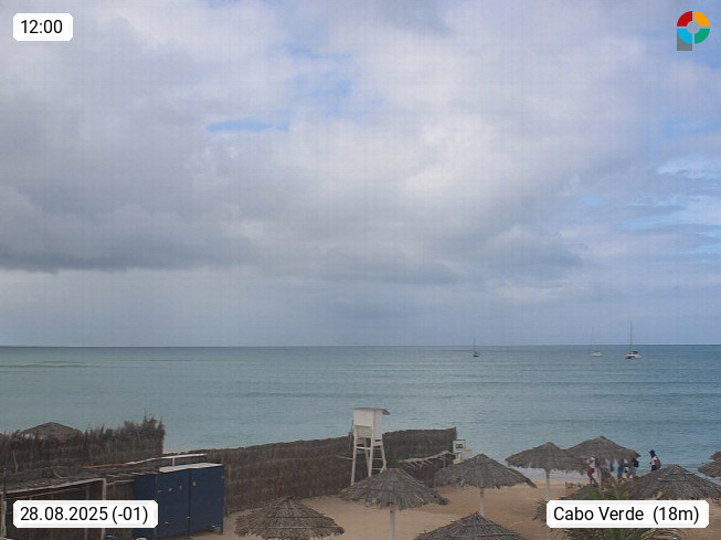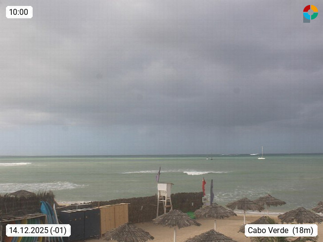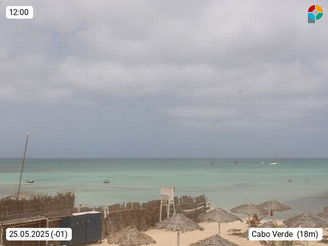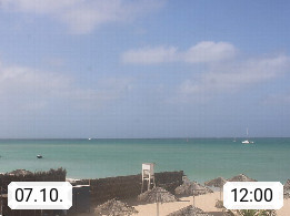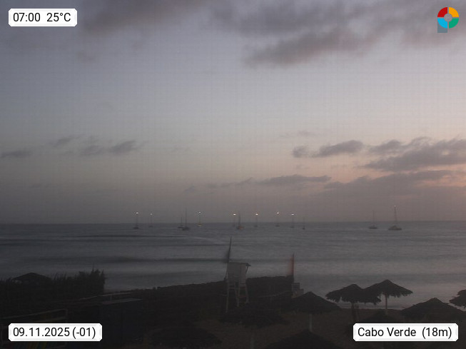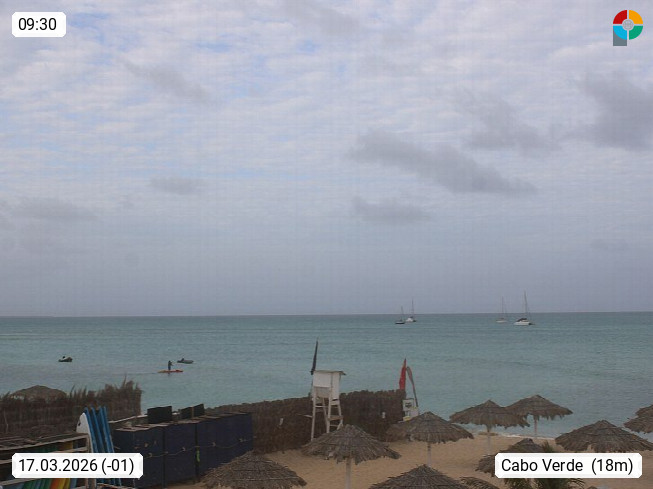 Kap Verde (Cabo Verde), Kapverden, Kapverdische Inseln, ist ein afrikanischer Inselstaat mit insgesamt 15 Inseln, 460 Kilometer vor der Westküste Afrikas. Die Inseln werden unterschieden zwischen den Inseln über dem Wind (Barlavento) und unter dem Wind (Sotavento). Blick über den Strand bei Boa Vista, auf der Insel Sal Richtung Westen. Präsentiert von https://www.addicted-sports.com.