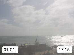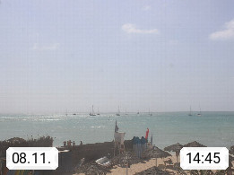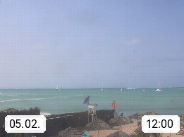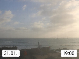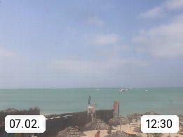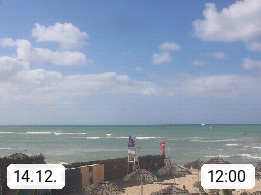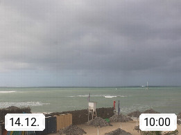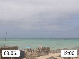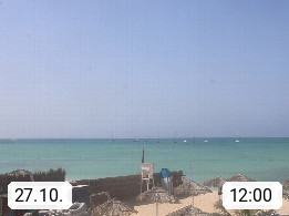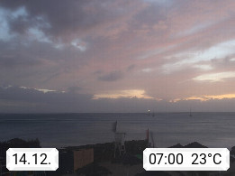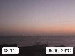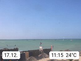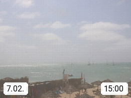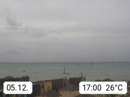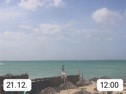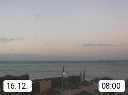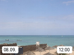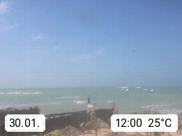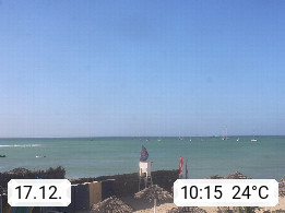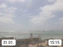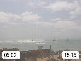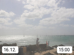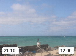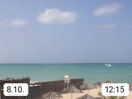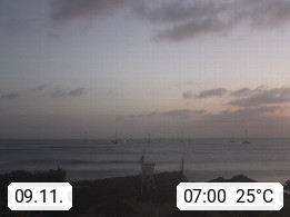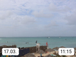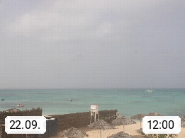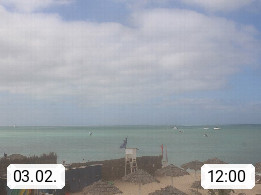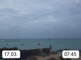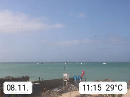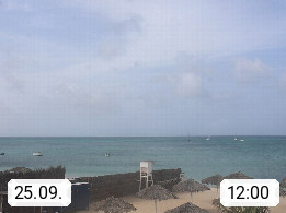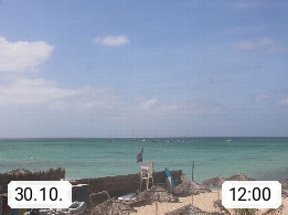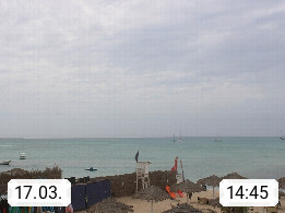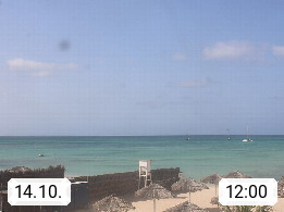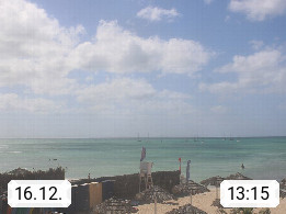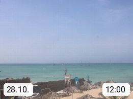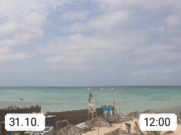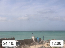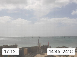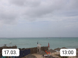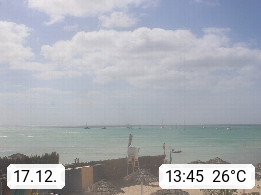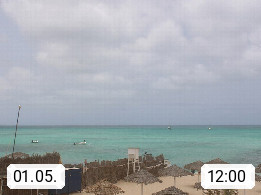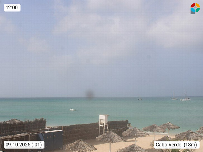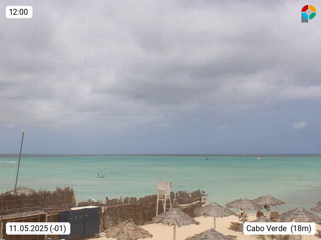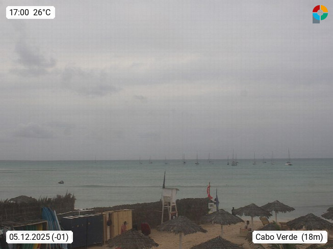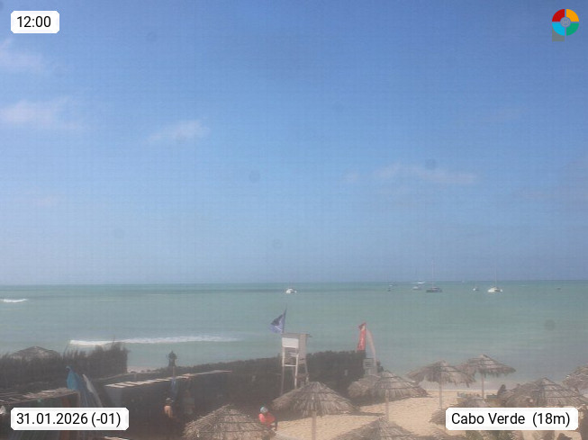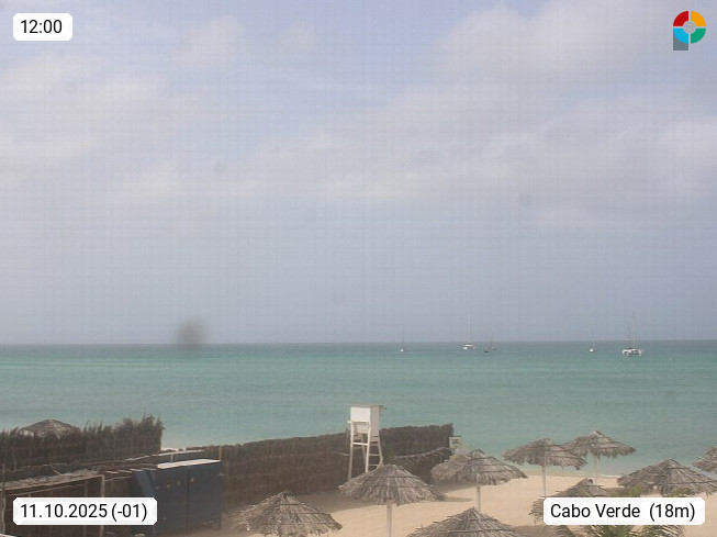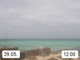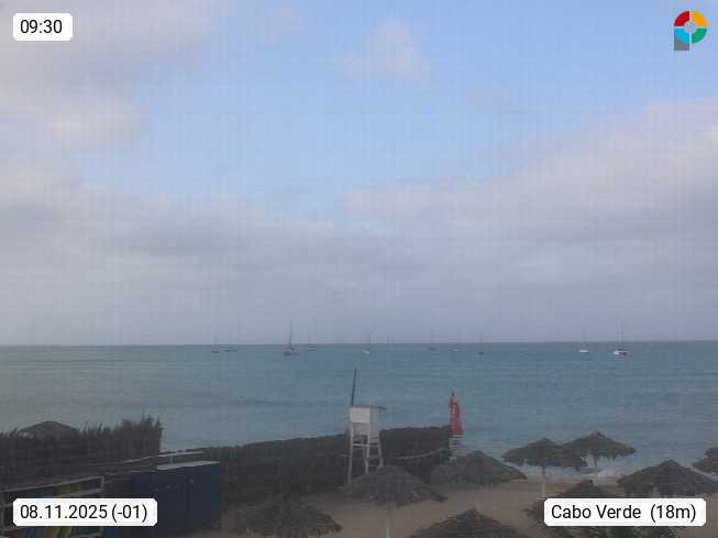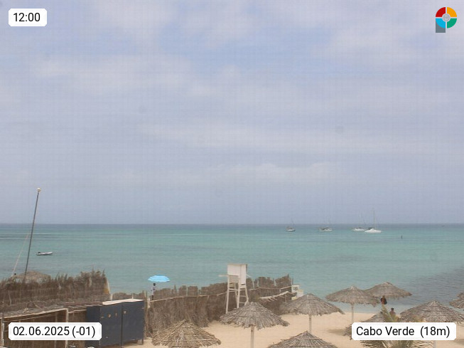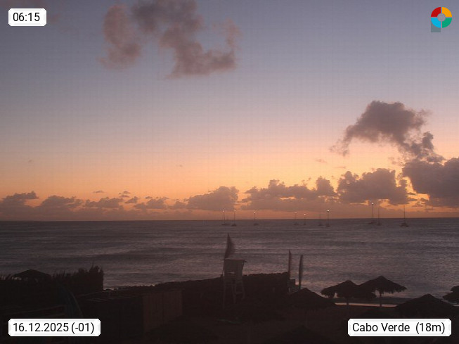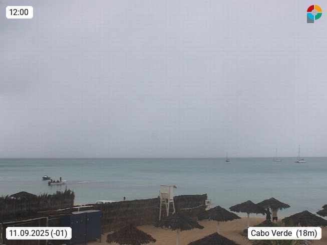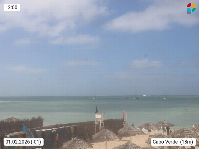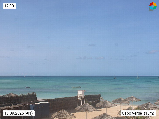 Kap Verde (Cabo Verde), Kapverden, Kapverdische Inseln, ist ein afrikanischer Inselstaat mit insgesamt 15 Inseln, 460 Kilometer vor der Westküste Afrikas. Die Inseln werden unterschieden zwischen den Inseln über dem Wind (Barlavento) und unter dem Wind (Sotavento). Blick über den Strand bei Boa Vista, auf der Insel Sal Richtung Westen. Präsentiert von https://www.addicted-sports.com.