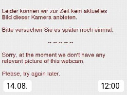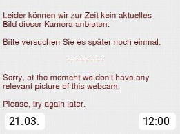Mit diesem Code können Sie diesen Webcambaustein ganz einfach in Ihre Website einbauen. Klicken Sie dazu auf den Code, kopieren Sie diesen und fügen ihn anschließend ih Ihre Website ein. Der Baustein bietet die gleichen Funktionen, die auch auf panoramablick.com zu sehen sind: Livebild, Tagesverlauf und Archivbilder.