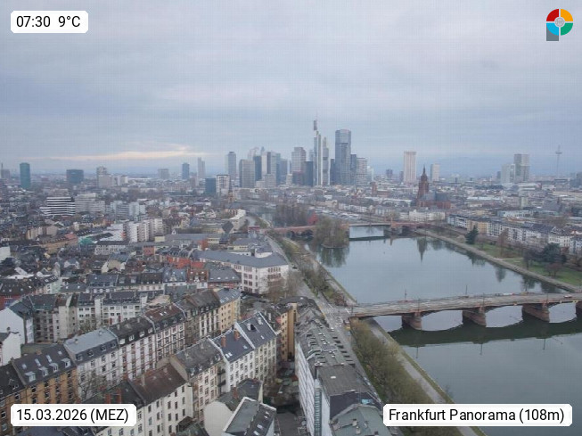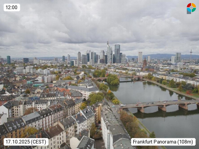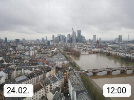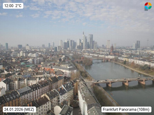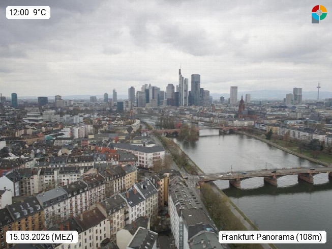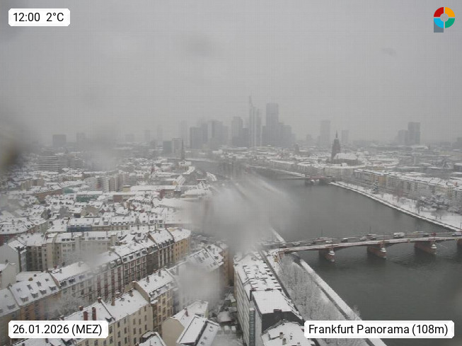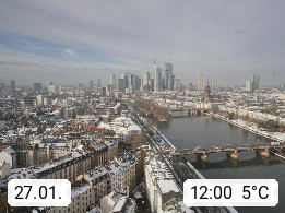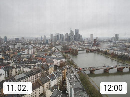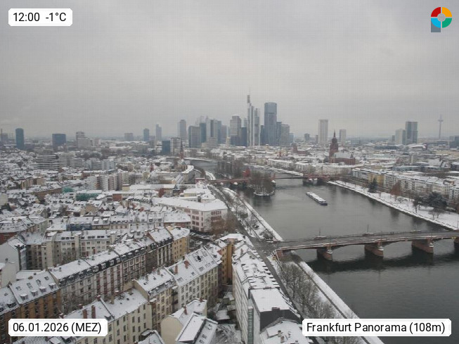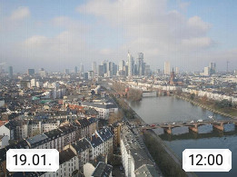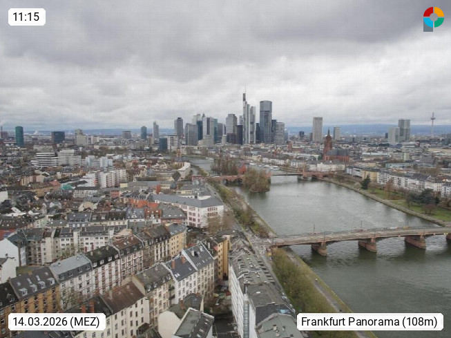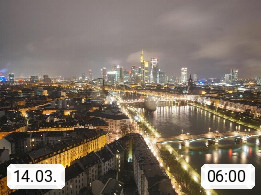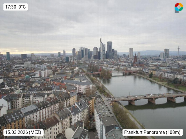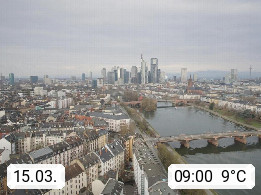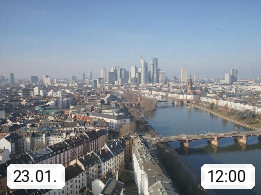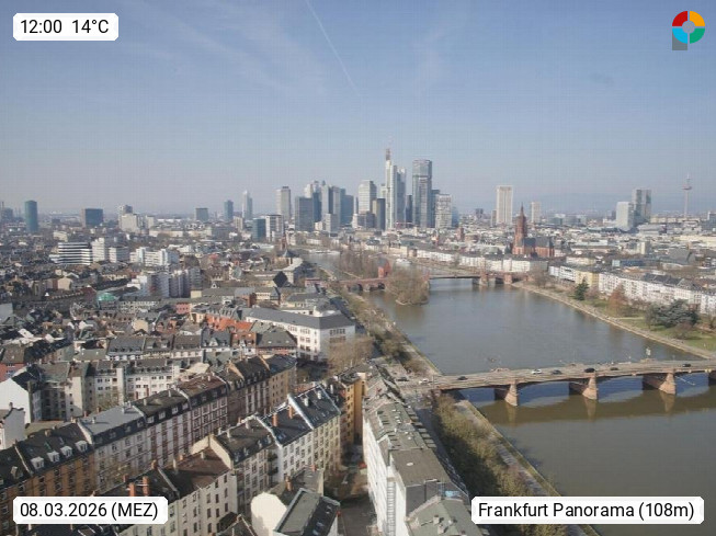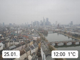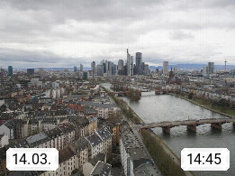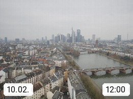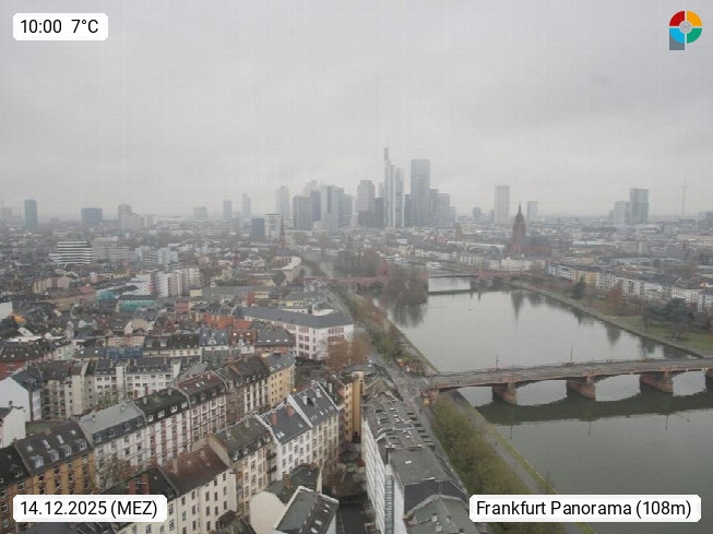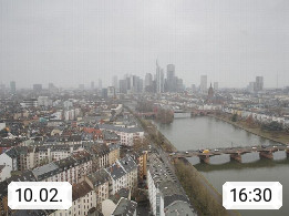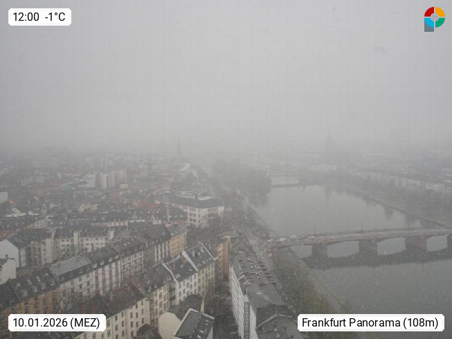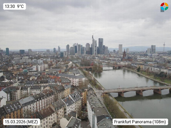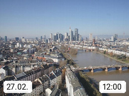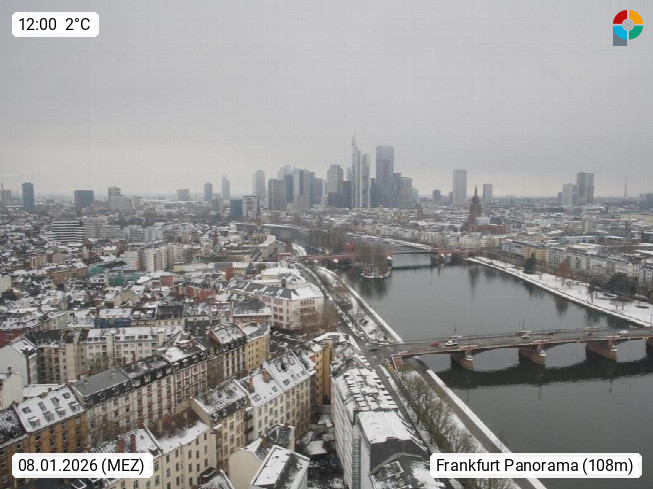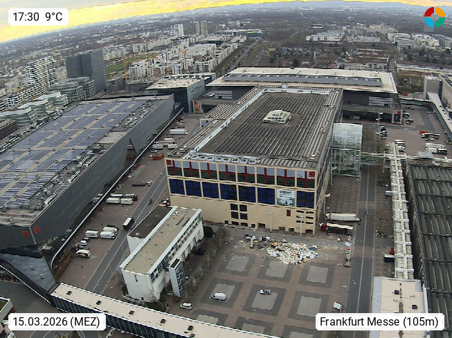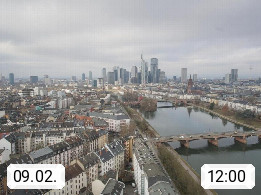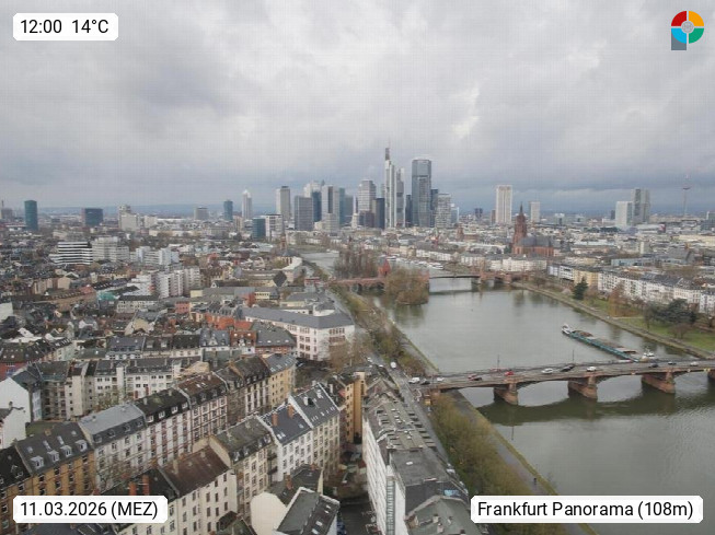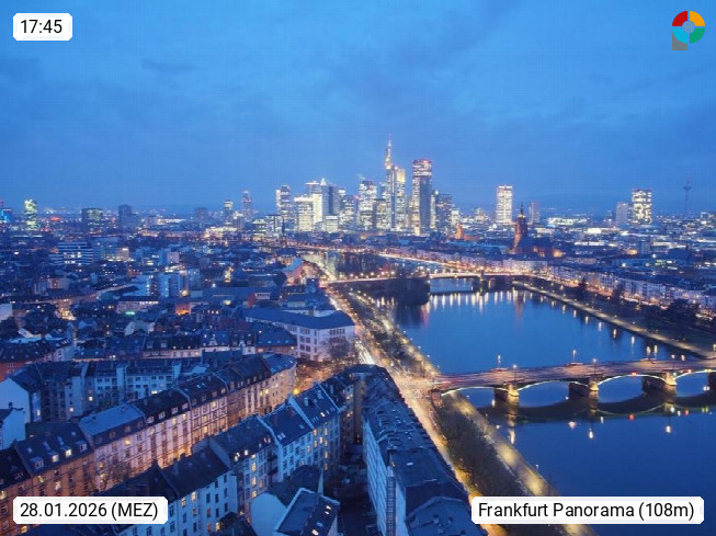D 60327 Frankfurt am Main 112m, größte Stadt Hessens und eine der reichsten Großstädte Europas sowie Banken, Literatur und Kulturmetropole. Die Stadt liegt auf beiden Seiten des Untermains südöstlich des Taunus und ist Geburtsort von Johann Wolfgang von Goethe. Panoramablick vom Dach des Torhauses des Messezentrums Richtung Süden zu den Bürohäusern der Bankenmetropole Frankfurt am Main. Präsentiert von https://www.bergfex.de/.