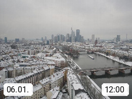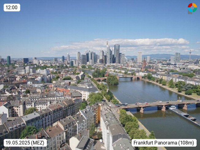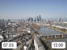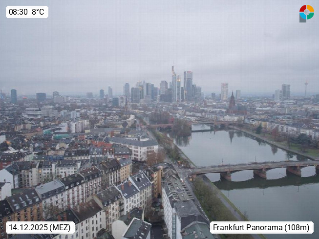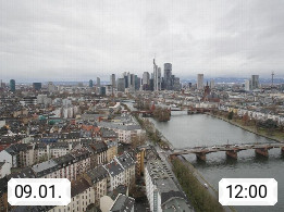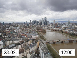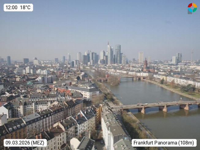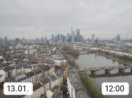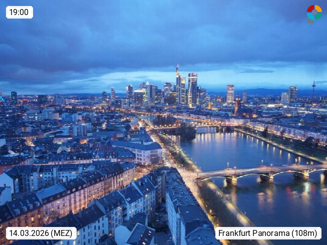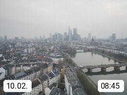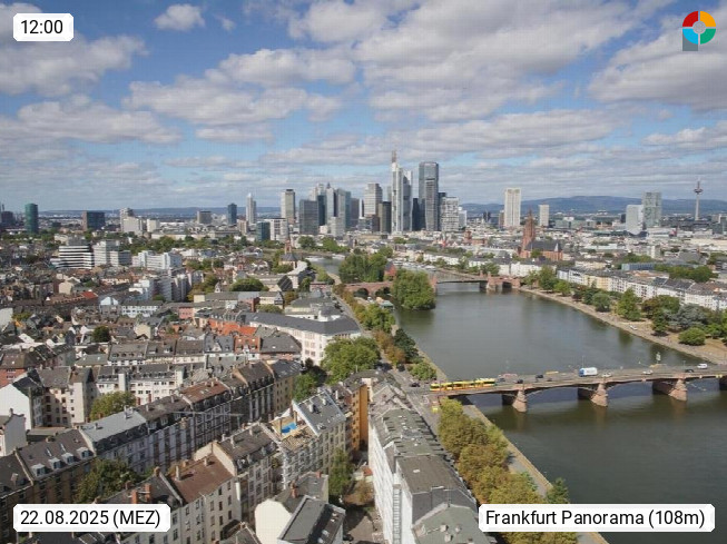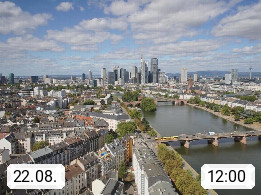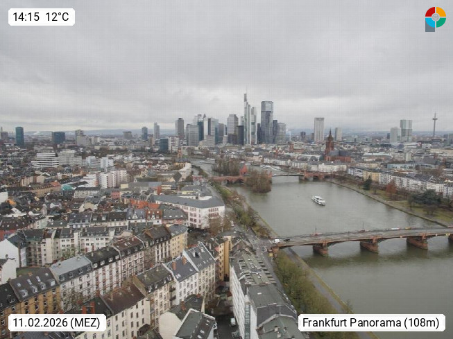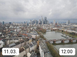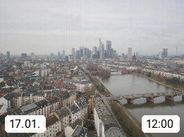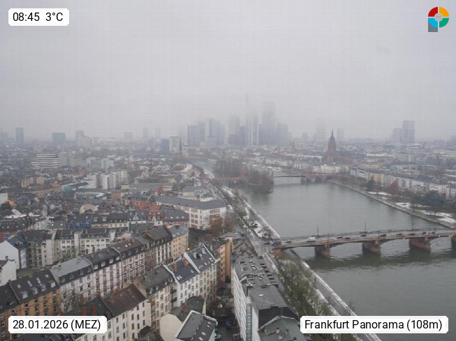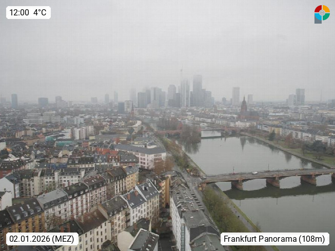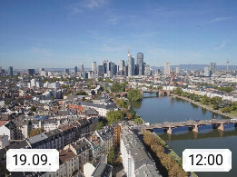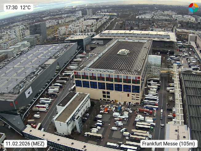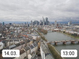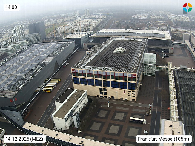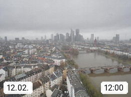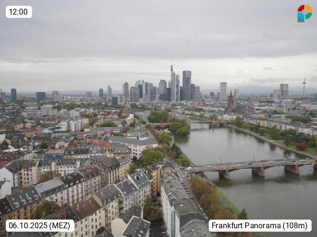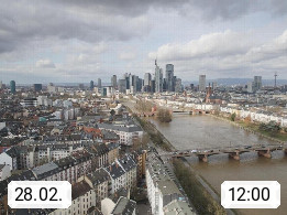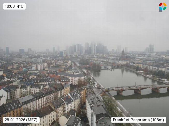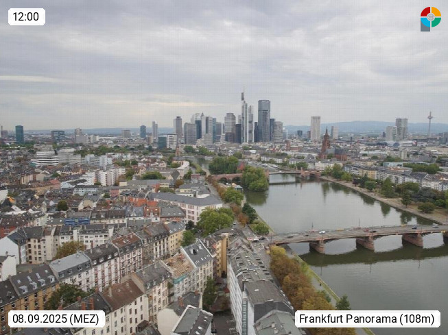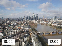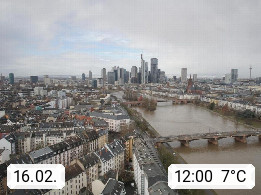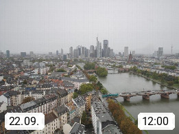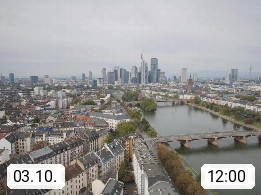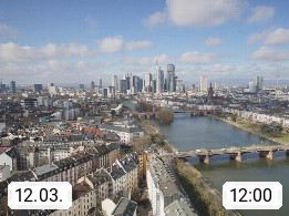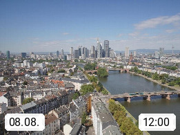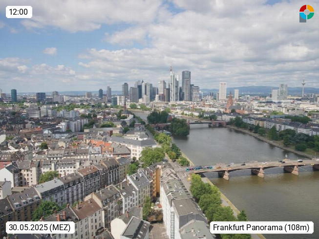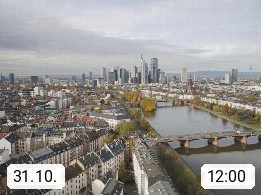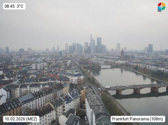 D 60327 Frankfurt am Main 112m, größte Stadt Hessens und eine der reichsten Großstädte Europas sowie Banken, Literatur und Kulturmetropole. Die Stadt liegt auf beiden Seiten des Untermains südöstlich des Taunus und ist Geburtsort von Johann Wolfgang von Goethe. Panoramablick vom Dach des Torhauses des Messezentrums Richtung Süden zu den Bürohäusern der Bankenmetropole Frankfurt am Main. Präsentiert von https://www.bergfex.de/.