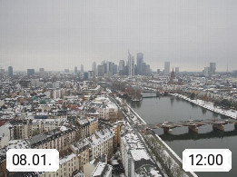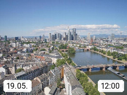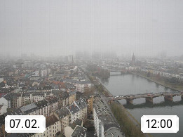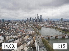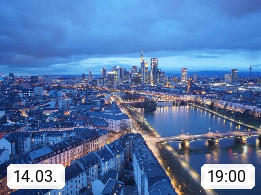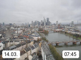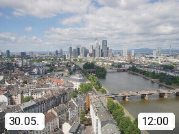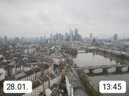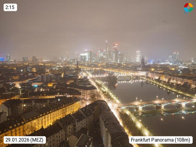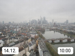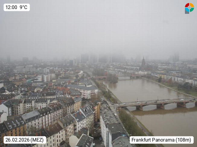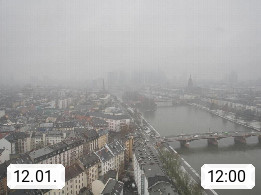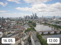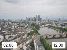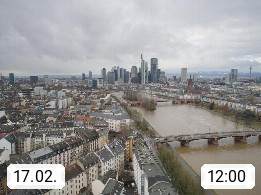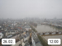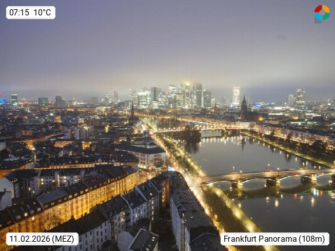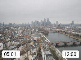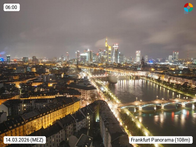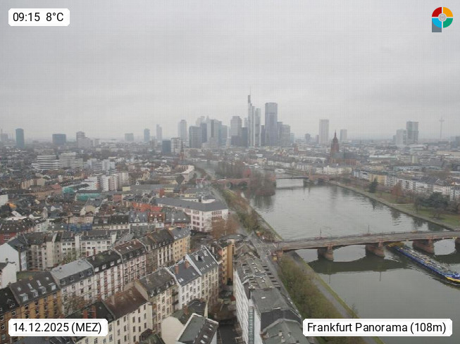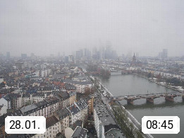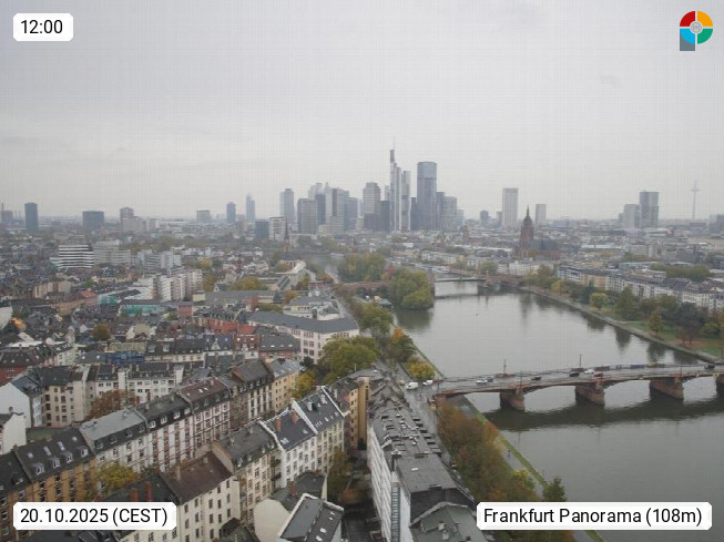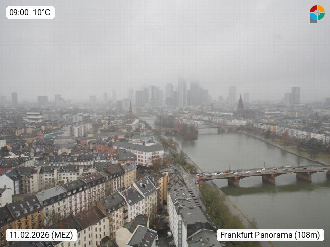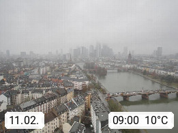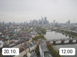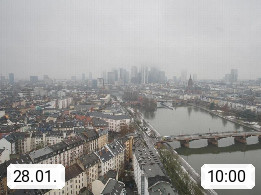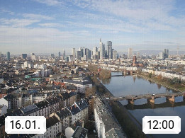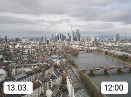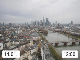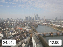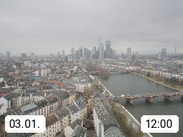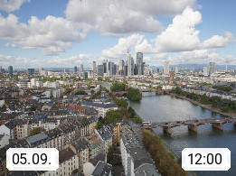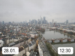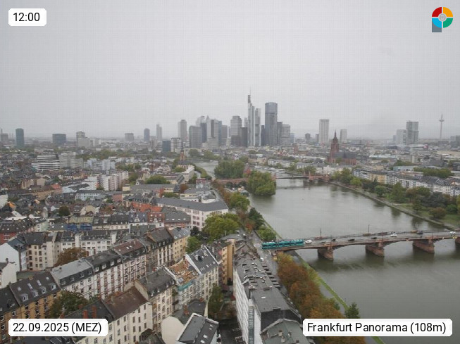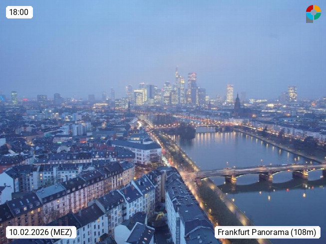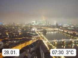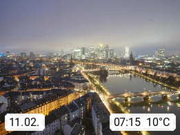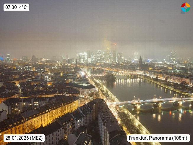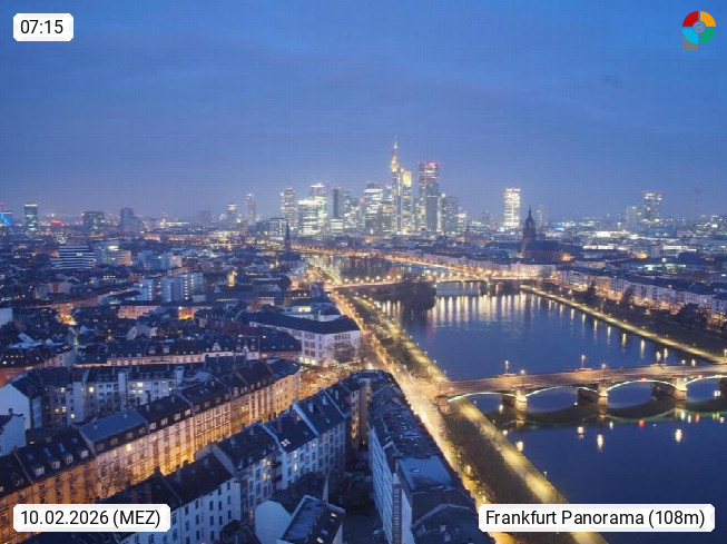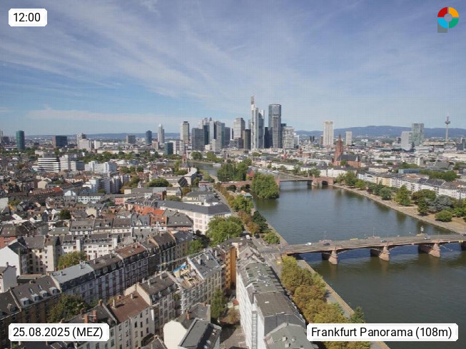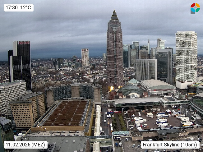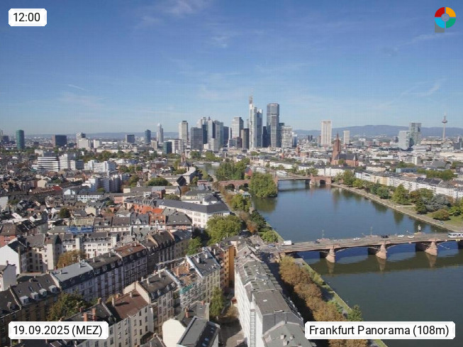 D 60327 Frankfurt am Main 112m, größte Stadt Hessens und eine der reichsten Großstädte Europas sowie Banken, Literatur und Kulturmetropole. Die Stadt liegt auf beiden Seiten des Untermains südöstlich des Taunus und ist Geburtsort von Johann Wolfgang von Goethe. Panoramablick vom Dach des Torhauses des Messezentrums Richtung Süden zu den Bürohäusern der Bankenmetropole Frankfurt am Main. Präsentiert von https://www.bergfex.de/.