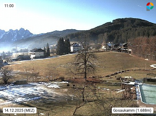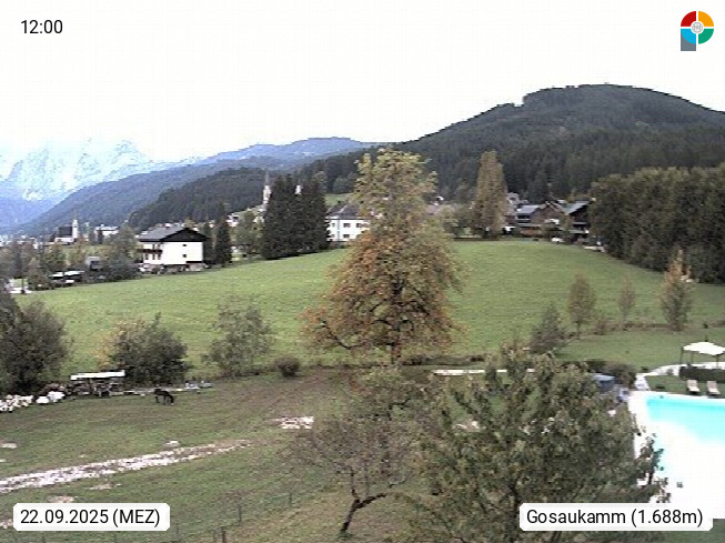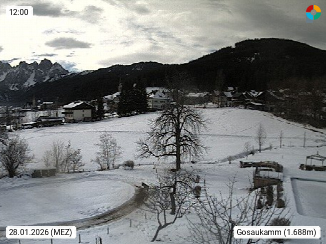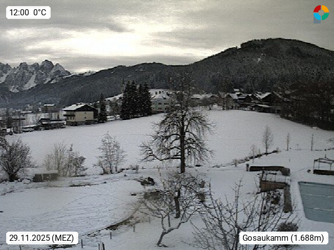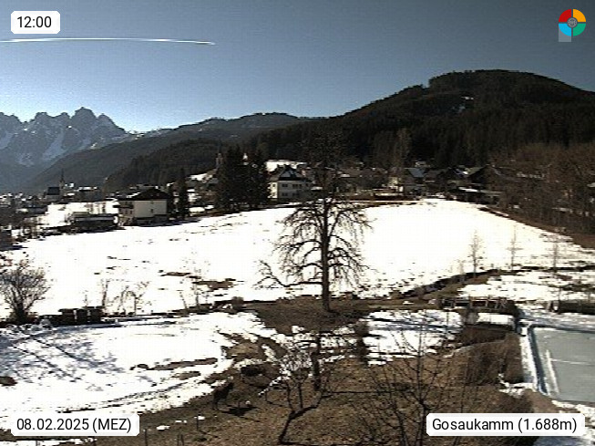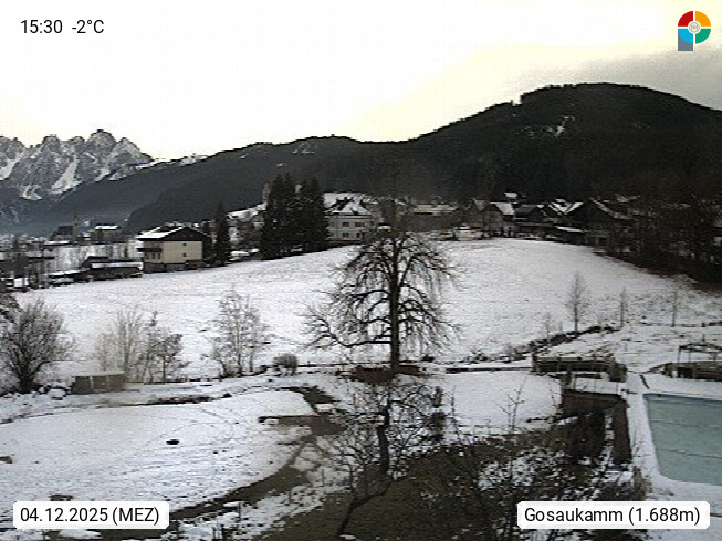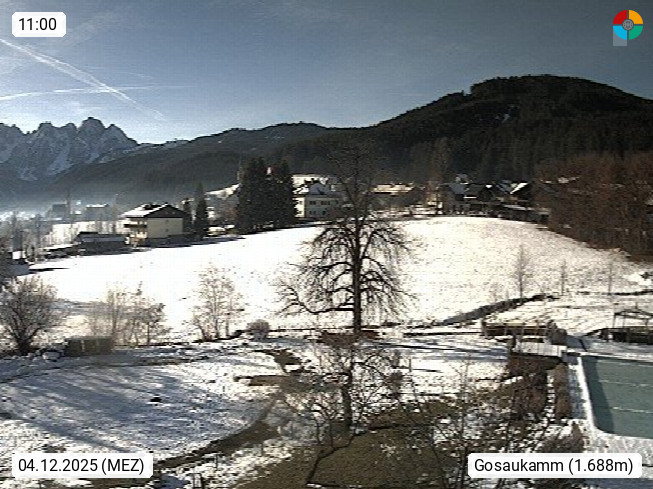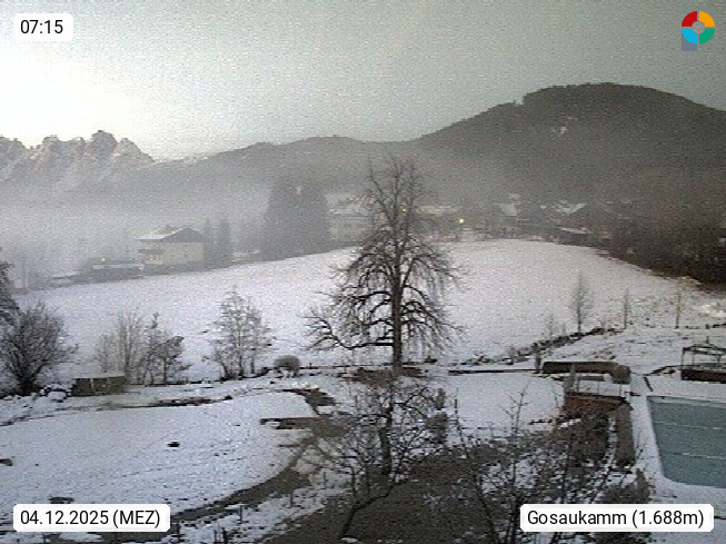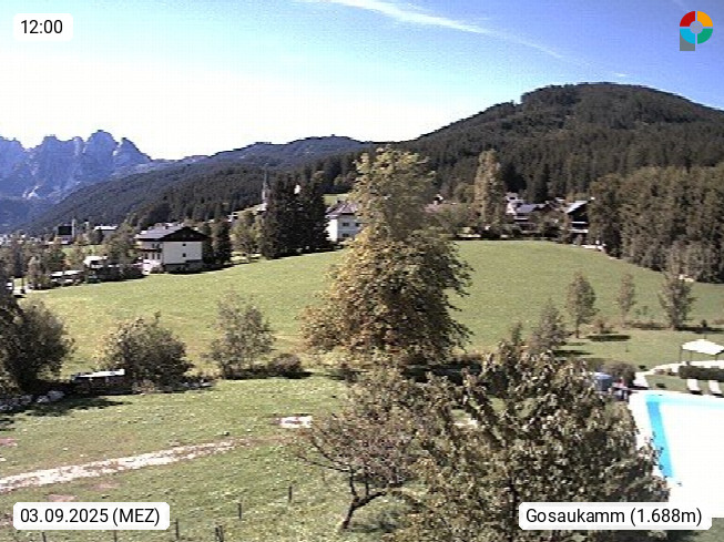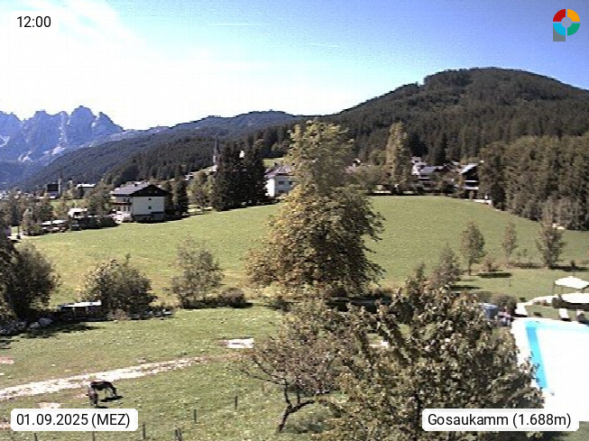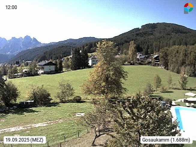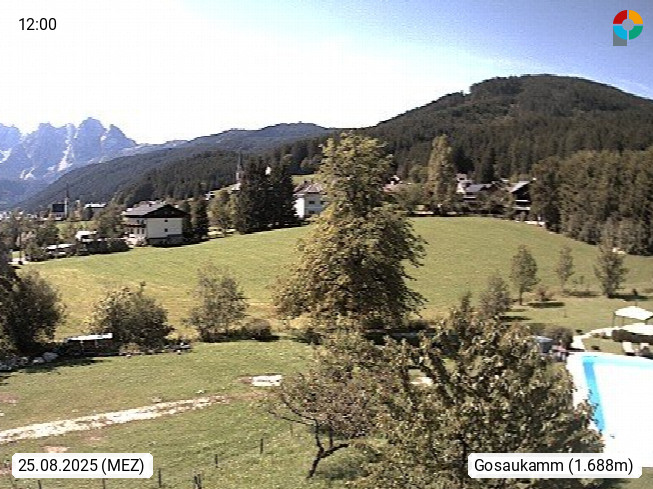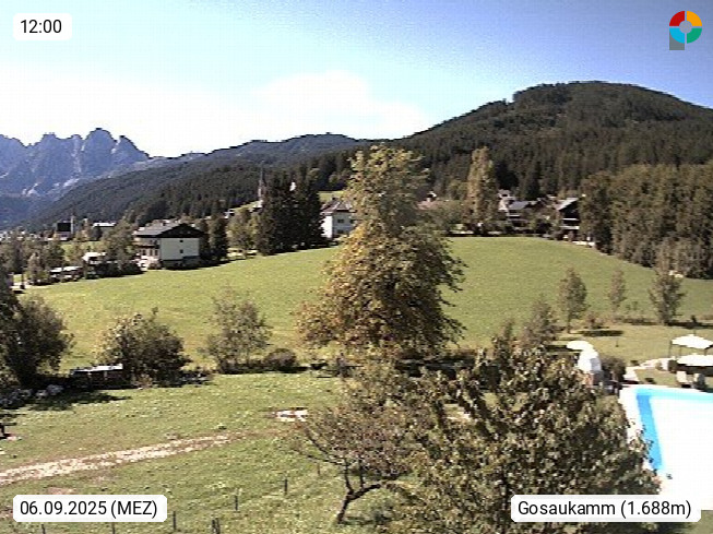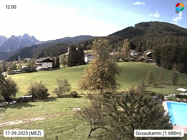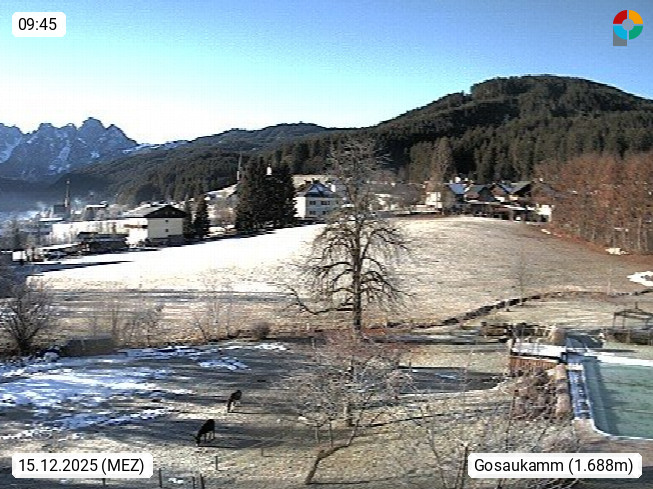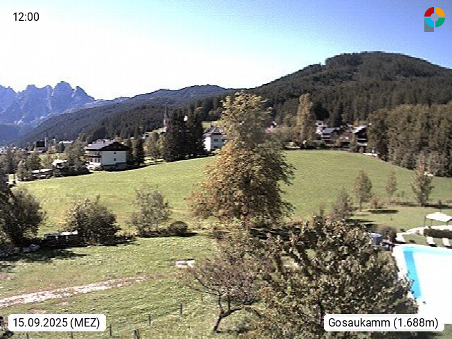 A 4824 Gosau Gosau 767m, im Bezirk Gmunden im Traunviertel, Blick Richtung Süden zum Gosaukamm, mit seinem schroffen Felsgrat mit Höhen über 2.000 Meter, eine unverwechselbare Kulisse an der Grenze zwischen den Bundesländern Salzburg und Oberösterreich. Präsentiert von https://www.hotel-koller.com.
