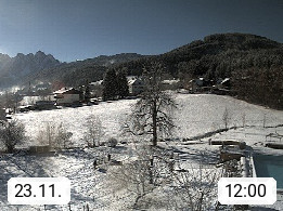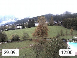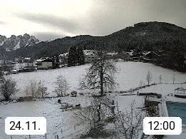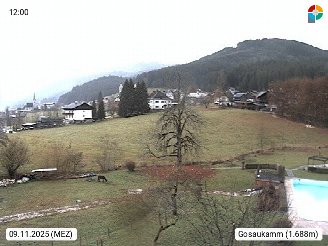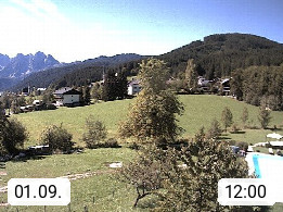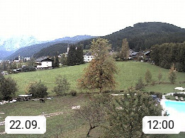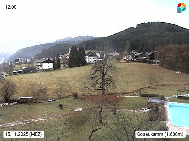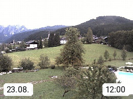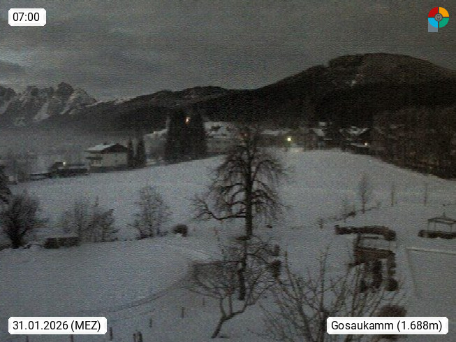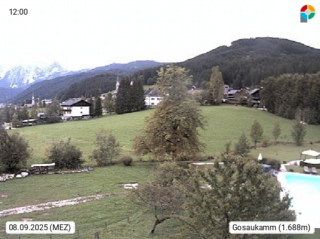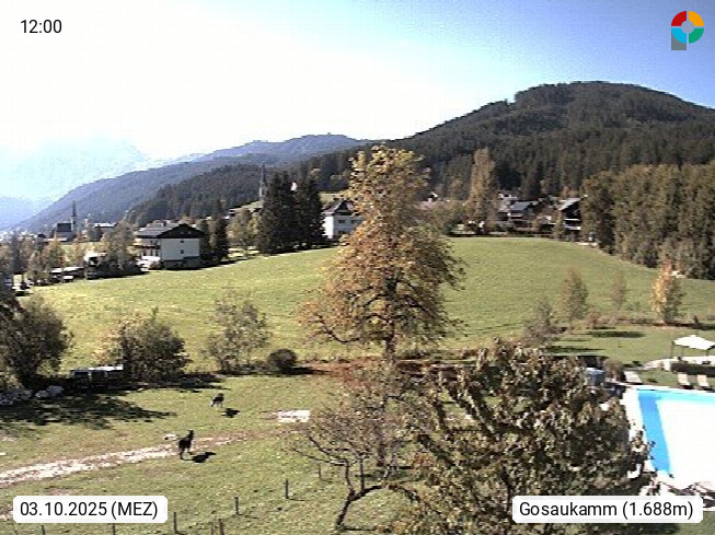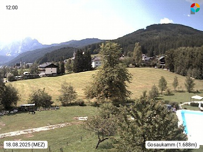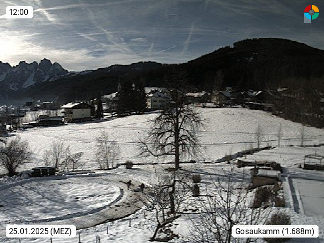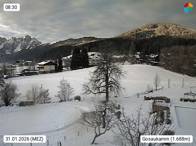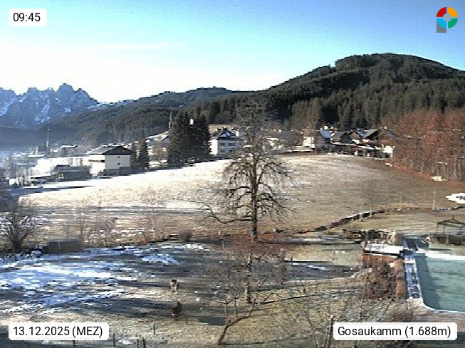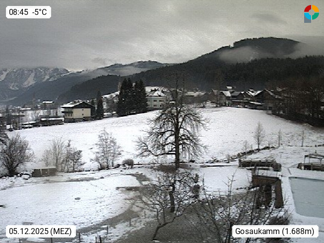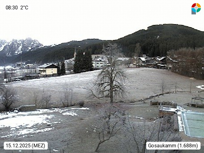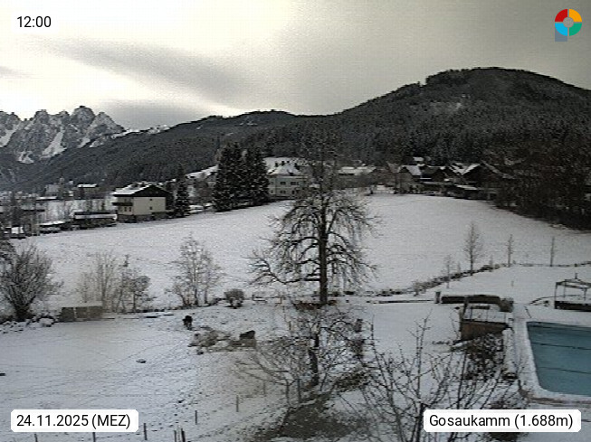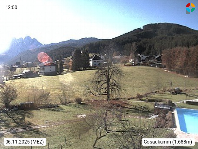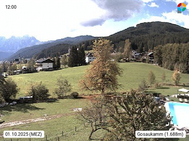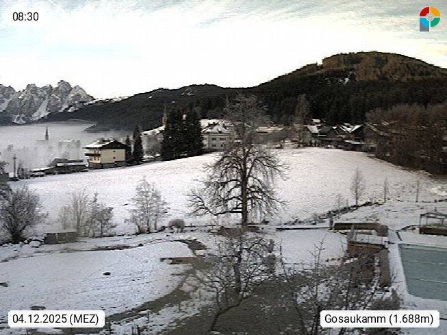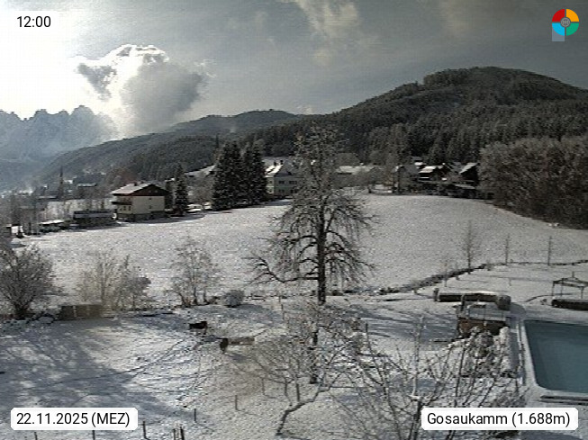 A 4824 Gosau Gosau 767m, im Bezirk Gmunden im Traunviertel, Blick Richtung Süden zum Gosaukamm, mit seinem schroffen Felsgrat mit Höhen über 2.000 Meter, eine unverwechselbare Kulisse an der Grenze zwischen den Bundesländern Salzburg und Oberösterreich. Präsentiert von https://www.hotel-koller.com.