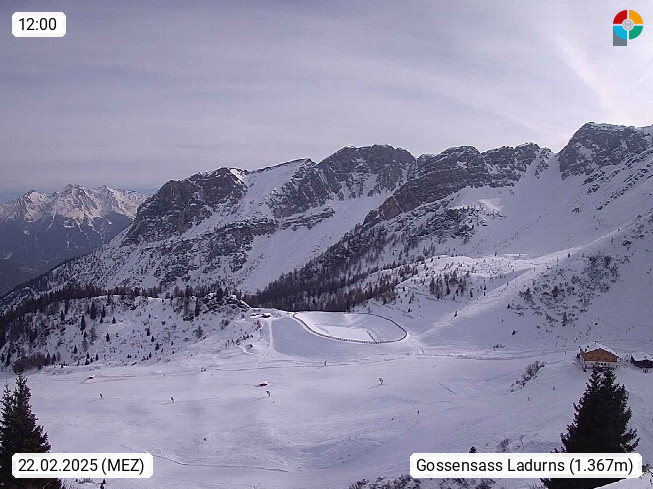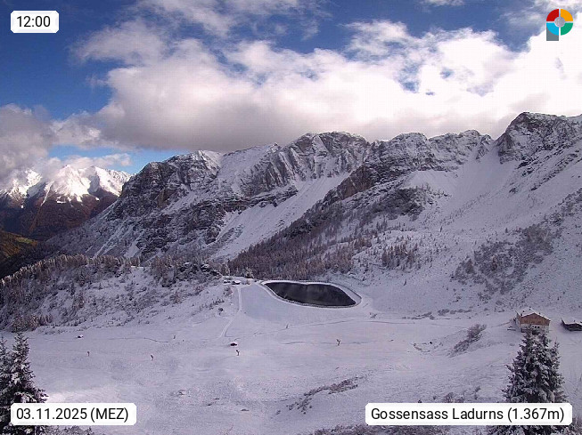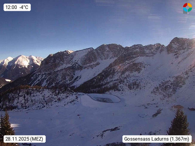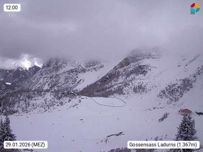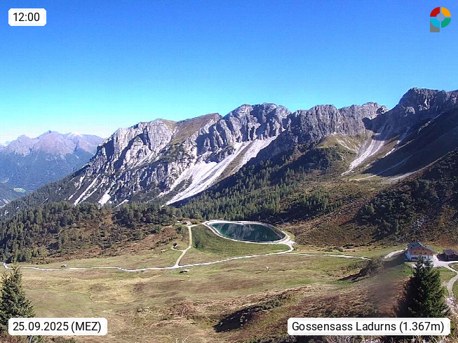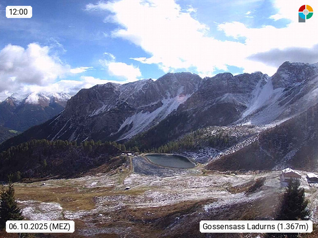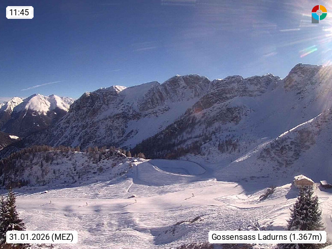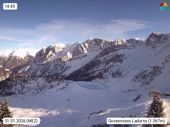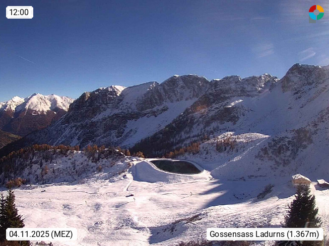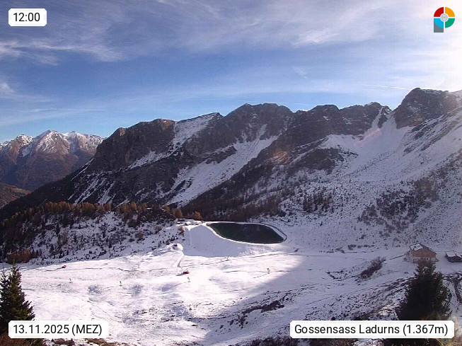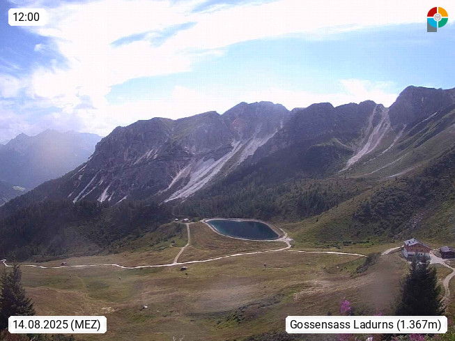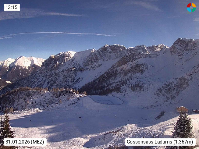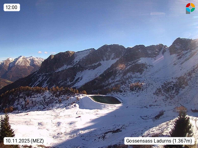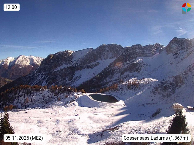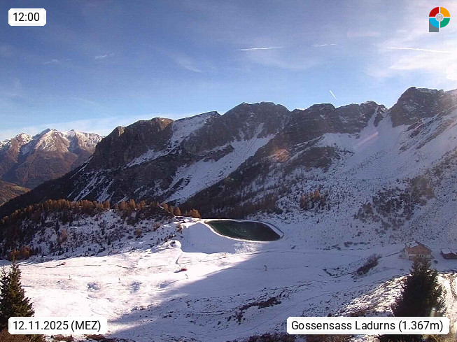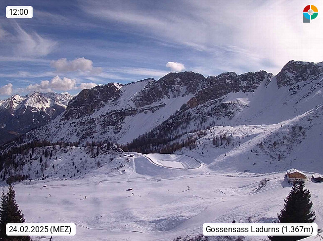 I 39040 Gossensass Ladurns (Colle Isarco) am Brenner (Brennero) 1.240m, Dorf in der Gemeinde Brenner (Brennero) in der Bezirksgemeinschaft Wipptal nördlich von Sterzing (Vipiteno). Blick von der Bergstation im Ski und Wandergebiet Ladurns 2.010m, Richtung Nordost auf das Felsmassiv des Pflerscher Tribulaun 3.097m in den Stubaier Alpen in Tirol, an der Grenze von Südtirol zu Österreich. Präsentiert von https://www.ladurns.it/de.