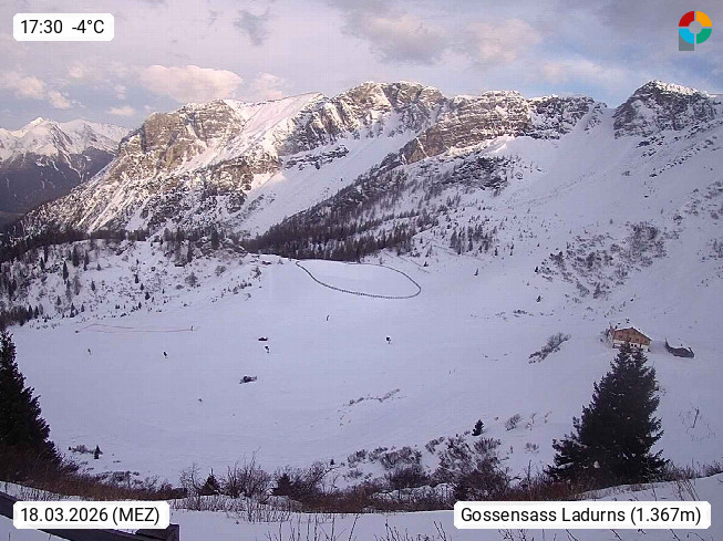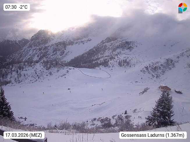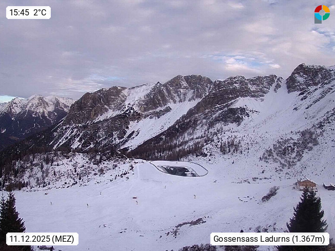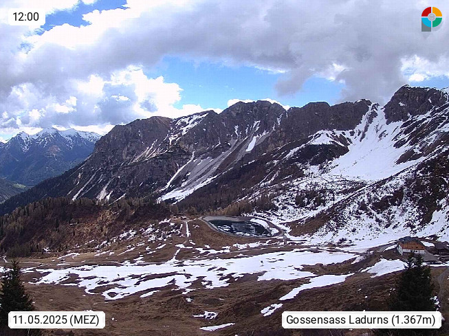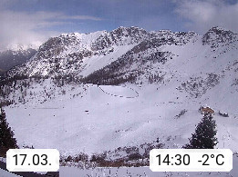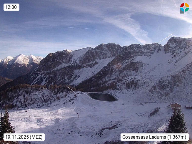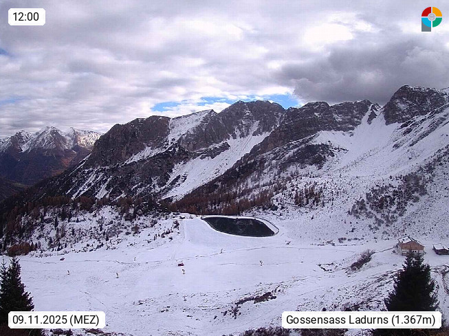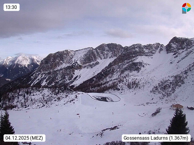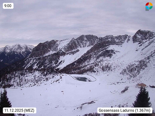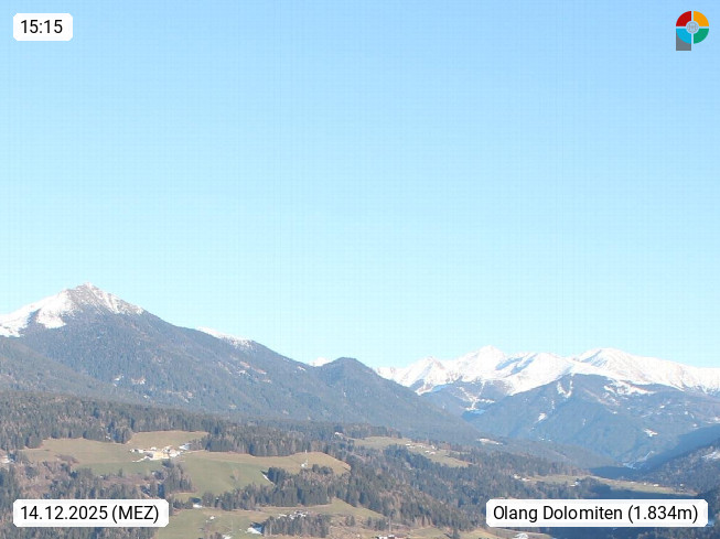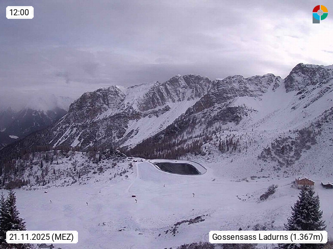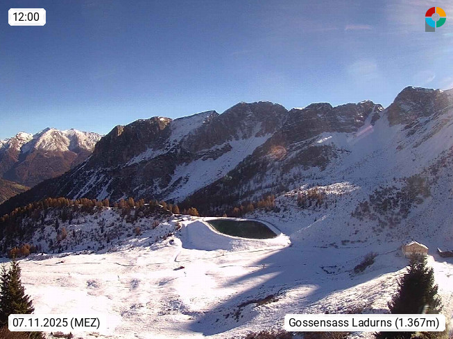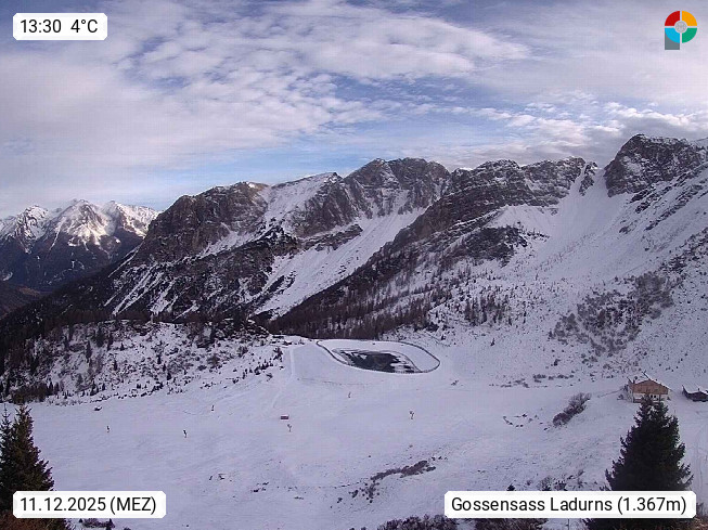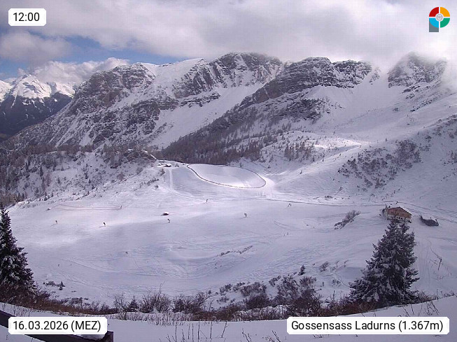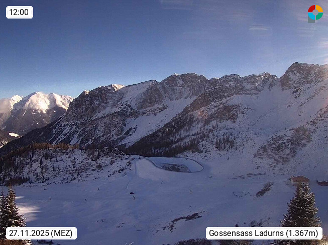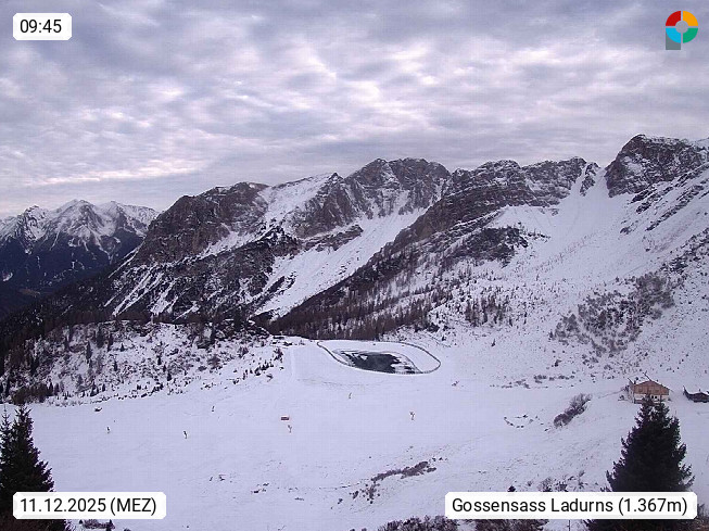 I 39040 Gossensass Ladurns (Colle Isarco) am Brenner (Brennero) 1.240m, Dorf in der Gemeinde Brenner (Brennero) in der Bezirksgemeinschaft Wipptal nördlich von Sterzing (Vipiteno). Blick von der Bergstation im Ski und Wandergebiet Ladurns 2.010m, Richtung Nordost auf das Felsmassiv des Pflerscher Tribulaun 3.097m in den Stubaier Alpen in Tirol, an der Grenze von Südtirol zu Österreich. Präsentiert von https://www.ladurns.it/de.