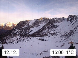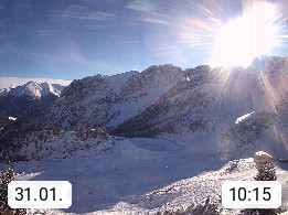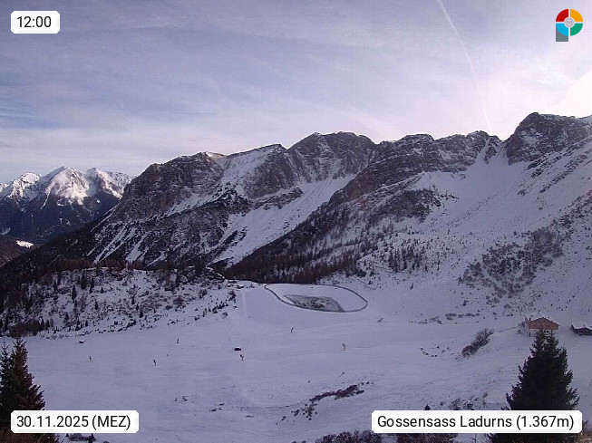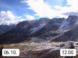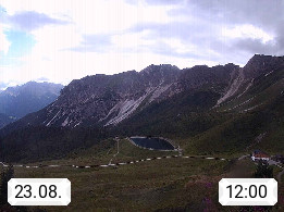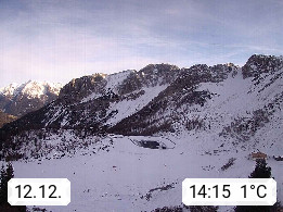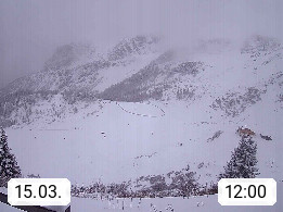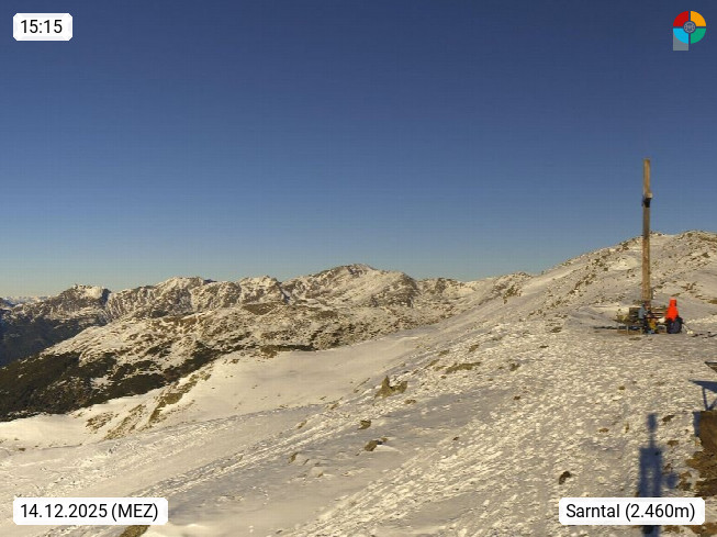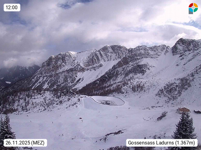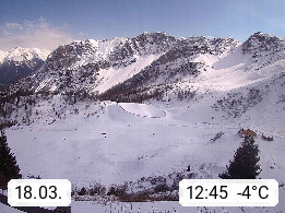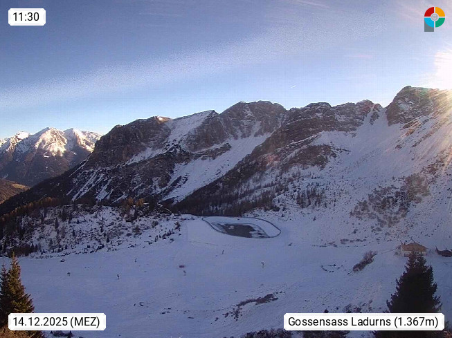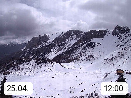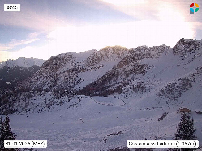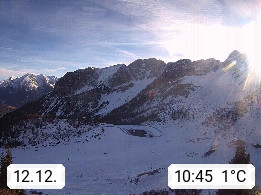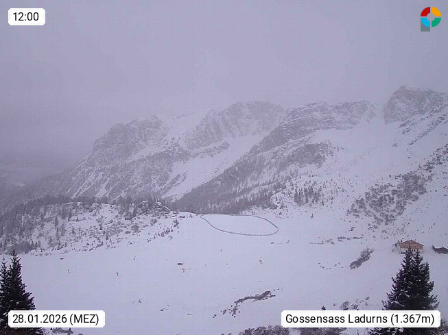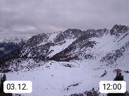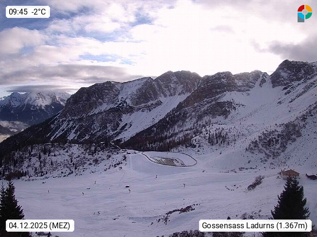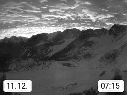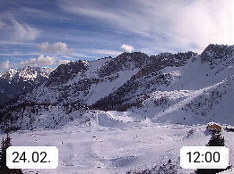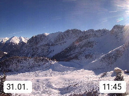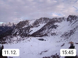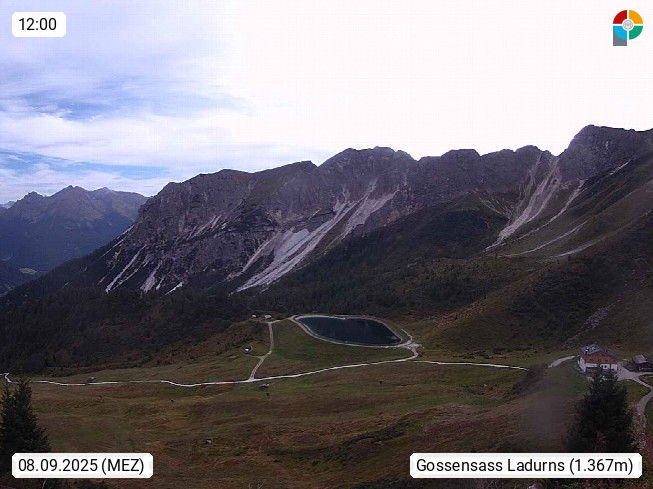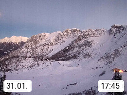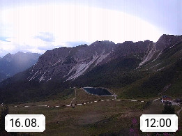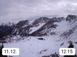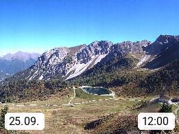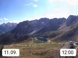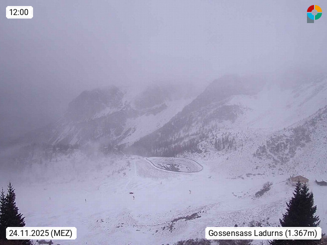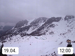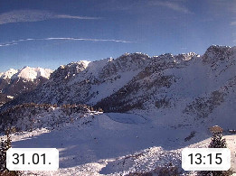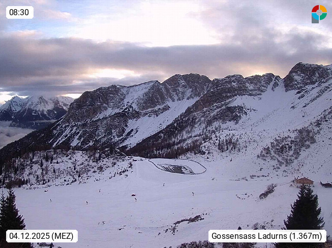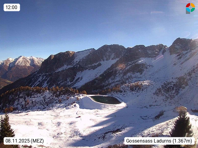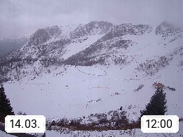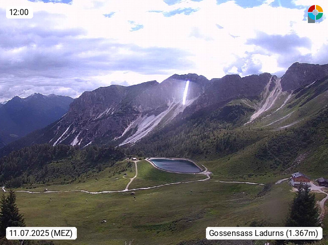 I 39040 Gossensass Ladurns (Colle Isarco) am Brenner (Brennero) 1.240m, Dorf in der Gemeinde Brenner (Brennero) in der Bezirksgemeinschaft Wipptal nördlich von Sterzing (Vipiteno). Blick von der Bergstation im Ski und Wandergebiet Ladurns 2.010m, Richtung Nordost auf das Felsmassiv des Pflerscher Tribulaun 3.097m in den Stubaier Alpen in Tirol, an der Grenze von Südtirol zu Österreich. Präsentiert von https://www.ladurns.it/de.
