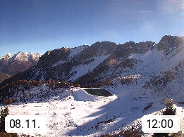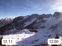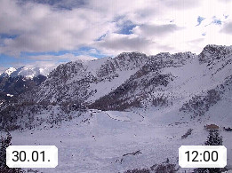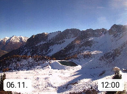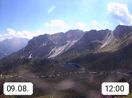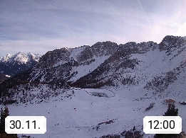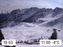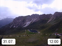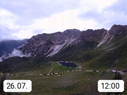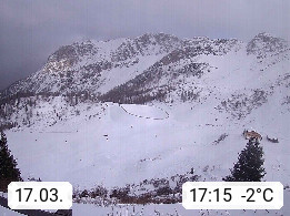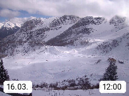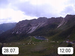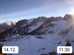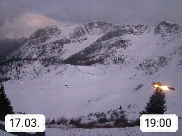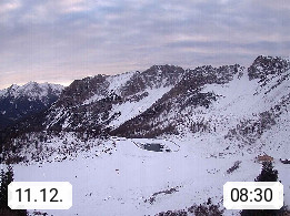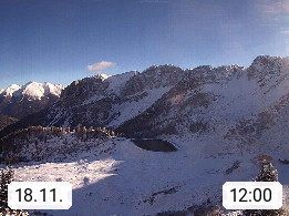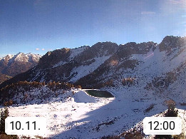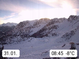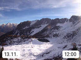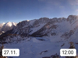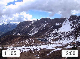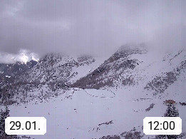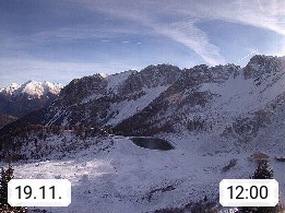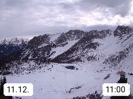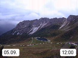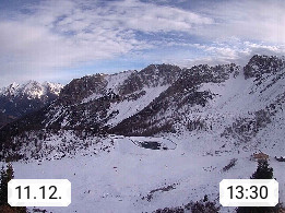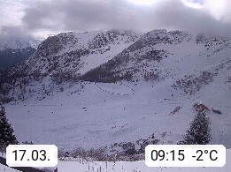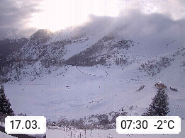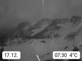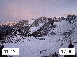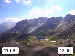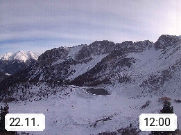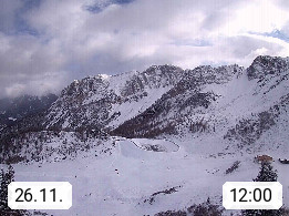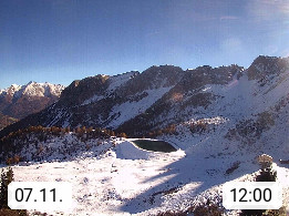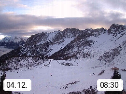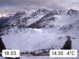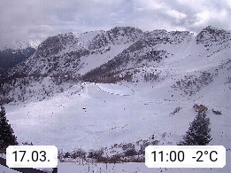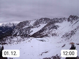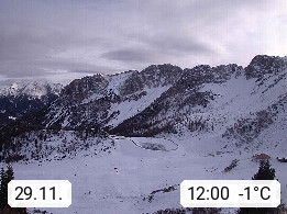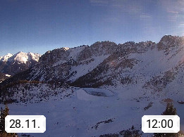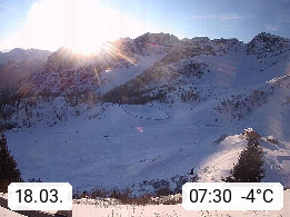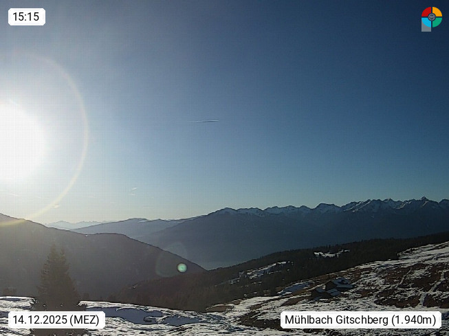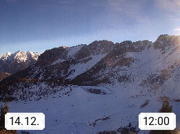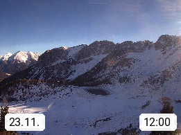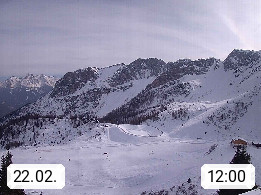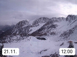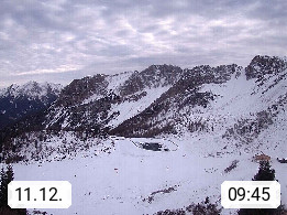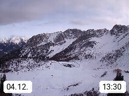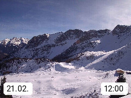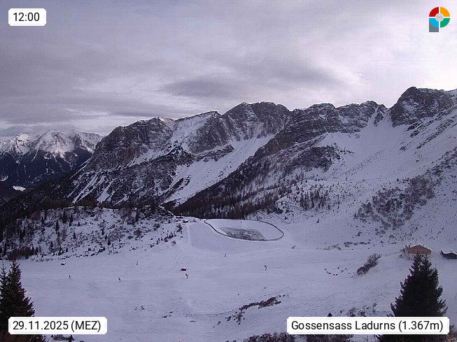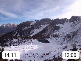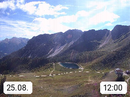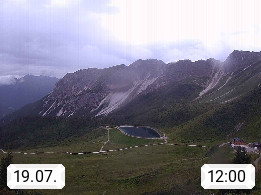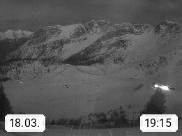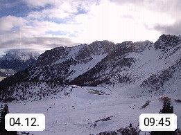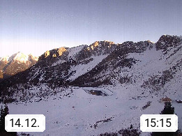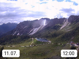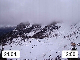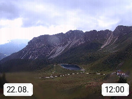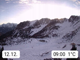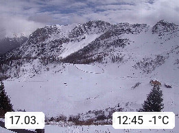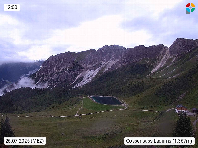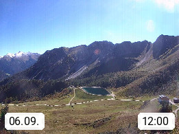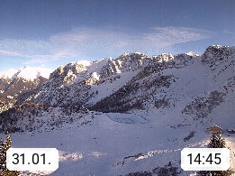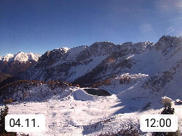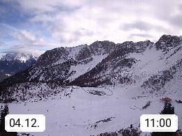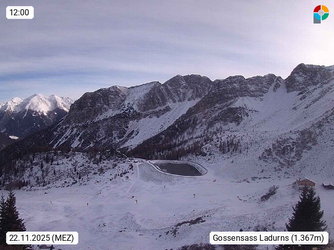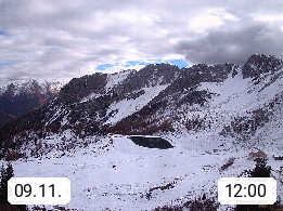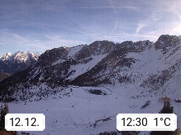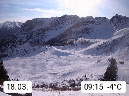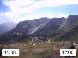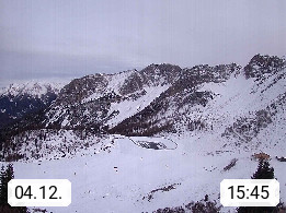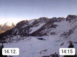 I 39040 Gossensass Ladurns (Colle Isarco) am Brenner (Brennero) 1.240m, Dorf in der Gemeinde Brenner (Brennero) in der Bezirksgemeinschaft Wipptal nördlich von Sterzing (Vipiteno). Blick von der Bergstation im Ski und Wandergebiet Ladurns 2.010m, Richtung Nordost auf das Felsmassiv des Pflerscher Tribulaun 3.097m in den Stubaier Alpen in Tirol, an der Grenze von Südtirol zu Österreich. Präsentiert von https://www.ladurns.it/de.