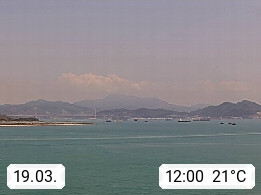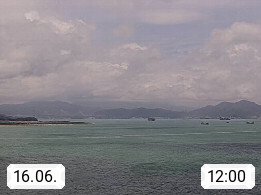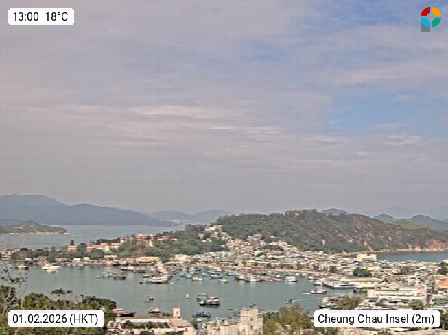 Hongkong 2.755 km² seit 1997 Hong Kong Special Administrative Region of the People Republic of China, eine Sonderverwaltungszone an der Südküste der Volksrepublik China. Hongkong liegt an der Mündung des Perlflusses in das südchinesische Meer und erstreckt sich über eine Halbinsel und rund 260 dazu gehörenden Inseln. Hongkong ist hinsichtlich der Bevölkerungszahl mit rund 7 Mio Einwohnern die drittgrößte Metropolregion der Volksrepublik China. Blick von Peng Chau über die Pennys Bay Richtung Nord Ost, im Hintergrund die Insel Lantau 146 km². grösste Insel Hongkongs gegenüber der Mündung des Perlfluss. Links im Vordergund sieht man Disneyland Hongkong. Präsentiert von https://www.hko.gov.hk/.